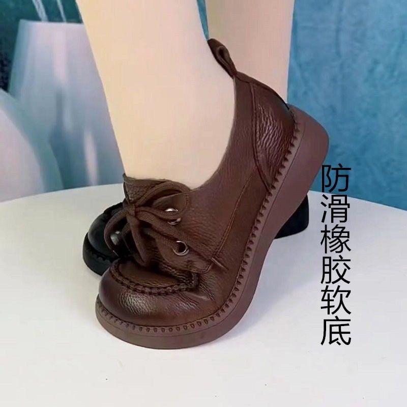 Zapatos de Cuero para Mujer 2025 Nuevos Zapatos para Mujer Suela Suave Superficie Suave Cuero Vacuno Suave Casual Versátil Mocasines de Plataforma