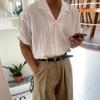 Comercio exterior transfronterizo nueva camisa de manga corta estampada para hombre moda coreana camisa casual de solapa para hombre
