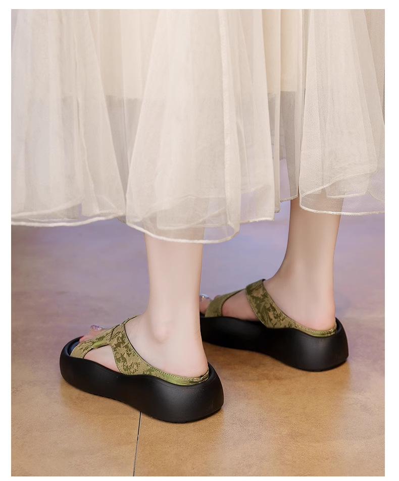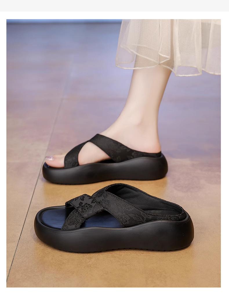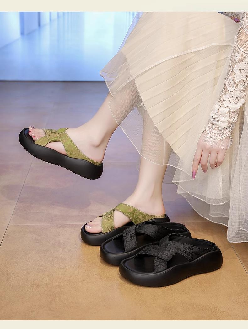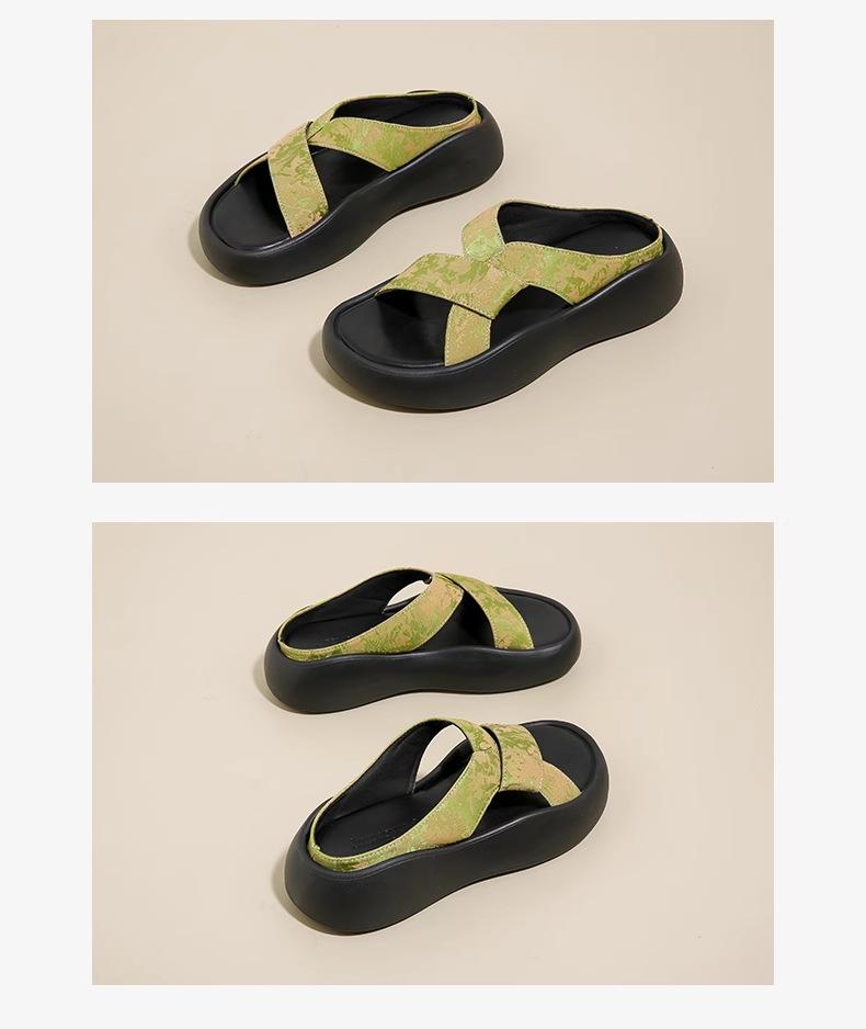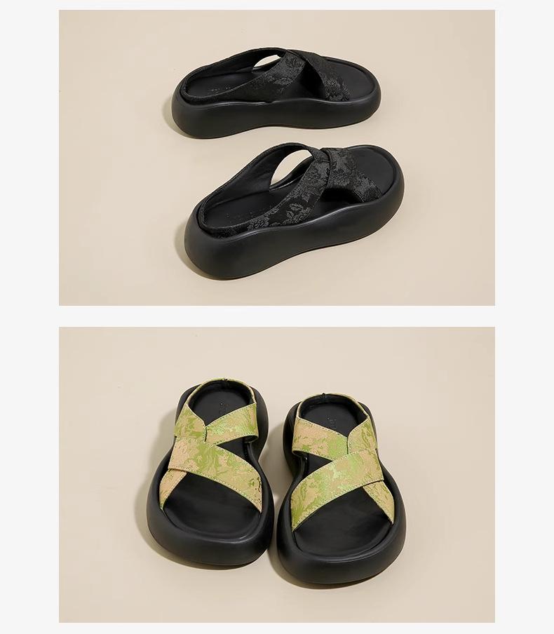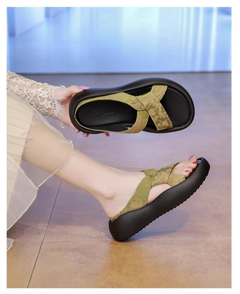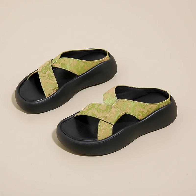 Sandalias y Pantuflas para Mujer Verano para Exterior 2025 Nuevas Sandalias Casuales de Playa de Suela Gruesa para Gente Perezosa Estilo Nacional Pantuflas para Mujeres Embarazadas