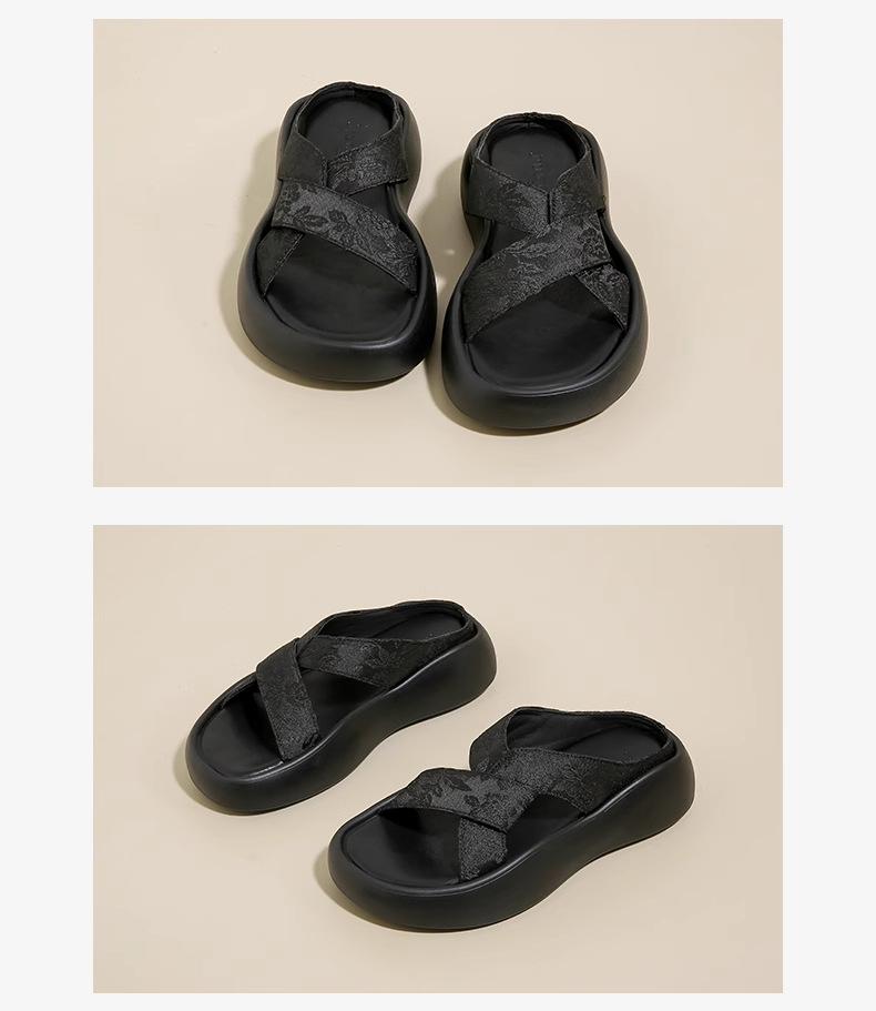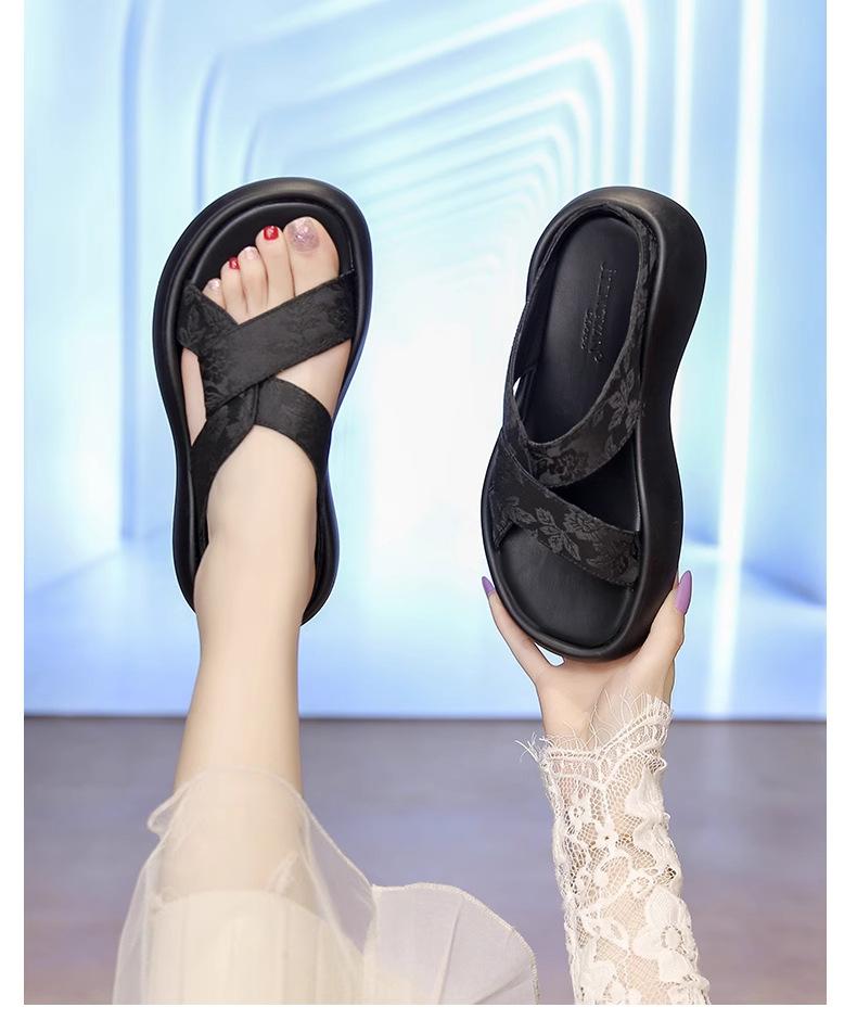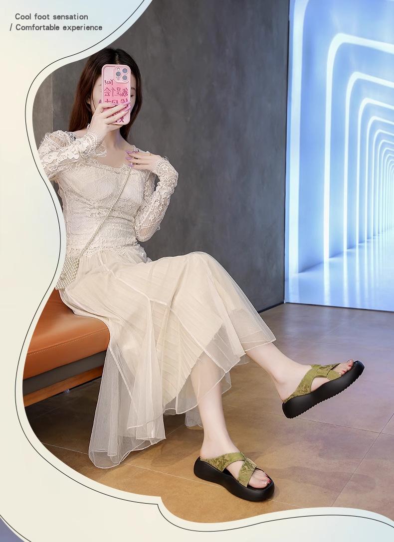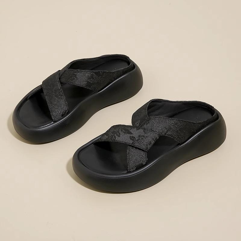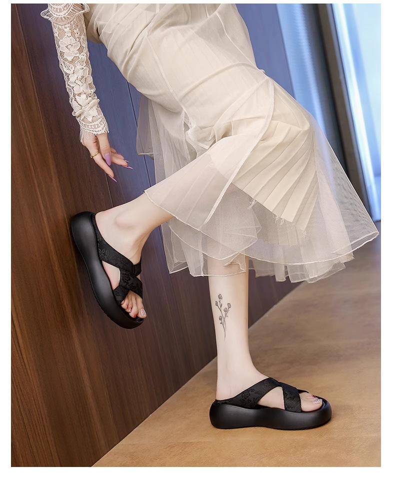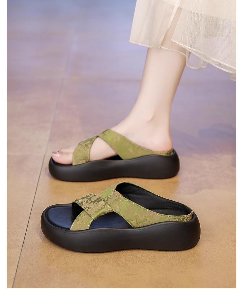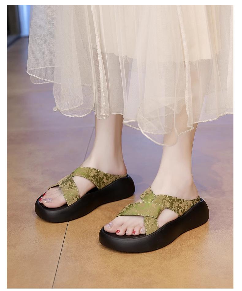 Sandalias y Pantuflas para Mujer Verano para Exterior 2025 Nuevas Sandalias Casuales de Playa de Suela Gruesa para Gente Perezosa Estilo Nacional Pantuflas para Mujeres Embarazadas