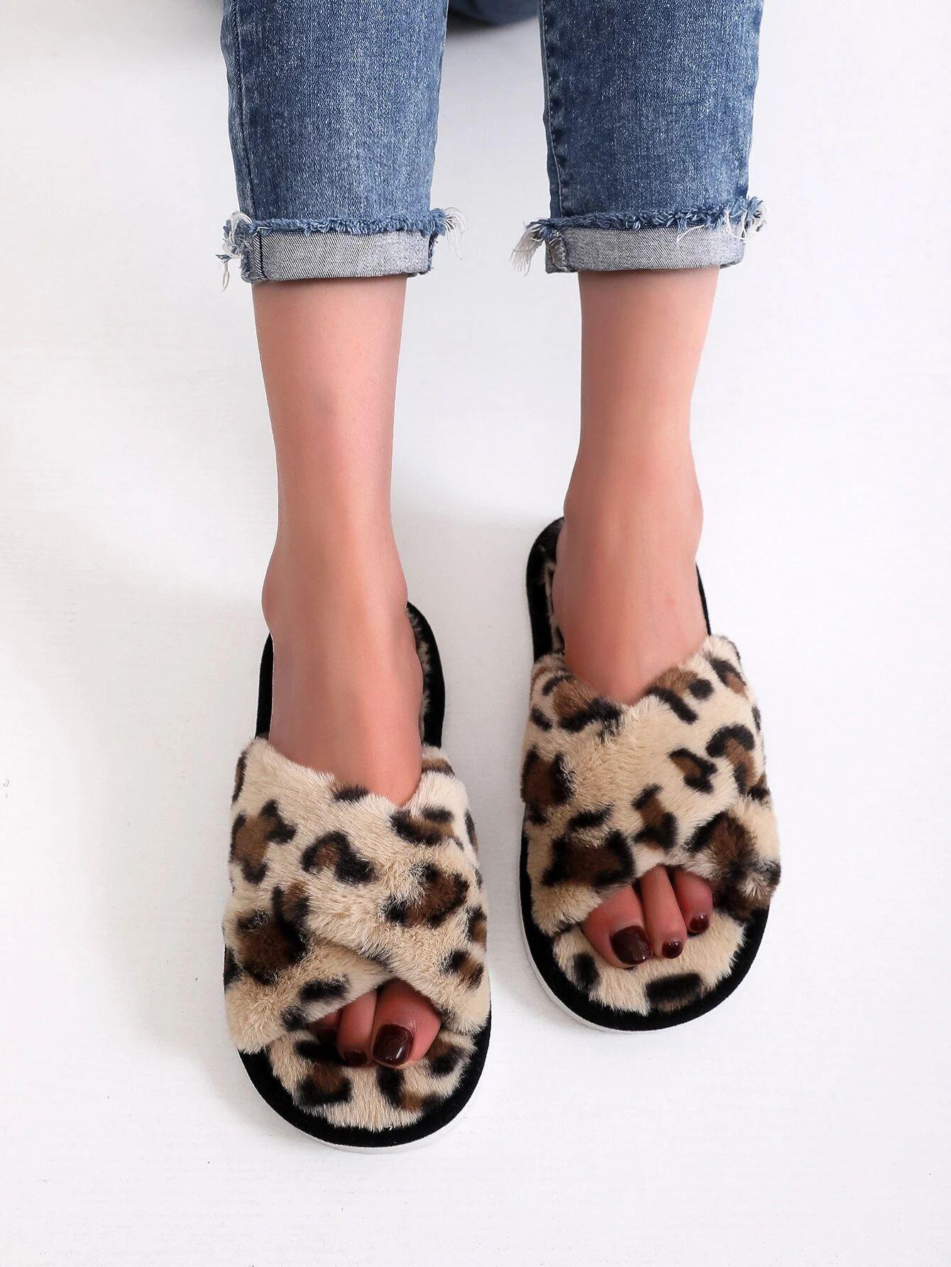 Pantuflas de Felpa Cruzadas Personalizadas de Otoño e Invierno Cálidas Pantuflas de Algodón Pantuflas de Felpa Abiertas de Punta Abierta Fabricante Venta al Mayoreo