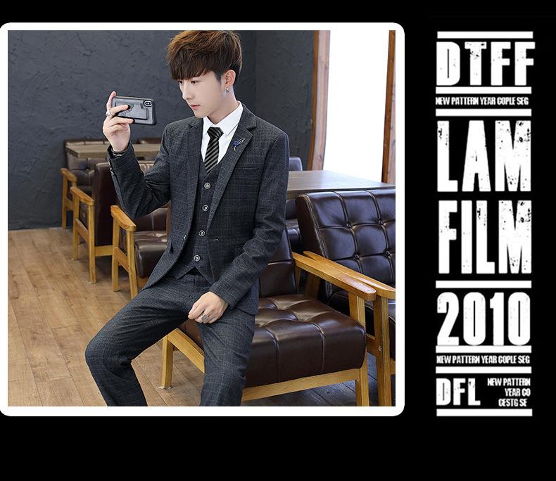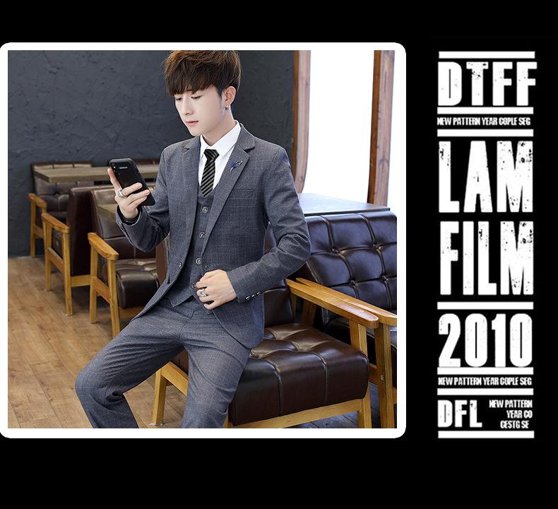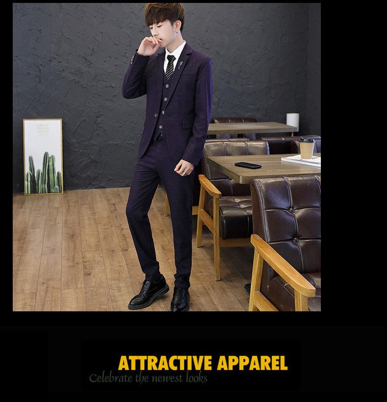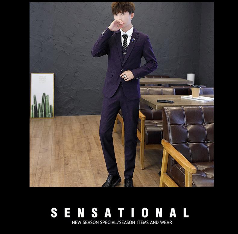 Traje Daifa Cuatro Estaciones Transfronterizo para Hombre Novio Vestido de Boda Estilo Coreano Ajustado de Tres Piezas Traje Juvenil
