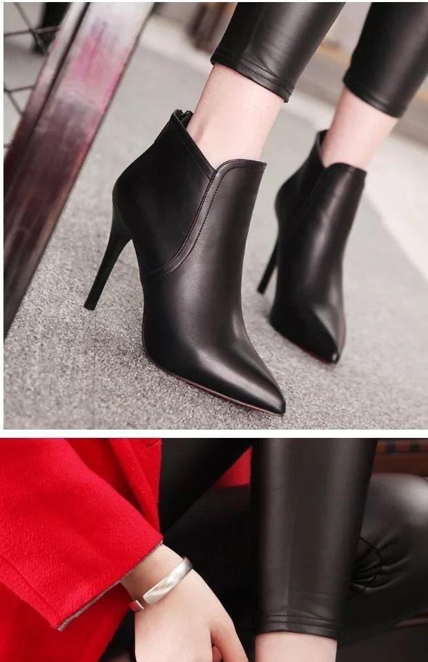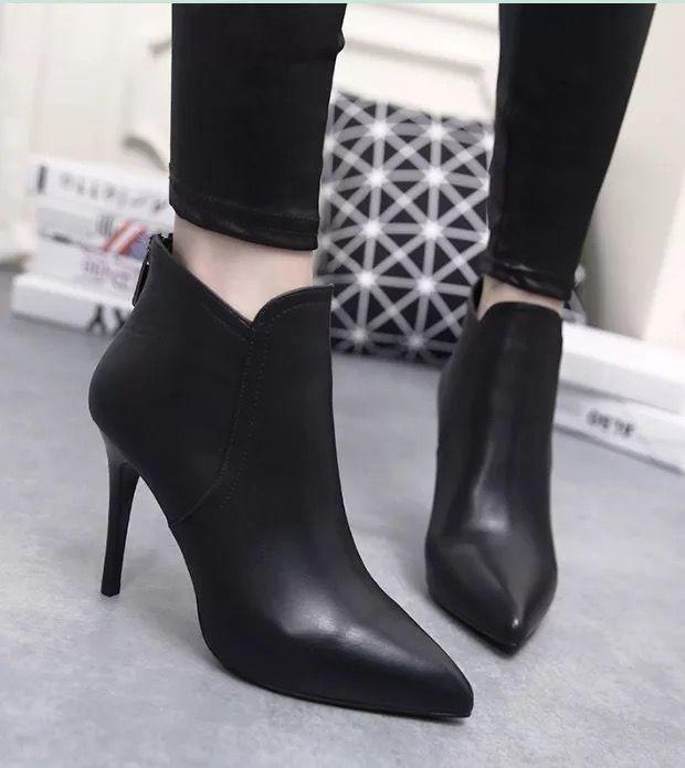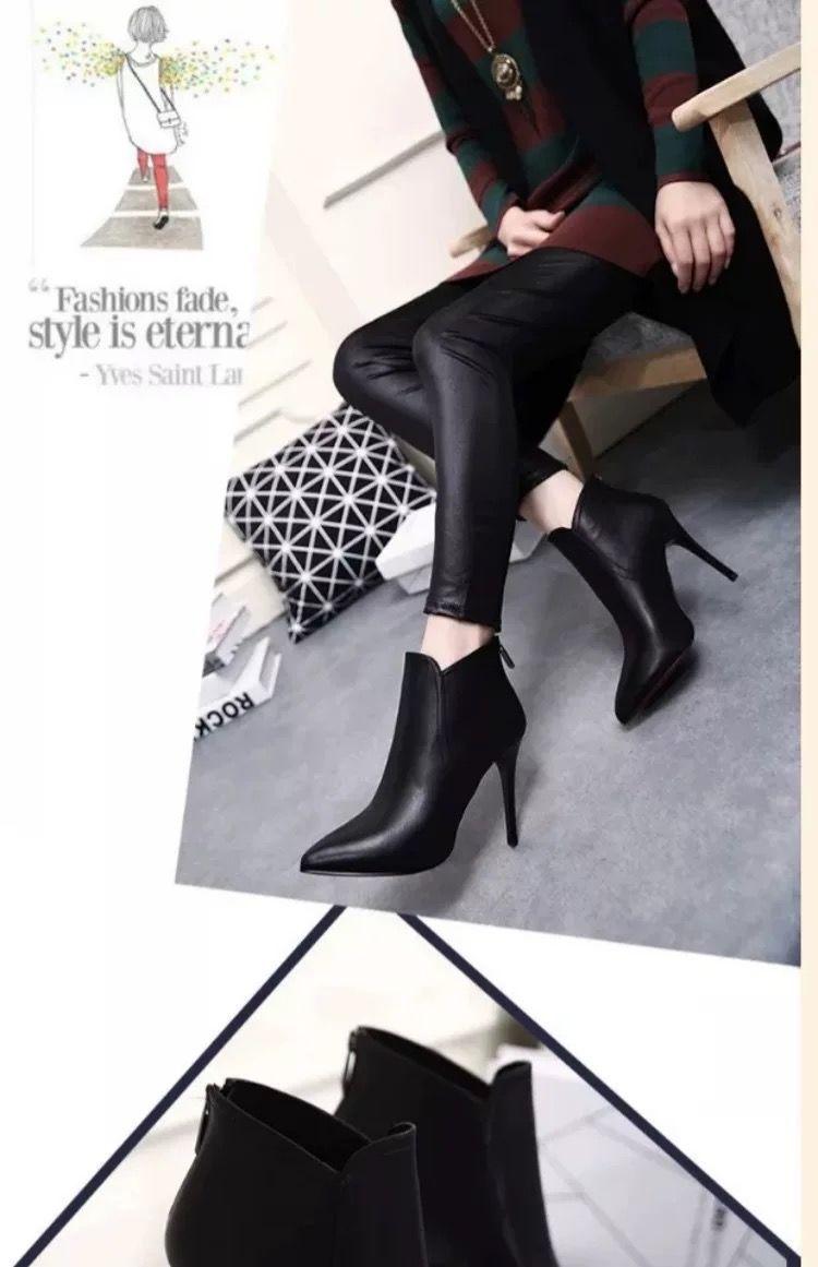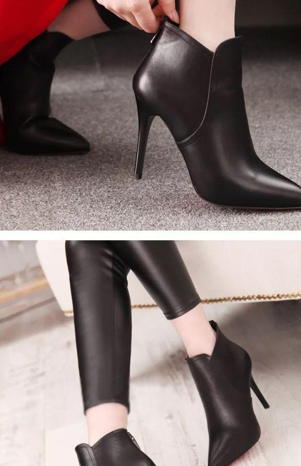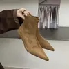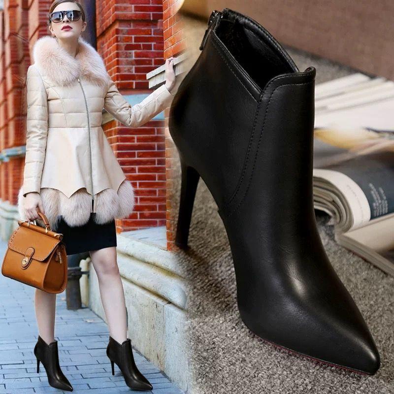 2025 Nuevas Botas de Tacón de Aguja para Mujer Otoño e Invierno Punta Afilada Botines Cremallera Trasera Cómodas Forradas de Felpa Botas Versátiles