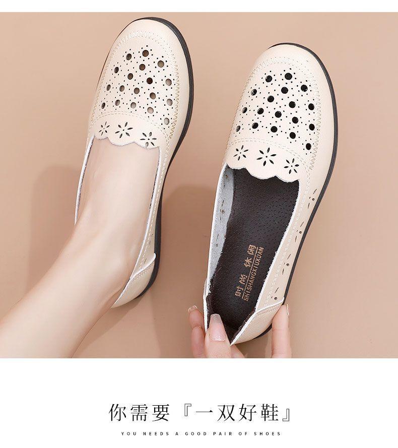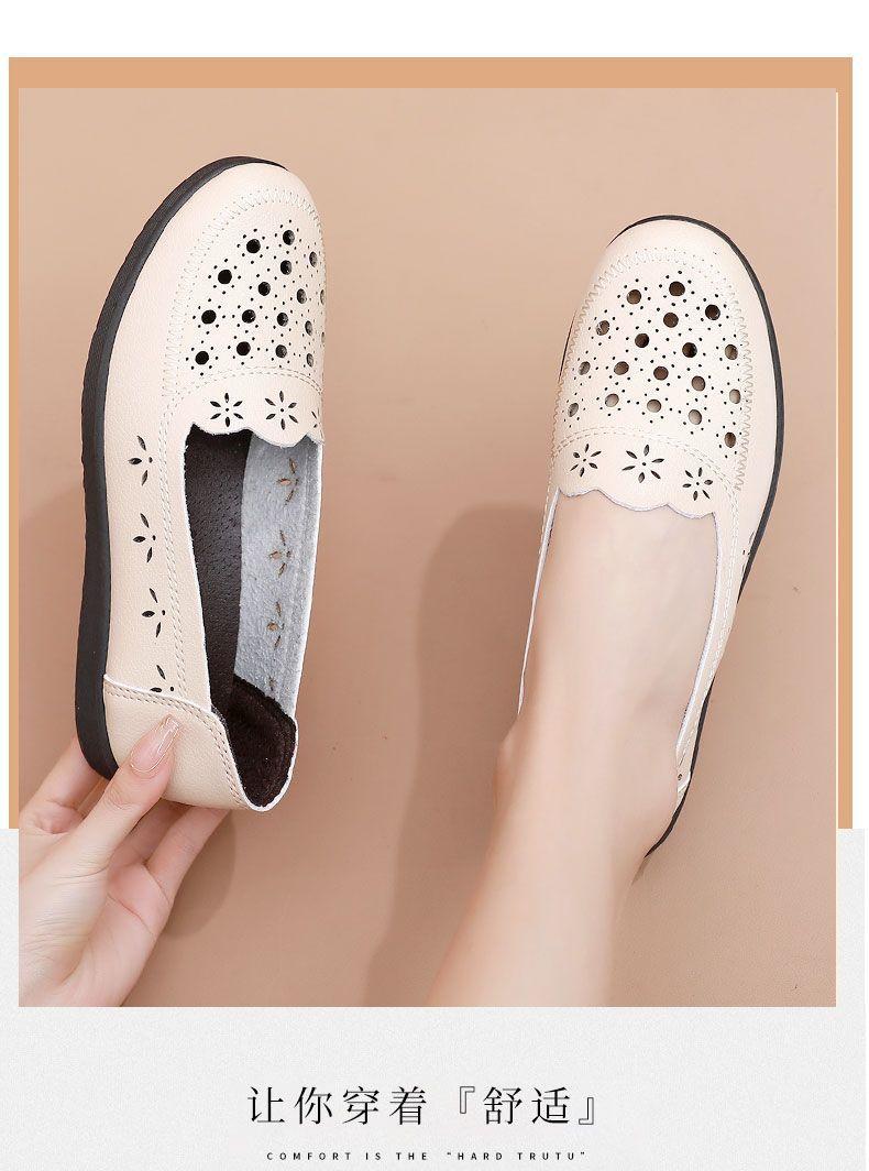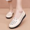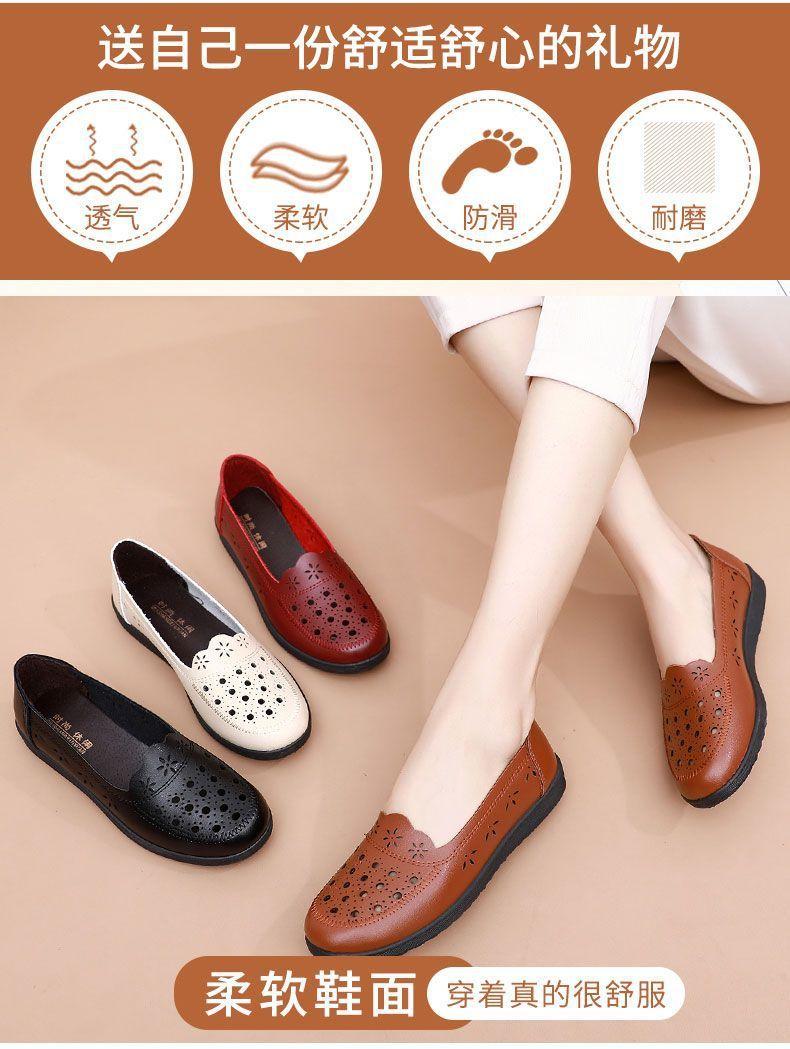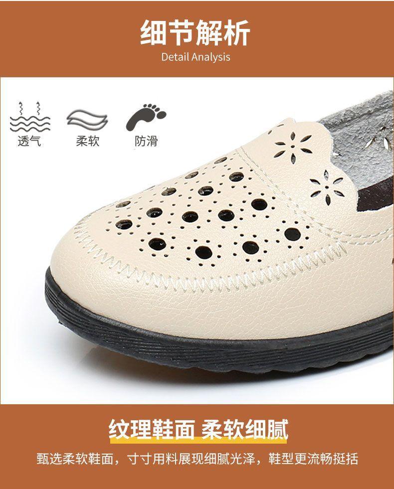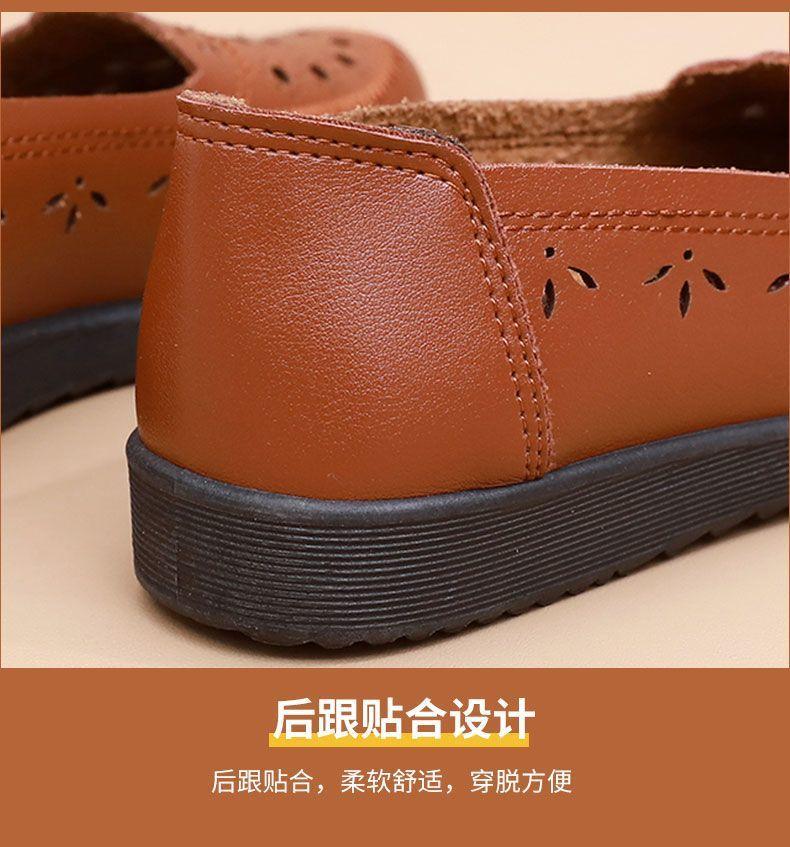 Sandalias de Verano de Cuero Genuino para Madre Suela Blanda Suela Plana Cómodas Zapatos de Cuero con Agujeros Antideslizantes para Mujeres de Mediana Edad y Mayores
