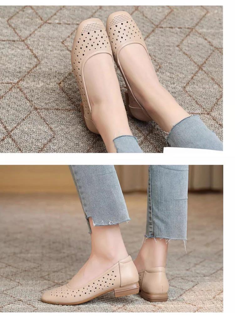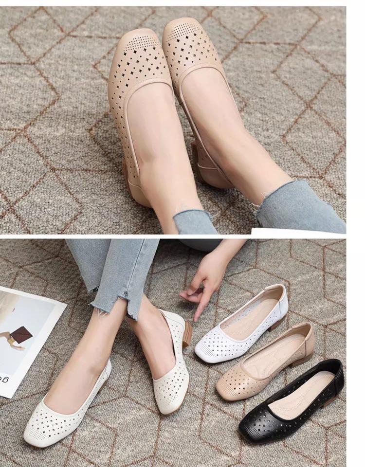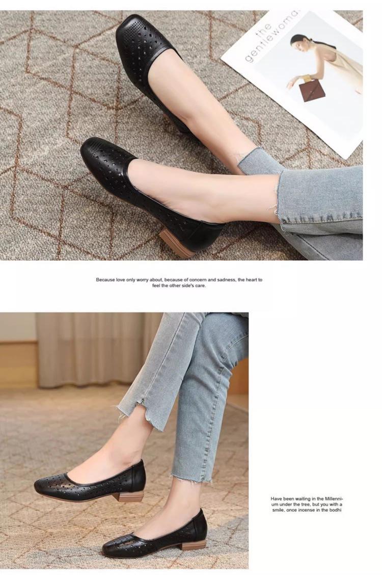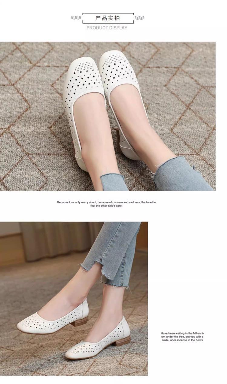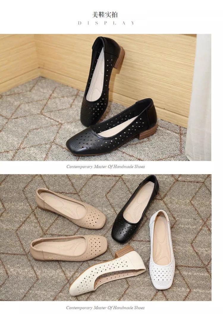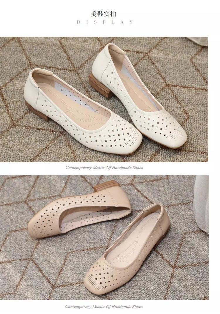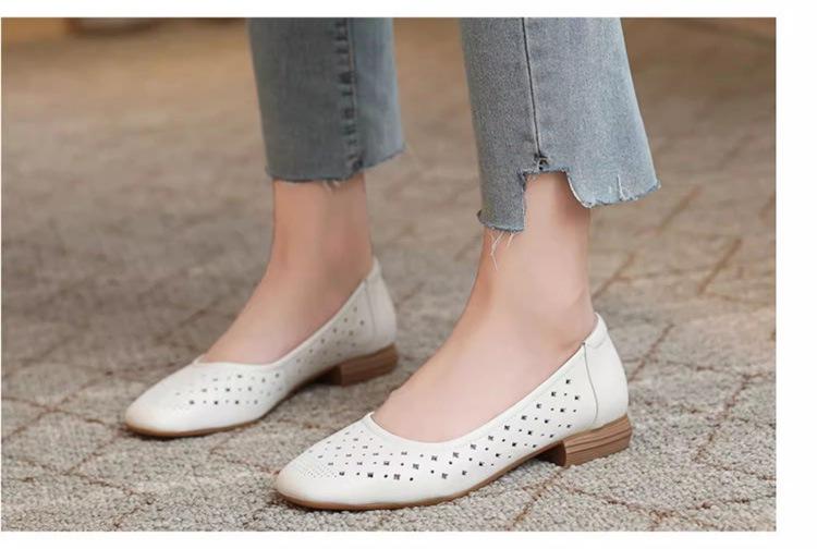 Flats de Piel Suave Huecos Zapatos de Mujer Tendón Suela Suave Zapatos de Agujeros Transpirables Flats Casuales Zapatos Blancos de Trabajo de Enfermera para Mujer
