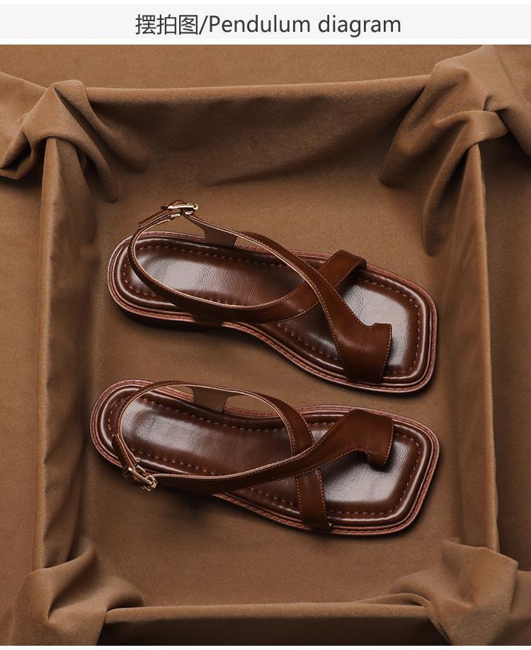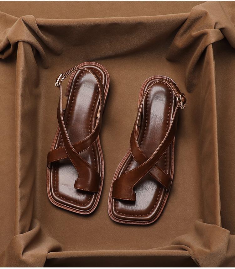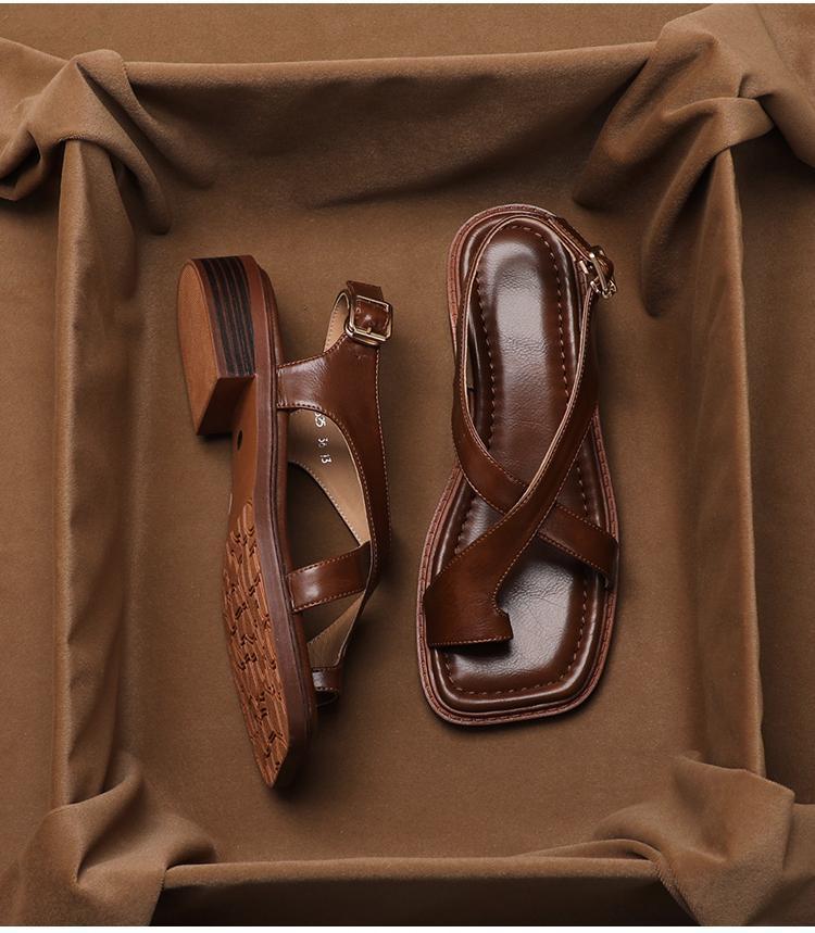 Sandalias Romanas Francesas Retro de Verano 2024 para Mujer, Marrones Modernas Talla Grande Nuevas de Verano Tacones Bajos