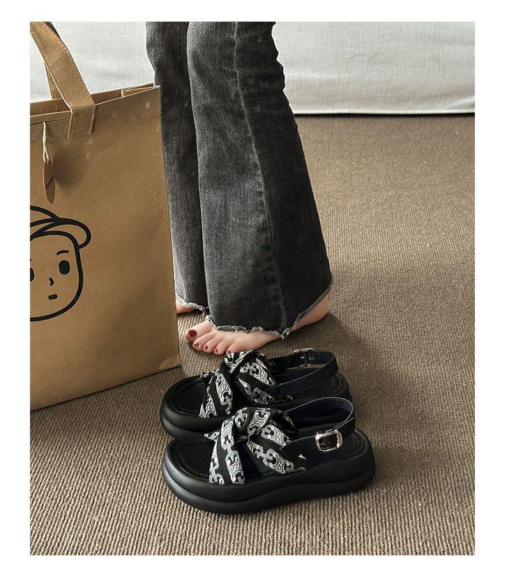 Sandalias de Plataforma Alta para Mujer 2025 Nuevo Verano Punta Abierta Pequeñas Fragantes Romanas para Exterior Sandalias de Playa para Mujer