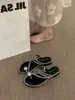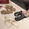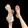 Outfit de Verano 2024 Nuevas Pantuflas de Tacón Bajo para Mujer Combinan con Todo Punta Pellizco Huevo de Paloma Pedrería Tacón Grueso Sandalias Romanas