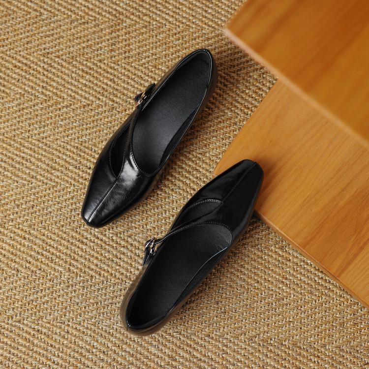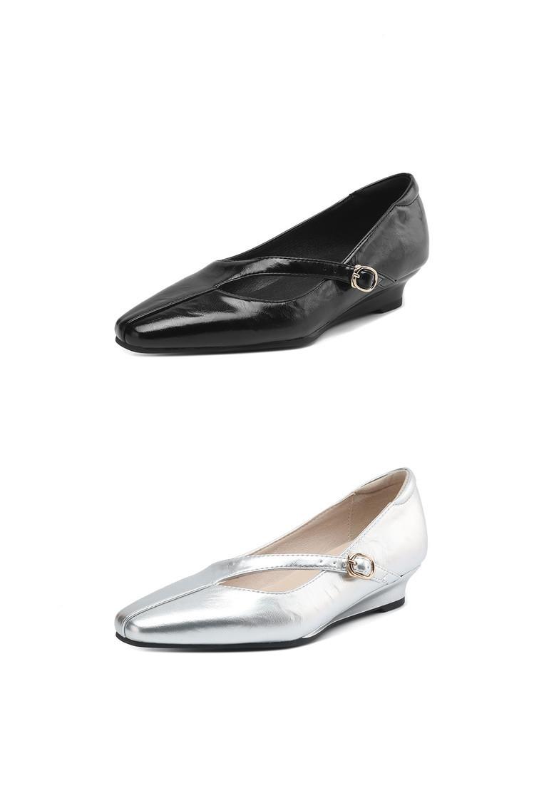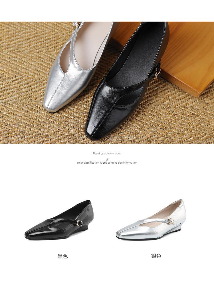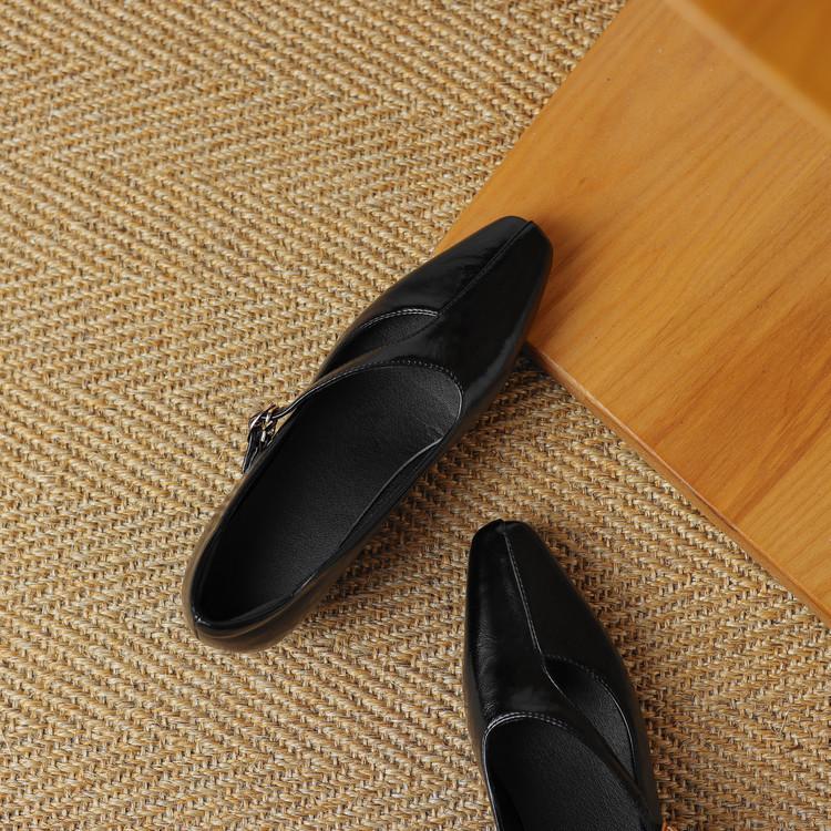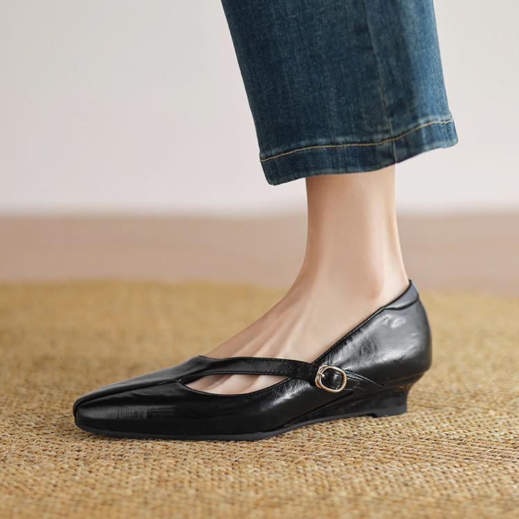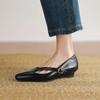 Zapatos de Moda para Mujer Nuevos Tacón Bajo Talla Grande Suela de Goma Suave Cómodos Cuña Zapatos Pequeños de Cuero Negro Casual Zapatos de Mujer