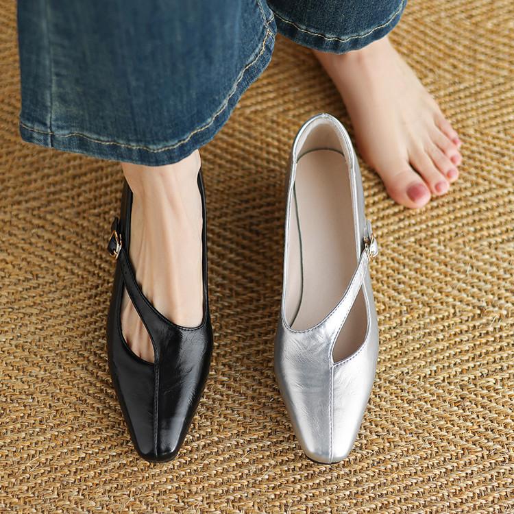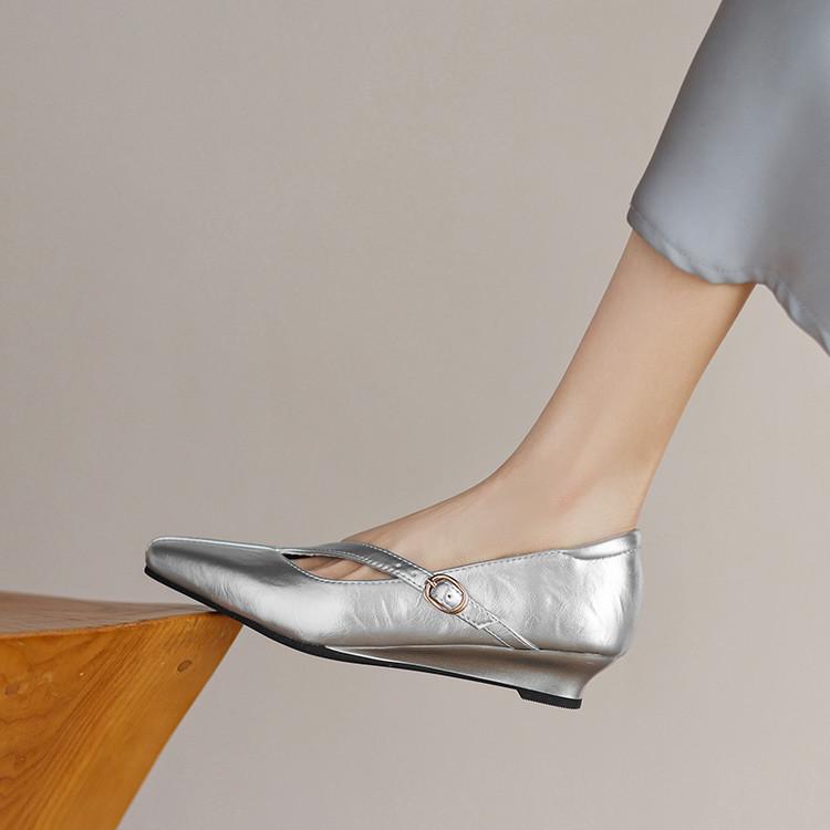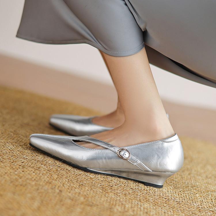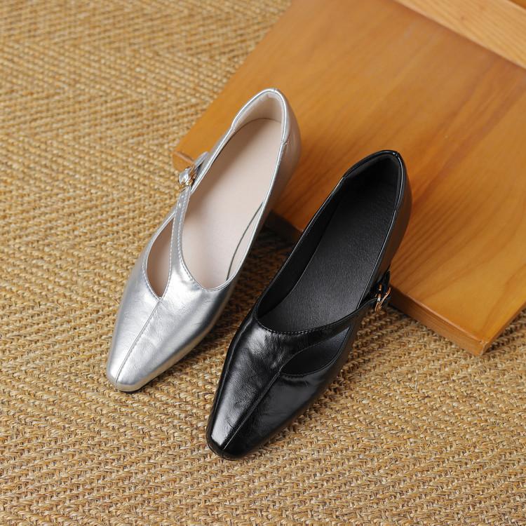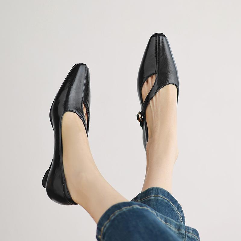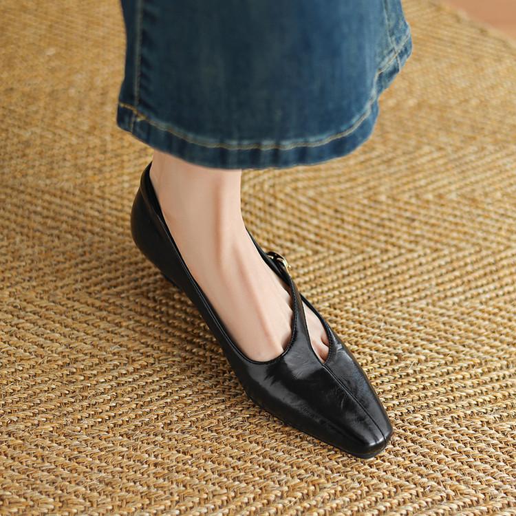 Zapatos de Moda para Mujer Nuevos Tacón Bajo Talla Grande Suela de Goma Suave Cómodos Cuña Zapatos Pequeños de Cuero Negro Casual Zapatos de Mujer