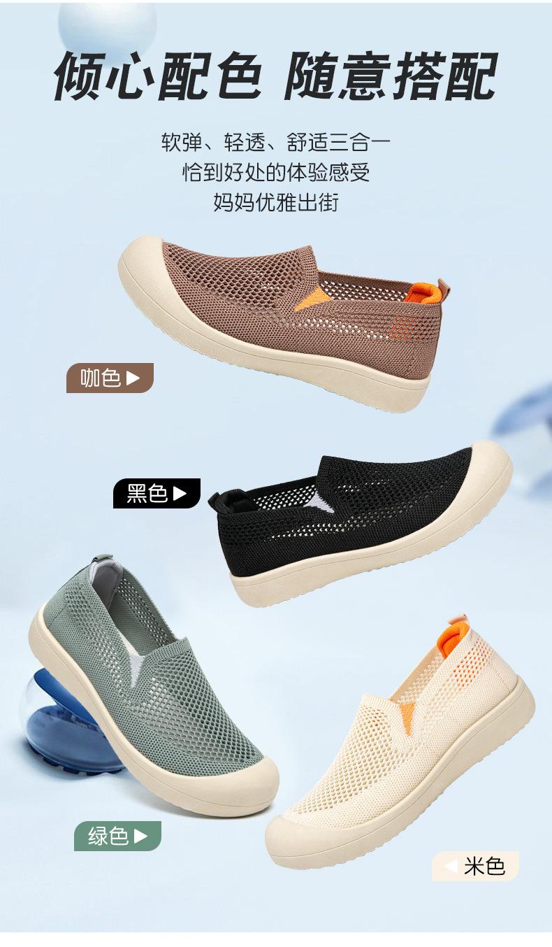 Verano Nuevo Zapatos de Tela de Pekín Antiguo Zapatos Individuales para Mujer Malla Hueca Transpirable Zapatos Casuales Suela Suave Antideslizante Zapatos de Malla para Mediana Edad y Ancianos