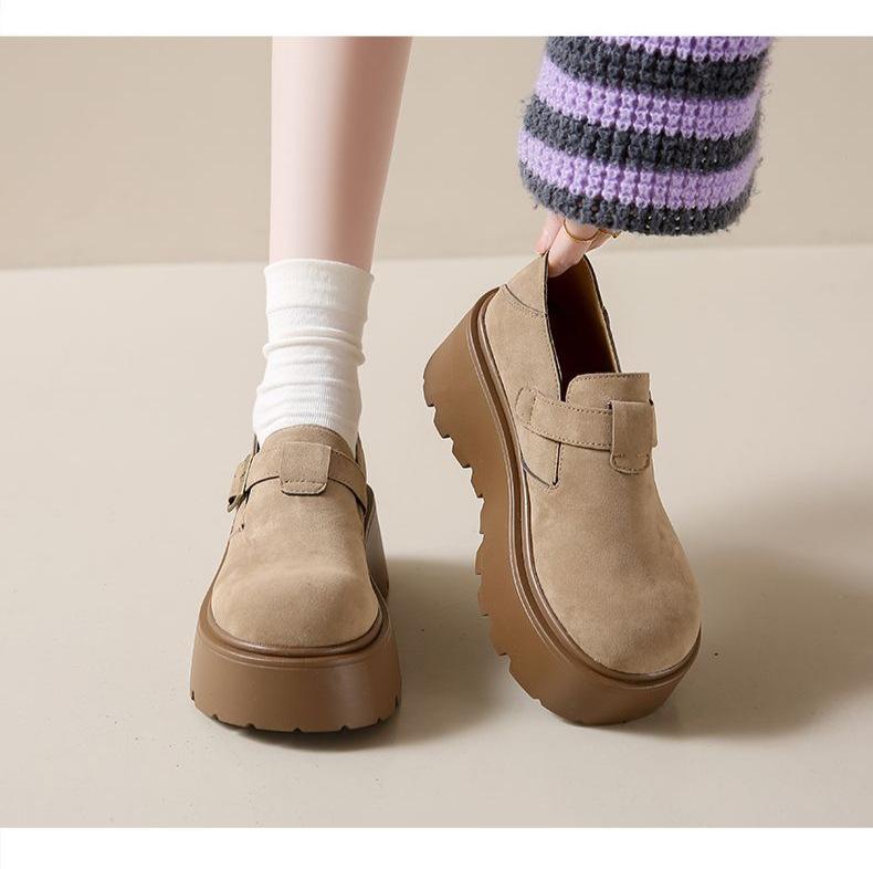 Zapatos Birkenstock de Suela Gruesa para Aumentar la Altura para Mujer 2025 Primavera Nuevo Retro Mocasines Slip-On Dos Usos Zapatos Birkenstock Todo Incluido