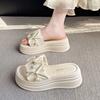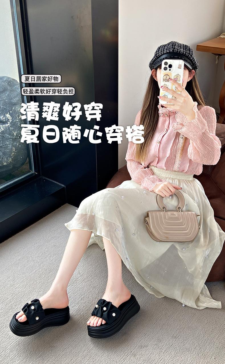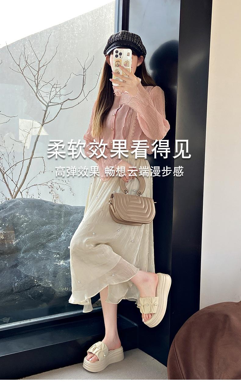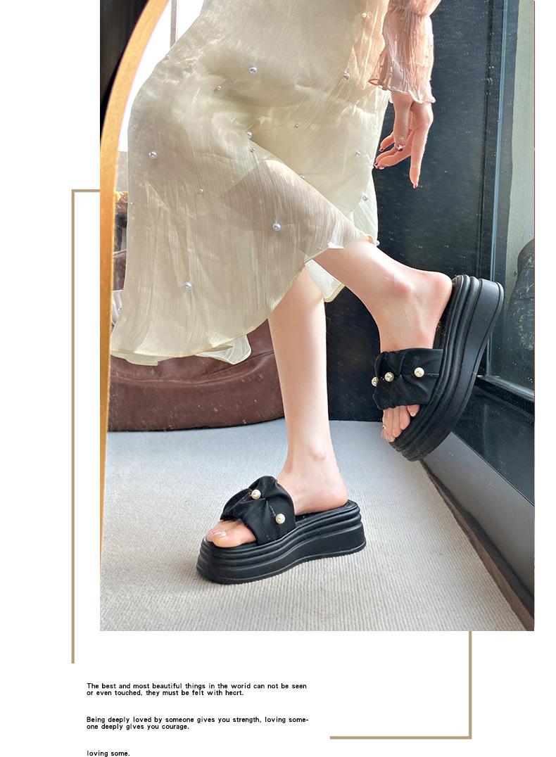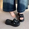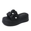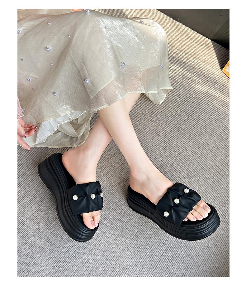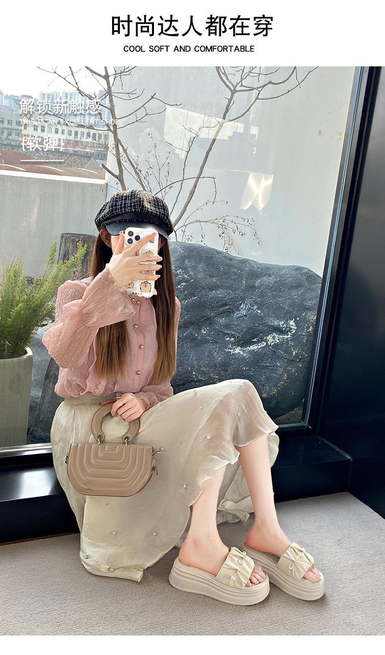 Sandalias de Talla Grande Transfronterizas para Mujer 2025 Verano Nuevo Punta Cuadrada Tacón Bajo Perla Plisada Una Línea Zapatillas Planas