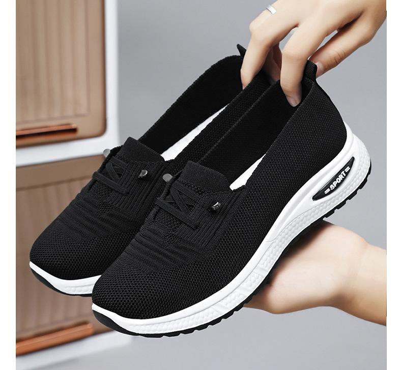 Zapatos para Mujer Transfronterizos Zapatos de Mujer Temu Talla Grande Zapatos Casuales Tejido de Mosca Transpirables Flats Zapatos de Madre Slip-On Zapatos de Tela Perezosos