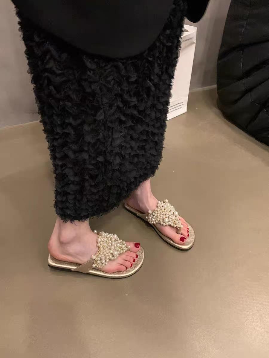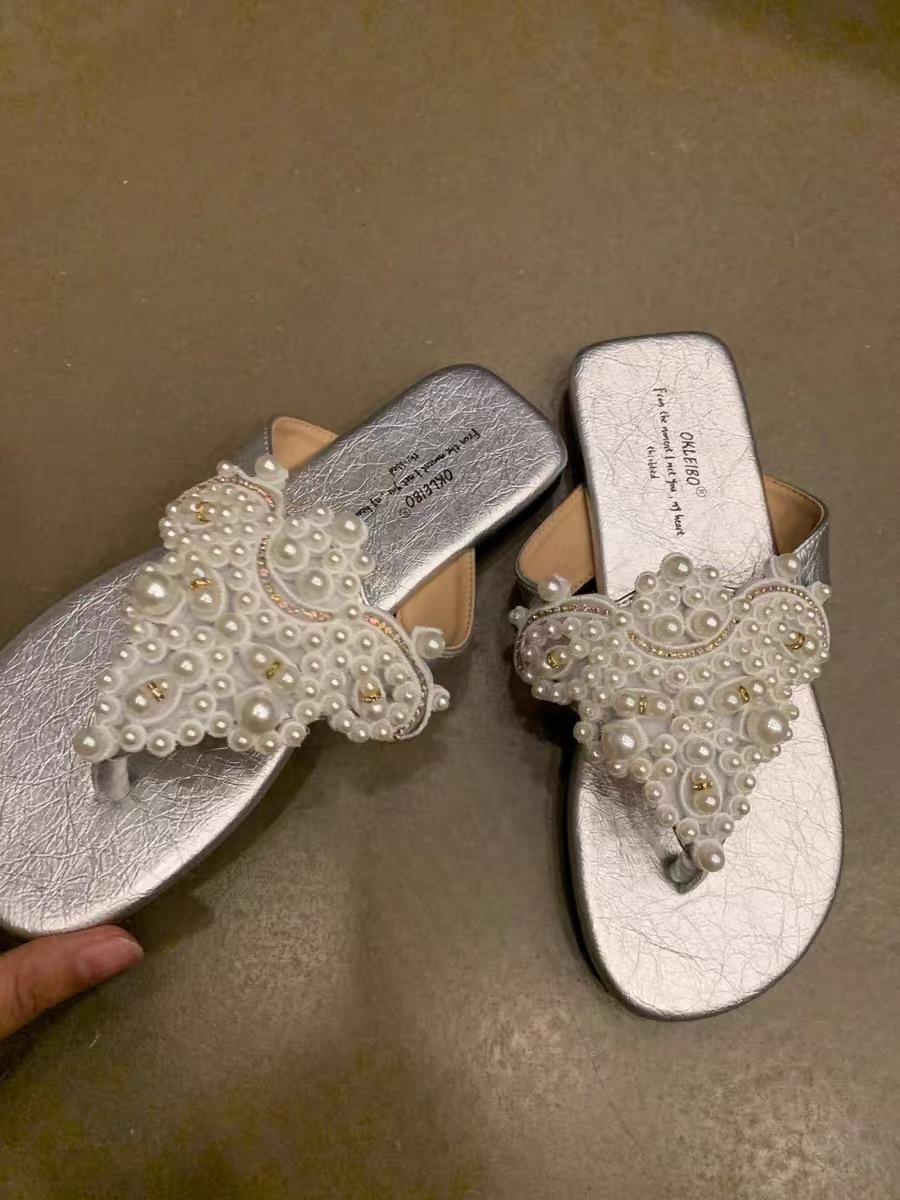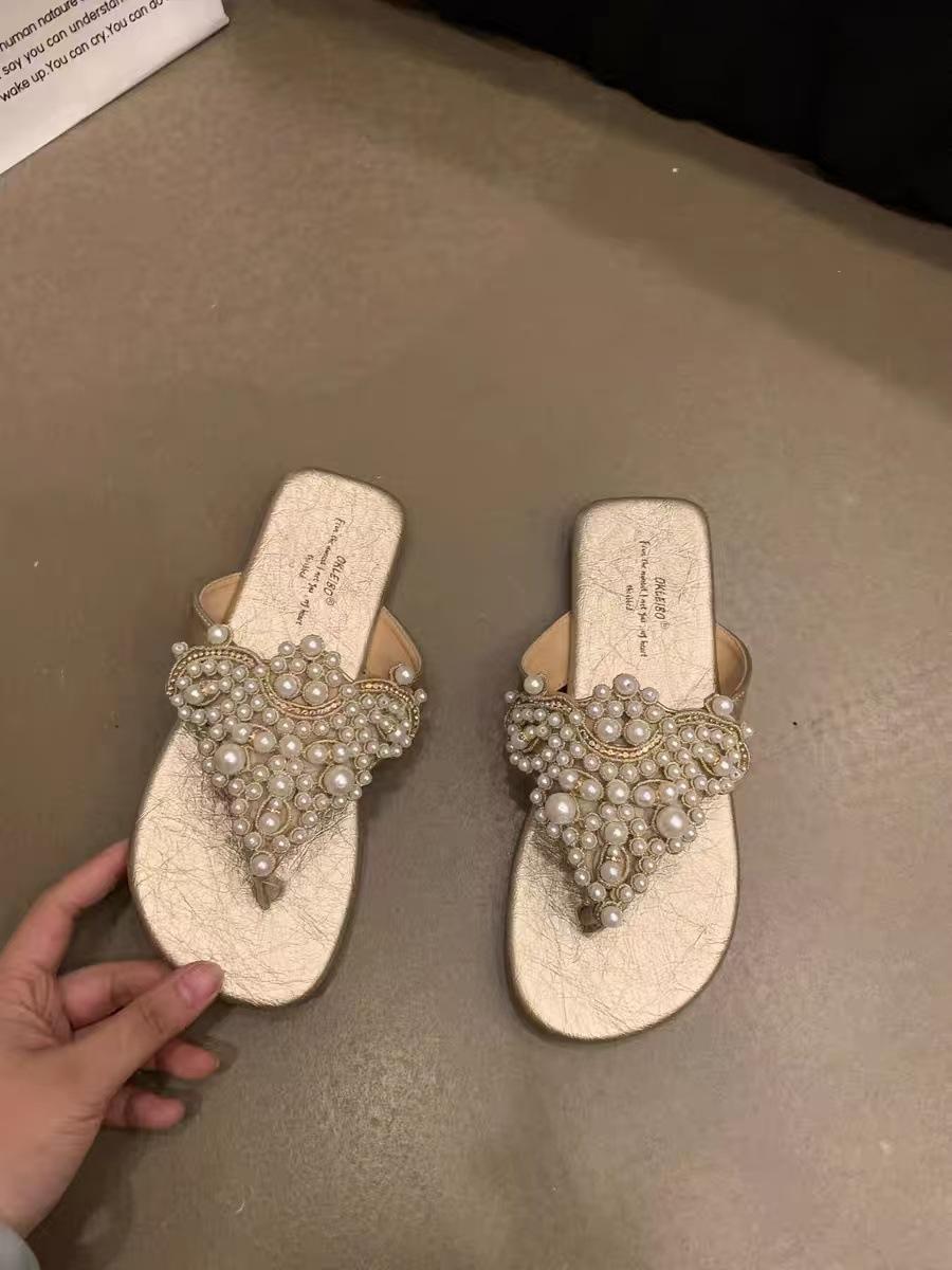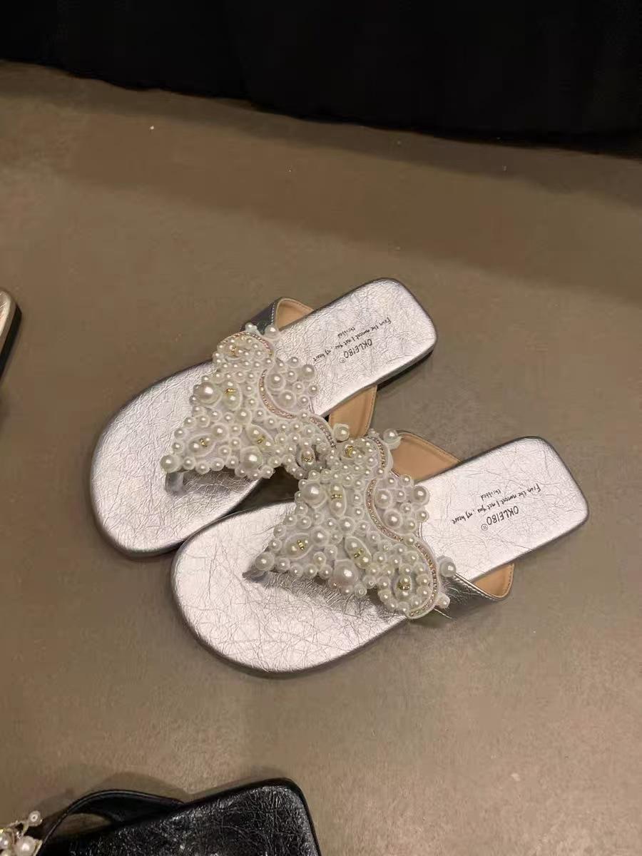 Sandalias Chanclas Estilo Hada Perla Nuevo Verano Retro Francés Bohemio Romanas Zapatos de Mujer