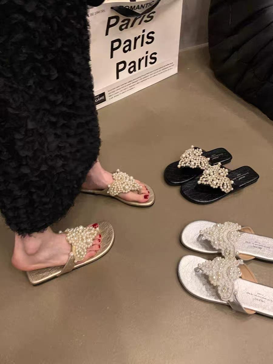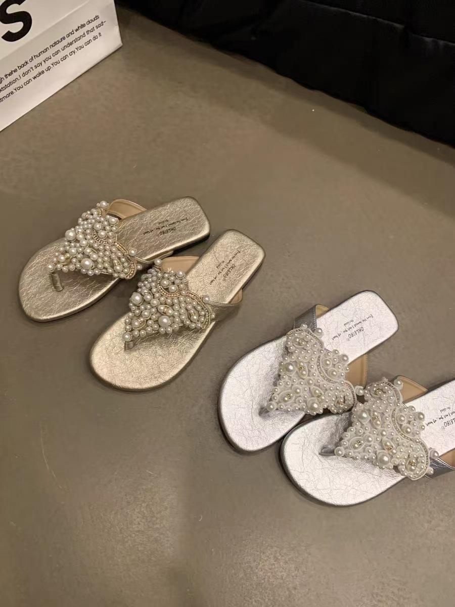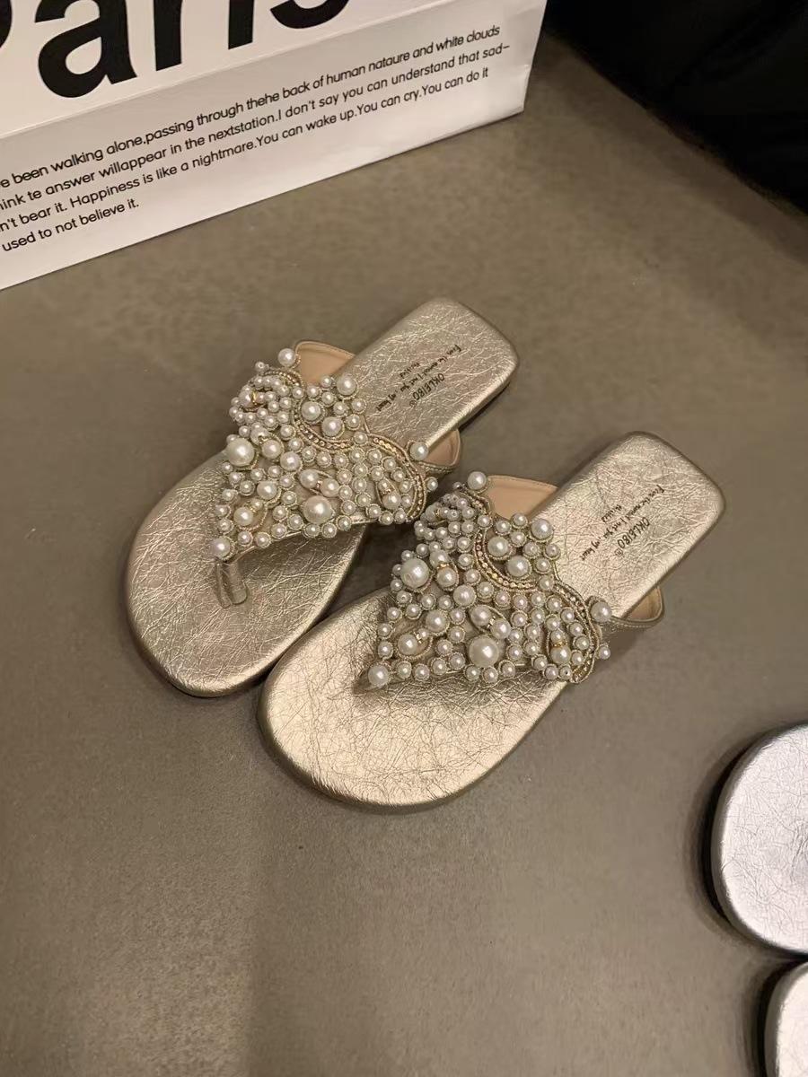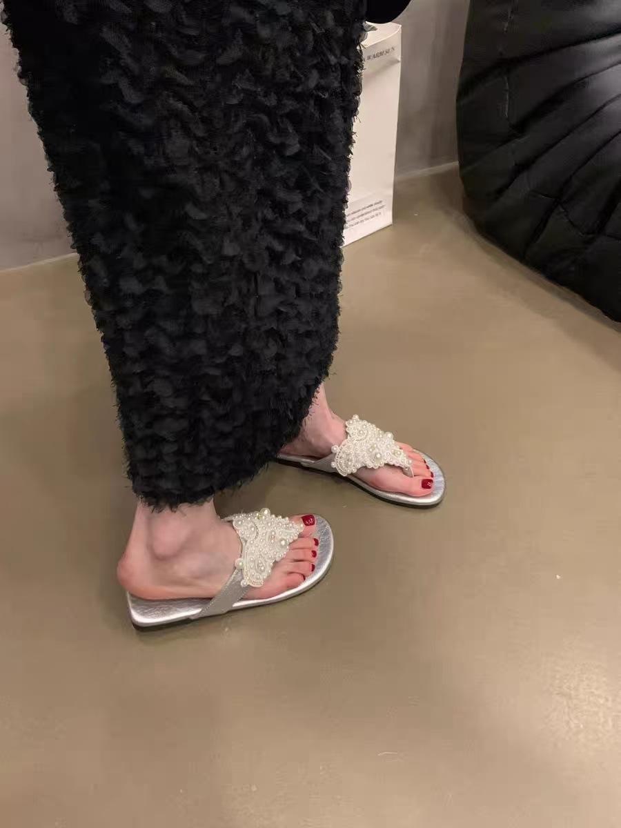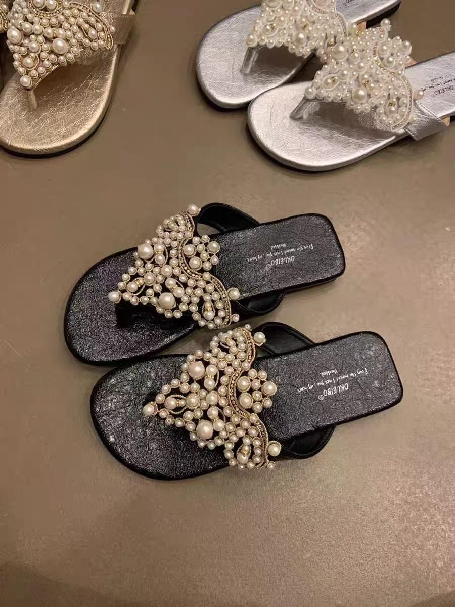 Sandalias Chanclas Estilo Hada Perla Nuevo Verano Retro Francés Bohemio Romanas Zapatos de Mujer