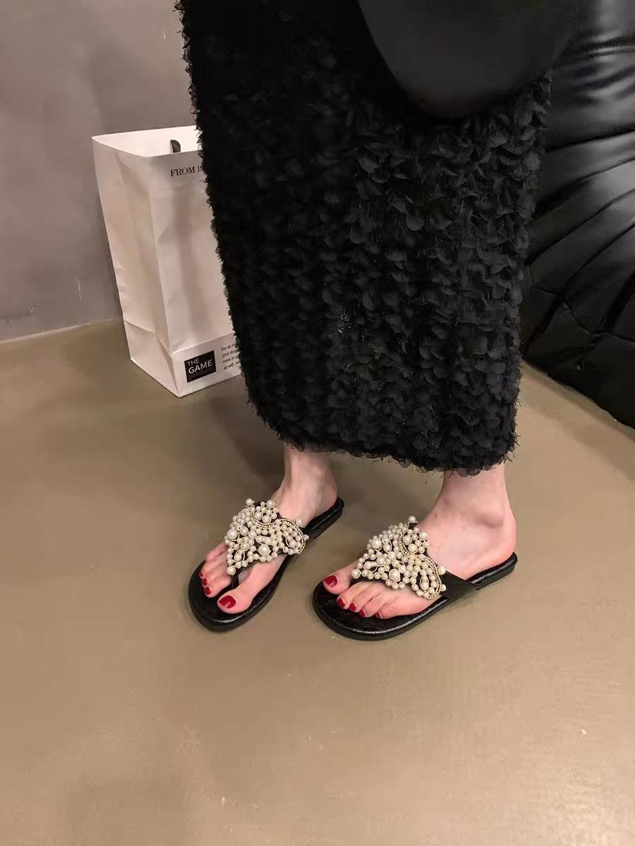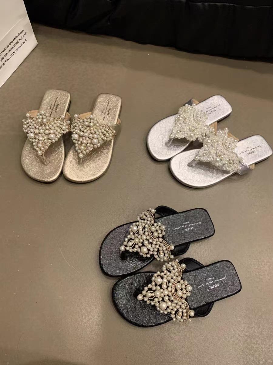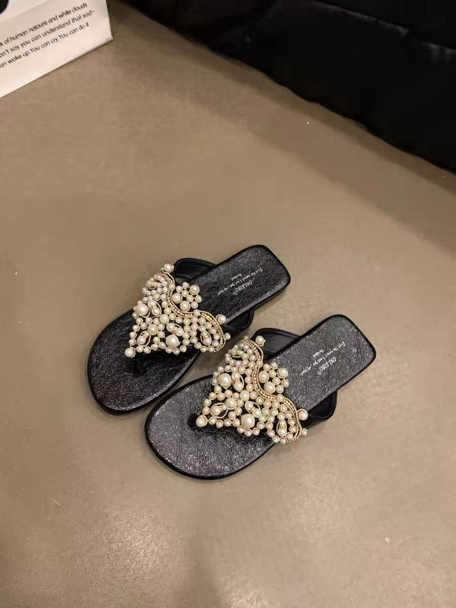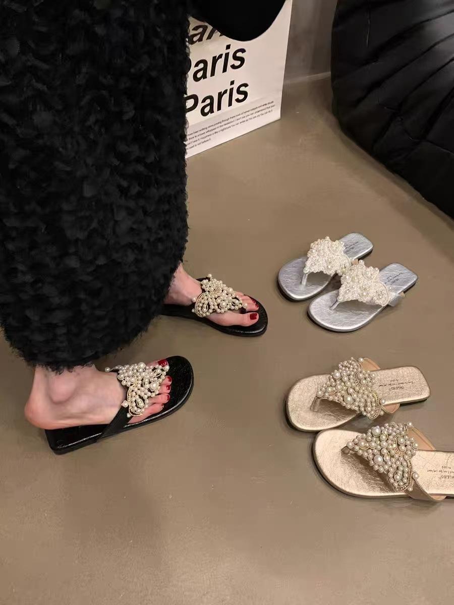 Sandalias Chanclas Estilo Hada Perla Nuevo Verano Retro Francés Bohemio Romanas Zapatos de Mujer