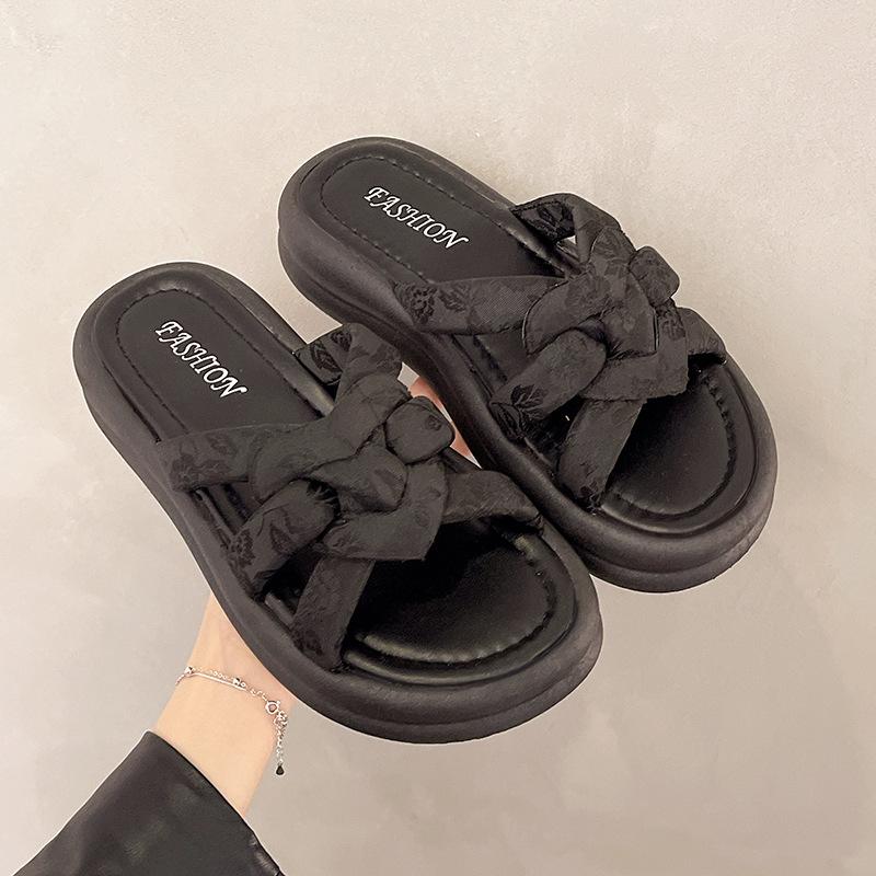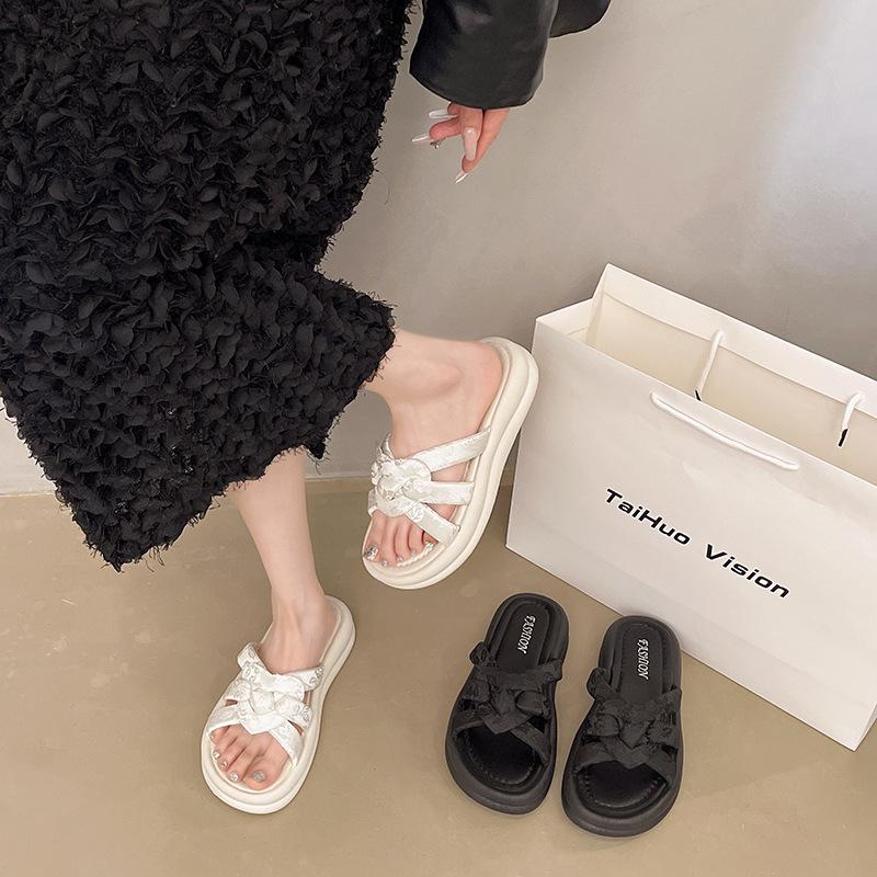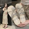 Pantuflas de Verano para Mujer para Exterior 2025 Nuevo Plano Retro Casual Versátil Sandalias de Diapositiva Moda Trendy Nicho Estilo Popular