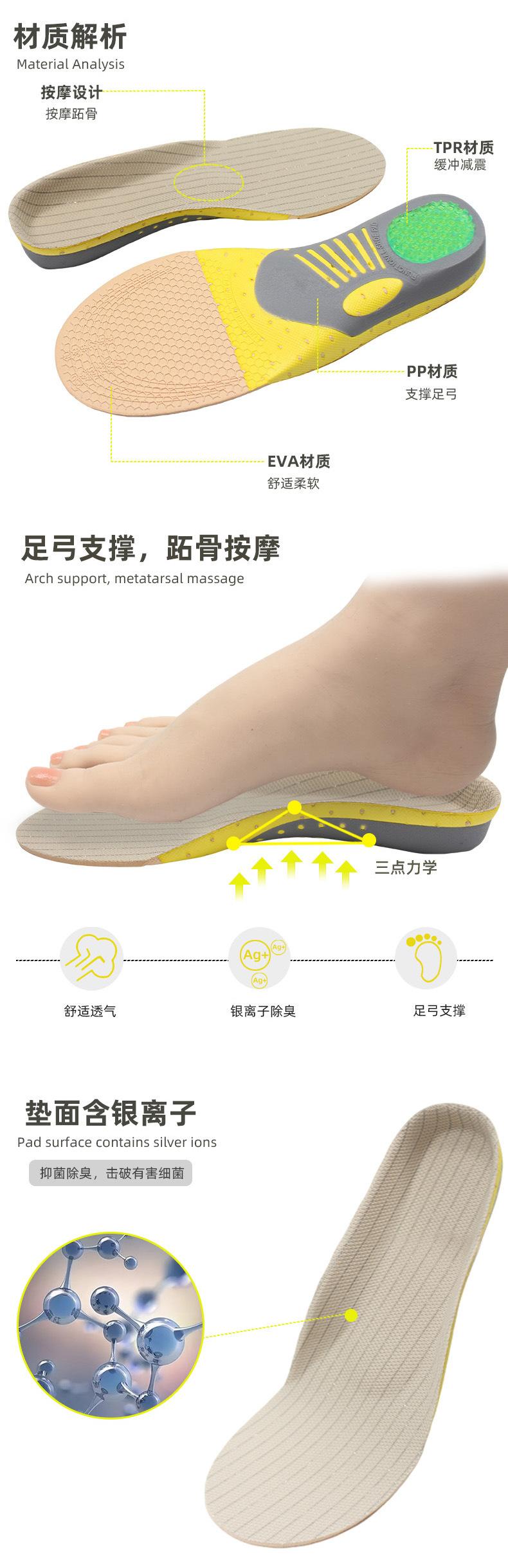 Plantillas correctoras de pie plano con soporte de arco para hombres y mujeres, desodorantes bacteriostáticos de iones de plata, deportivas, amortiguadoras, para masaje
