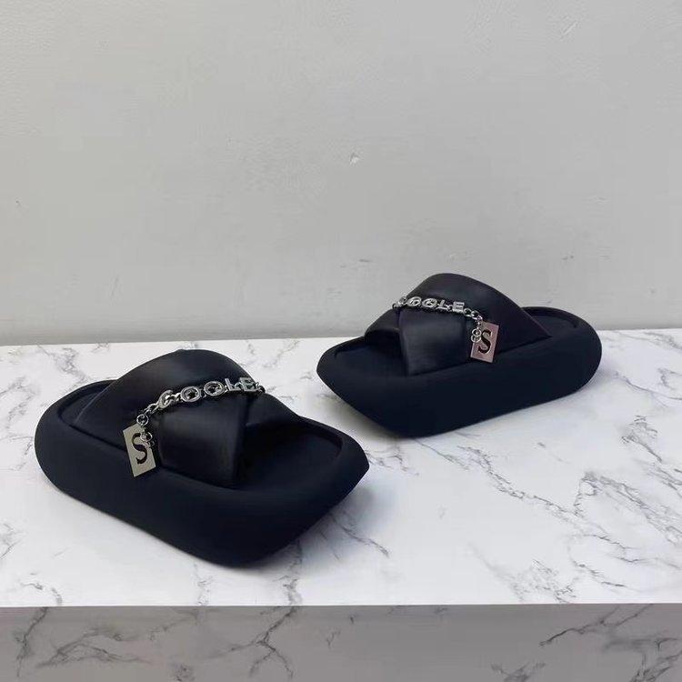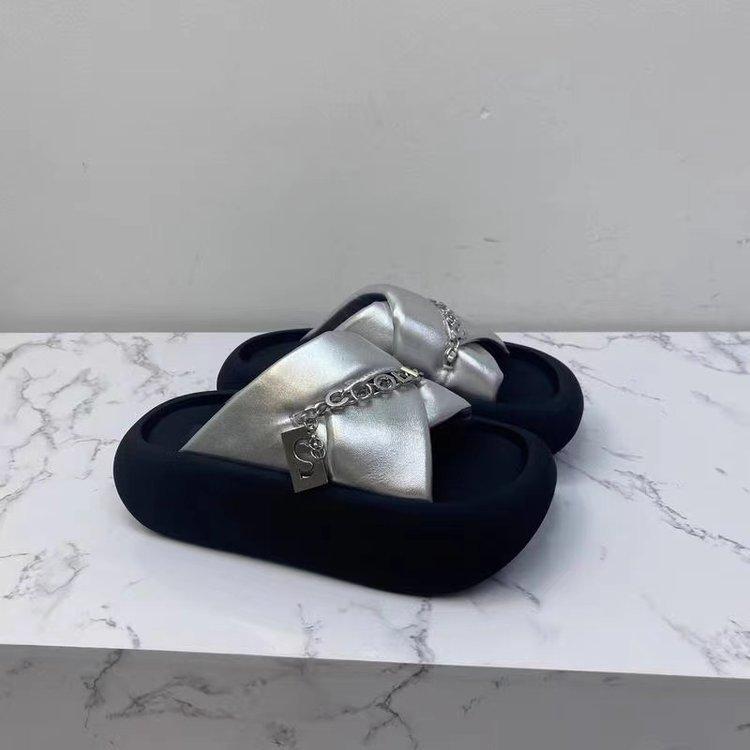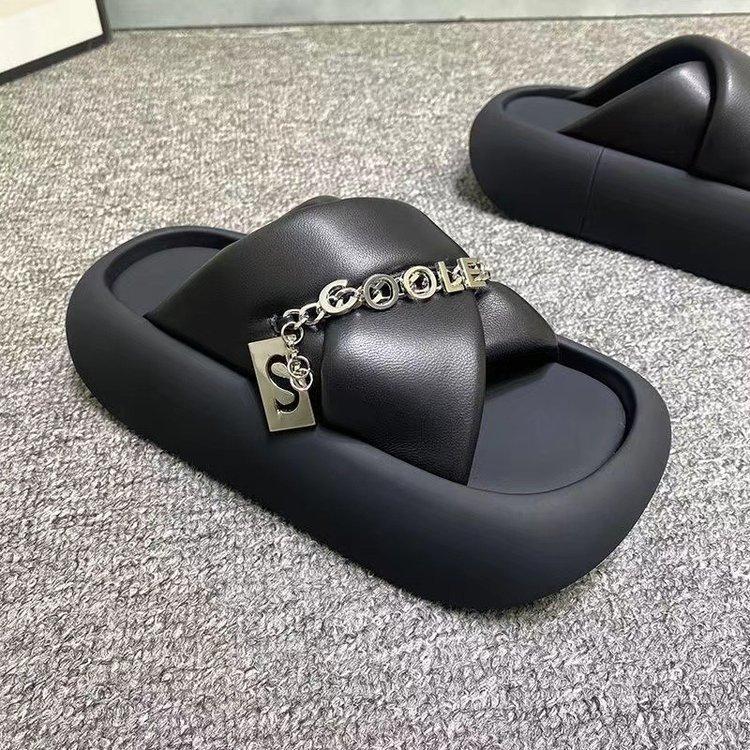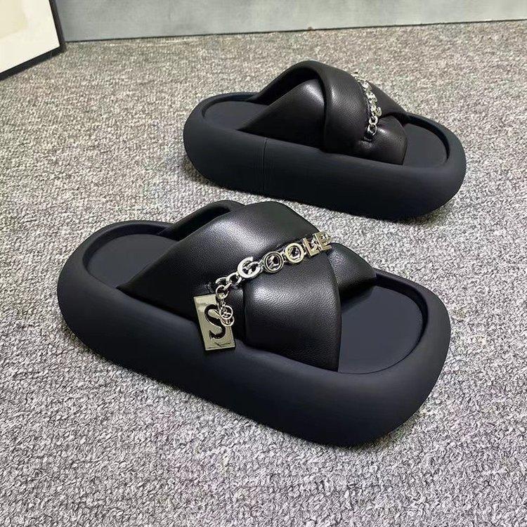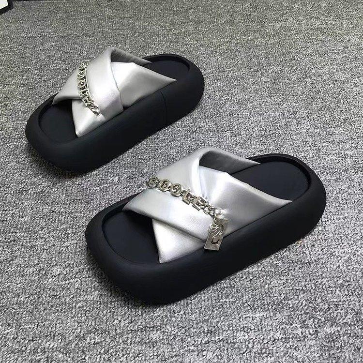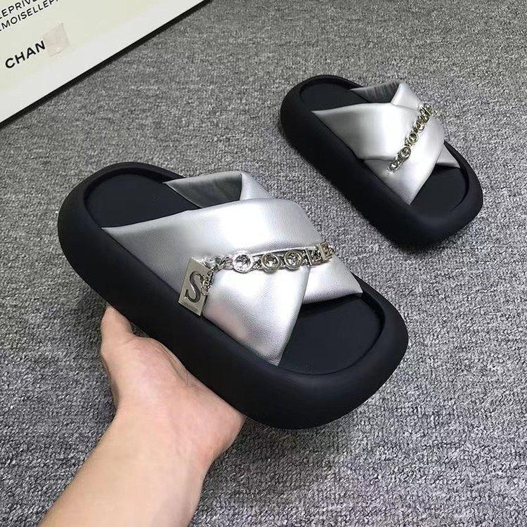 Compra Zapatillas de Estación Europea para Mujer 2025 Moda de Verano Nuevo Metal de Una Palabra Zapatillas Exteriores Plataforma Suela Gruesa Sandalias de Playa al por mayor en Joom.pro