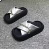 Zapatillas de Estación Europea para Mujer 2025 Moda de Verano Nuevo Metal de Una Palabra Zapatillas Exteriores Plataforma Suela Gruesa Sandalias de Playa
