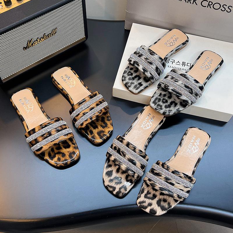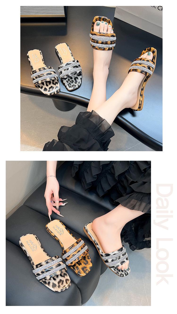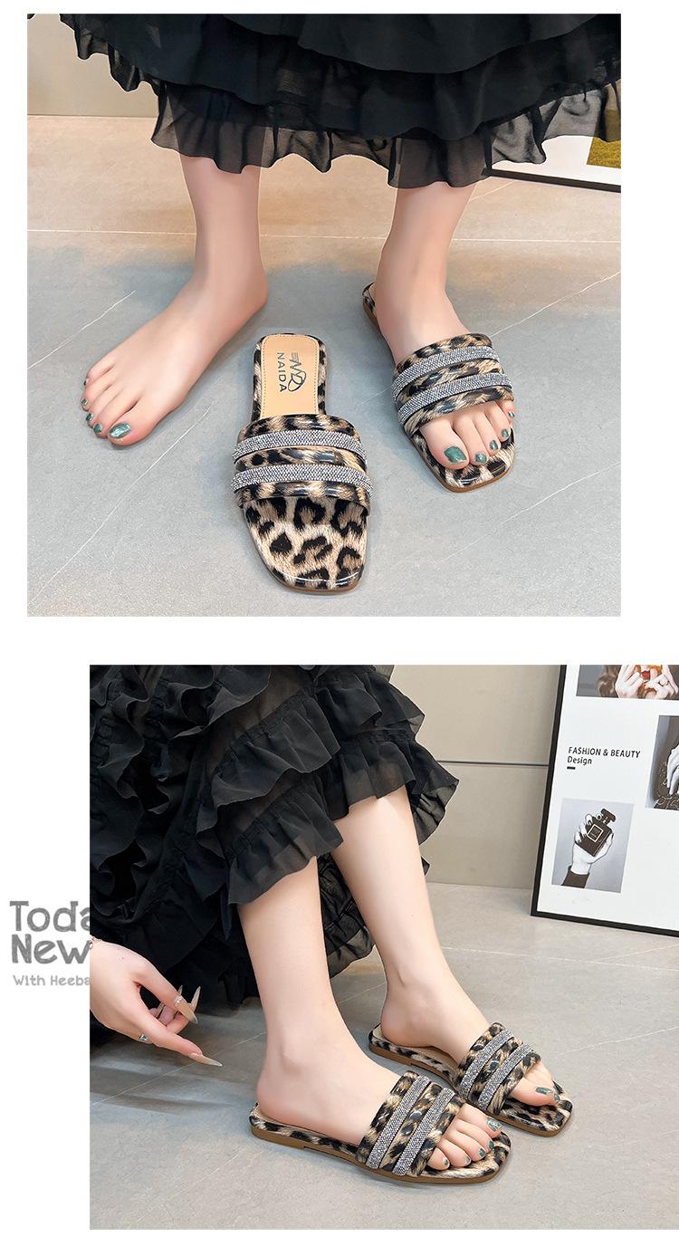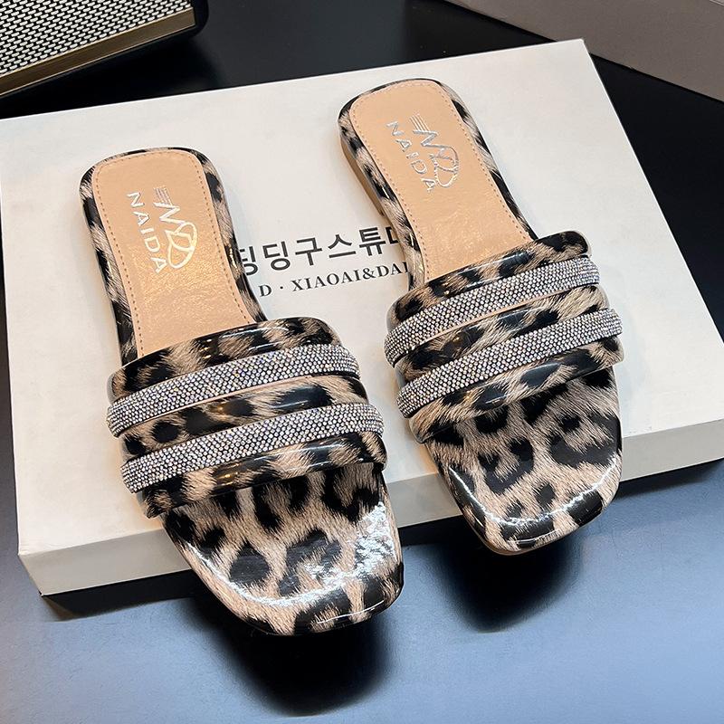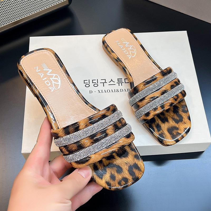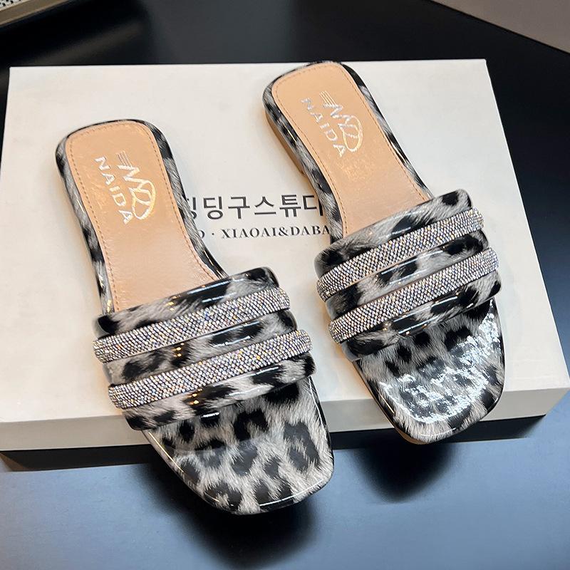 Compra Ropa de Exterior talla grande Pantuflas de Mujer 2025 Verano Nuevo Moda Europea y Americana Estampado de Leopardo Pedrería Planas Pantuflas de Playa al por mayor en Joom.pro