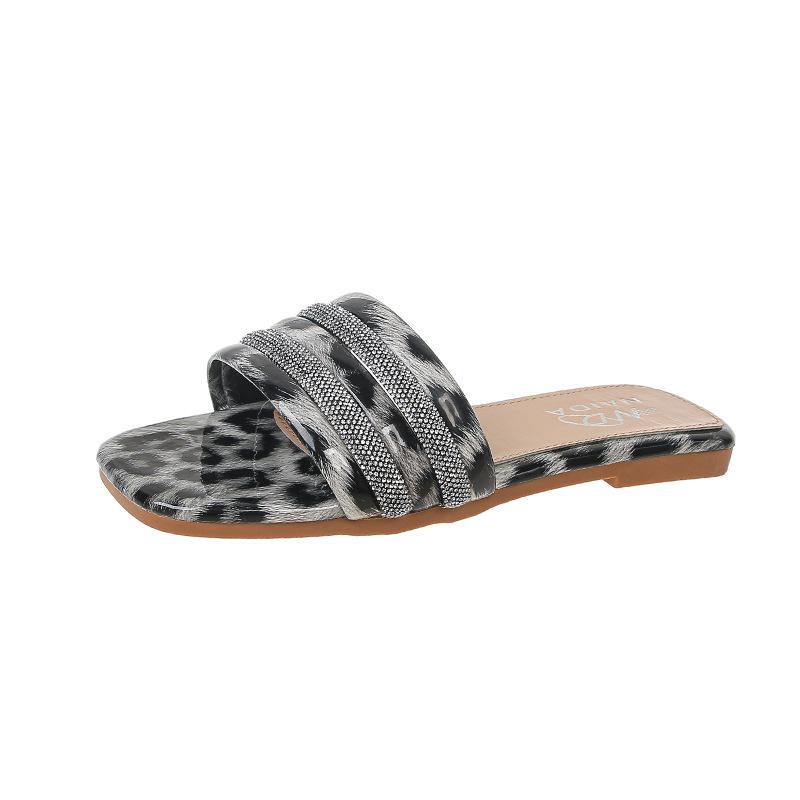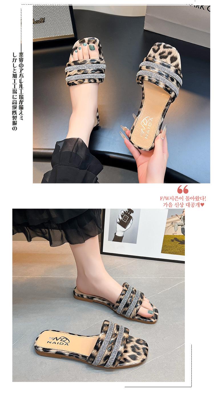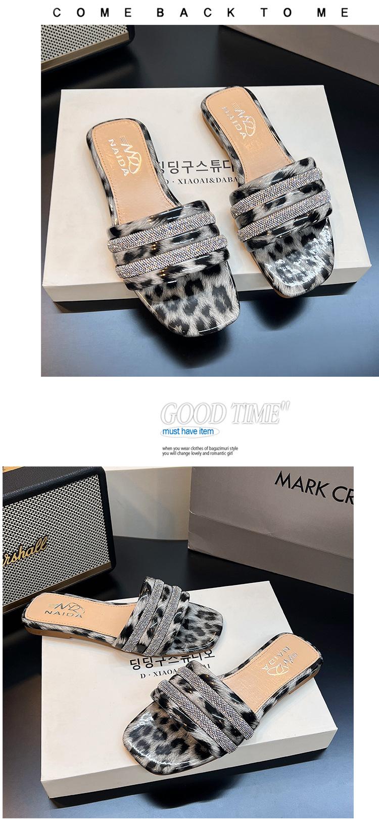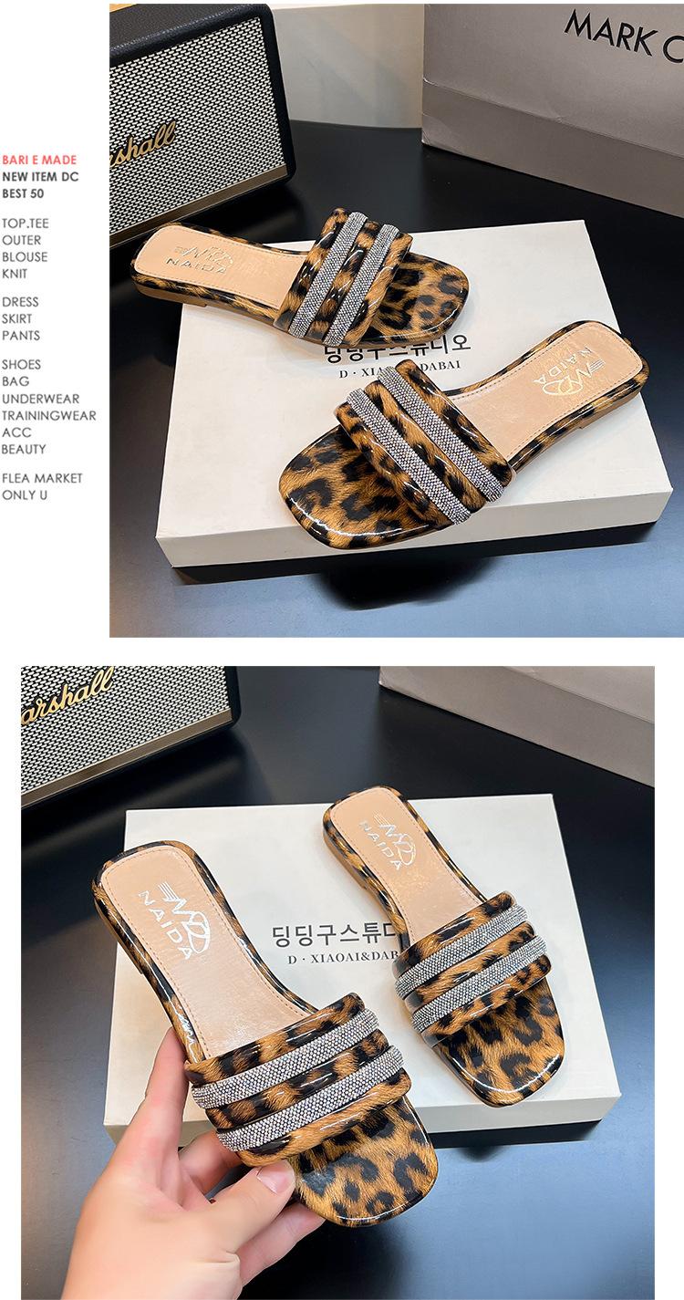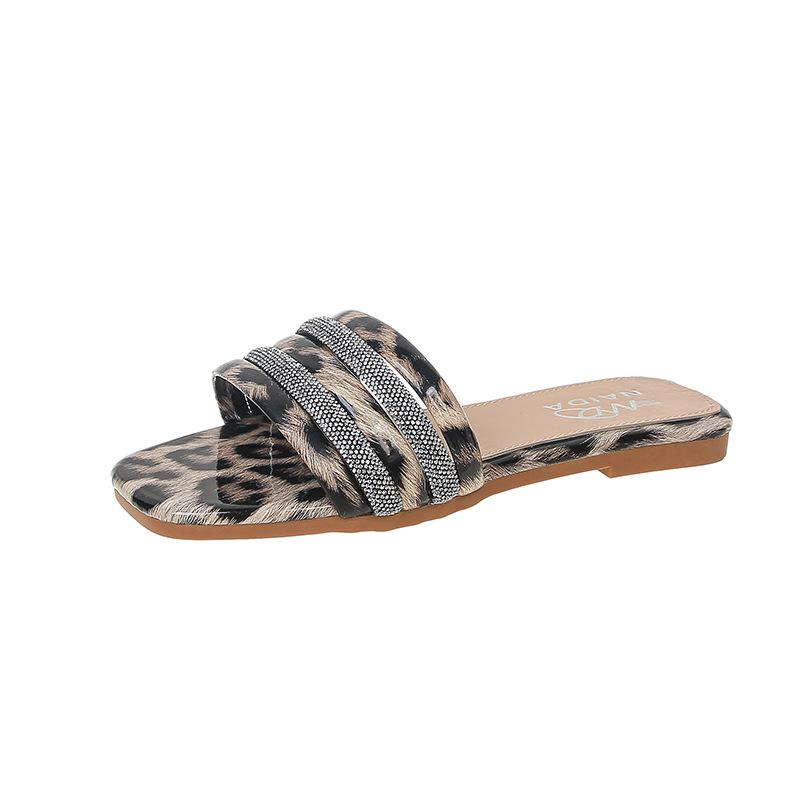 Compra Ropa de Exterior talla grande Pantuflas de Mujer 2025 Verano Nuevo Moda Europea y Americana Estampado de Leopardo Pedrería Planas Pantuflas de Playa al por mayor en Joom.pro