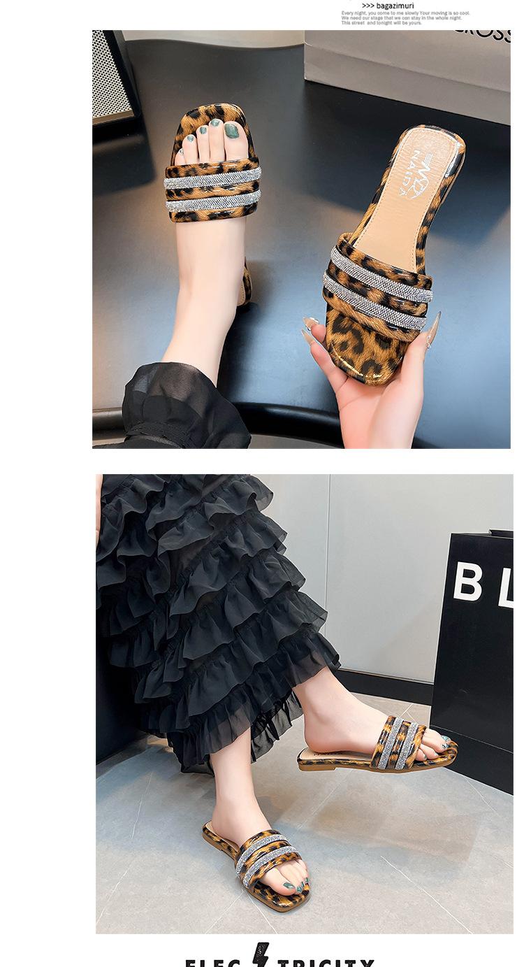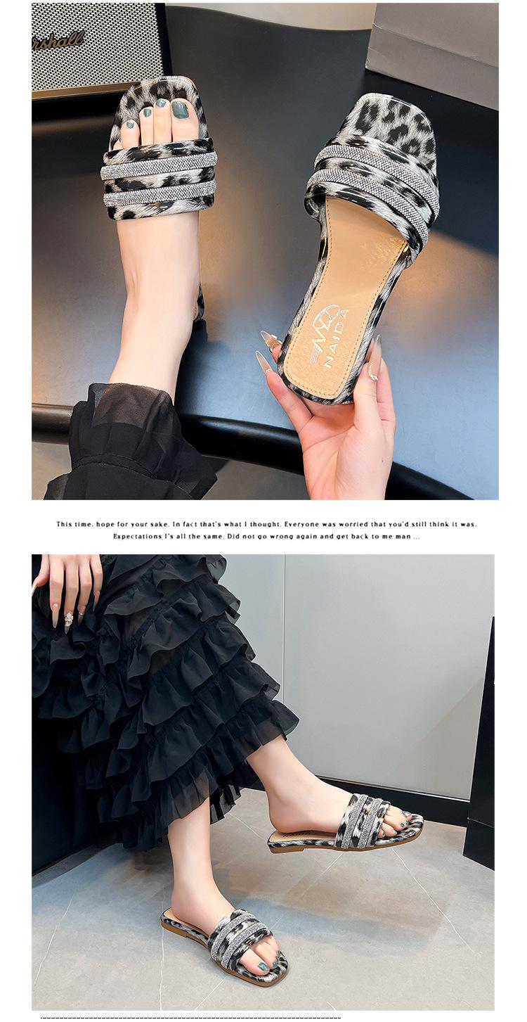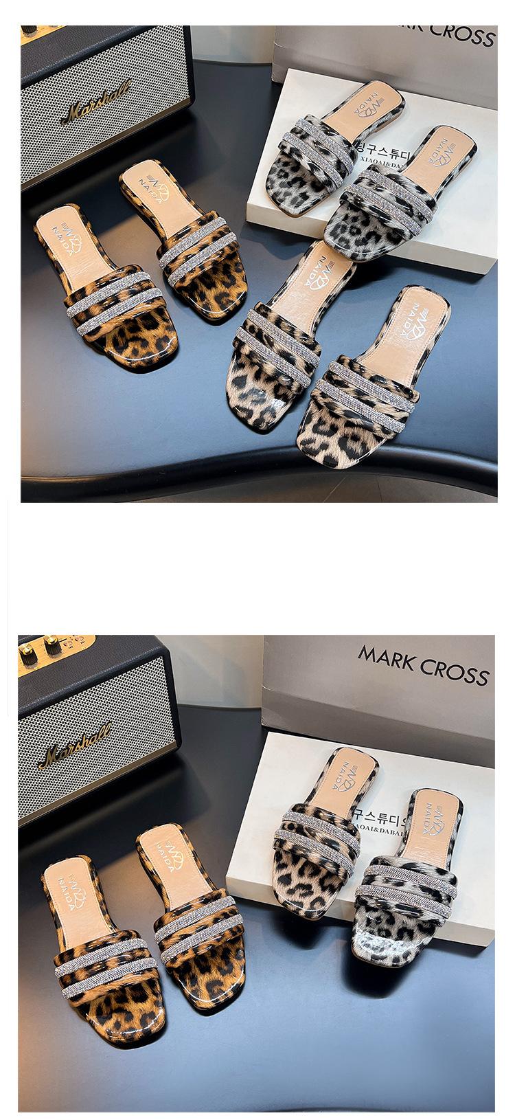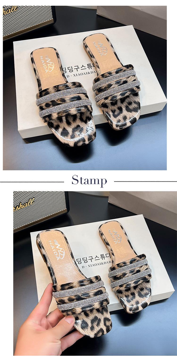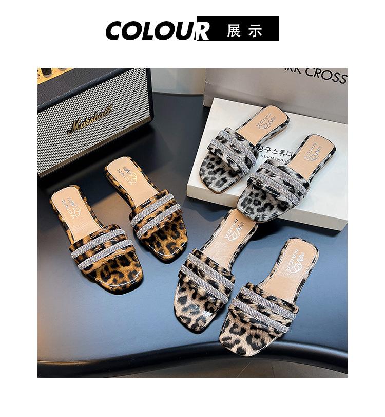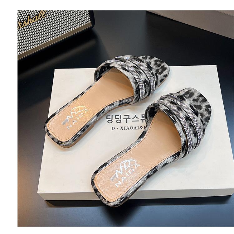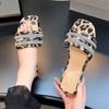 Ropa de Exterior talla grande Pantuflas de Mujer 2025 Verano Nuevo Moda Europea y Americana Estampado de Leopardo Pedrería Planas Pantuflas de Playa