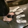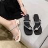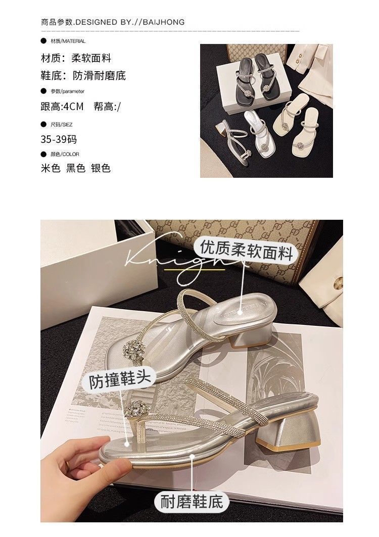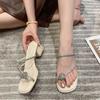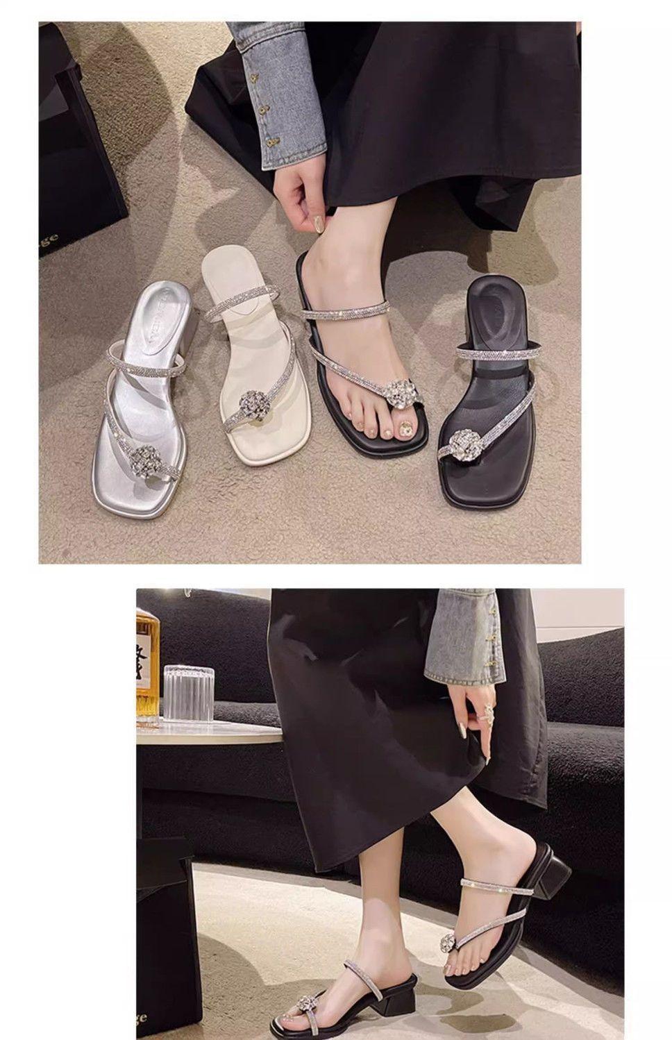 Verano Ropa Exterior 2025 Nuevas Pantuflas Francesas de Tacón Grueso Versátiles Chanclas de Pedrería Sandalias Huevo de Paloma Sandalias Romanas para Mujer
