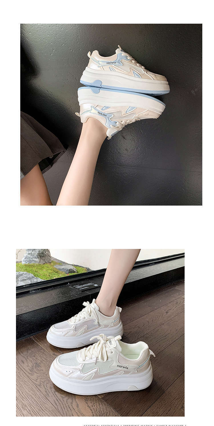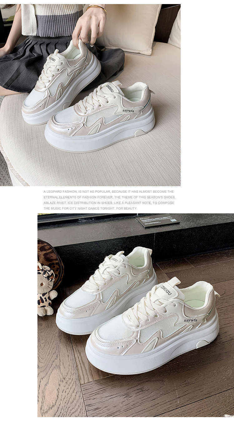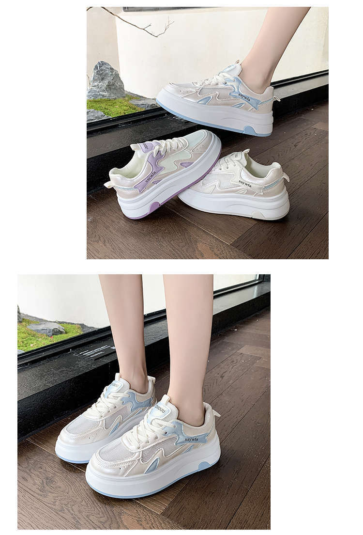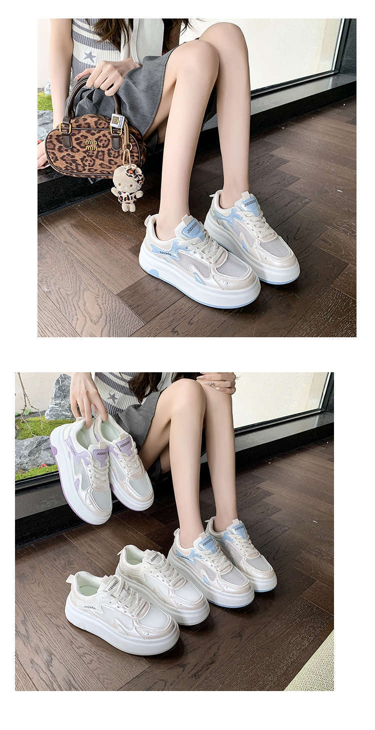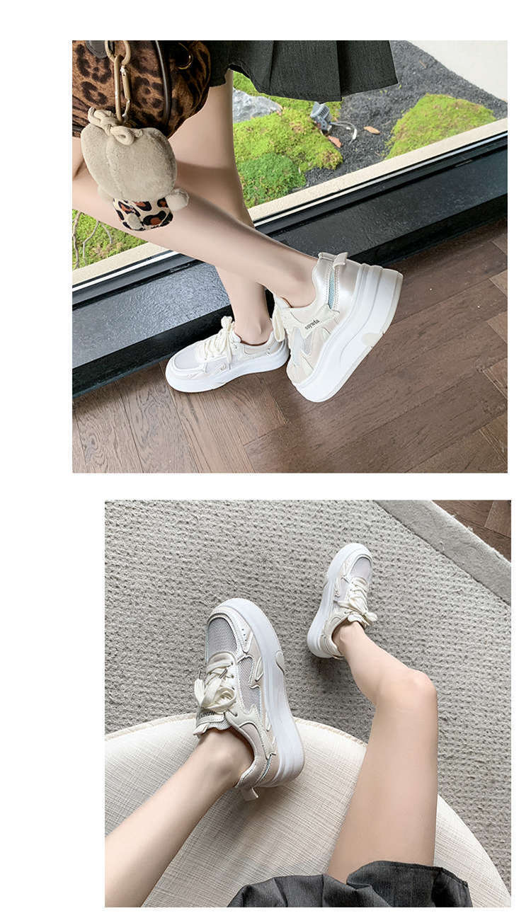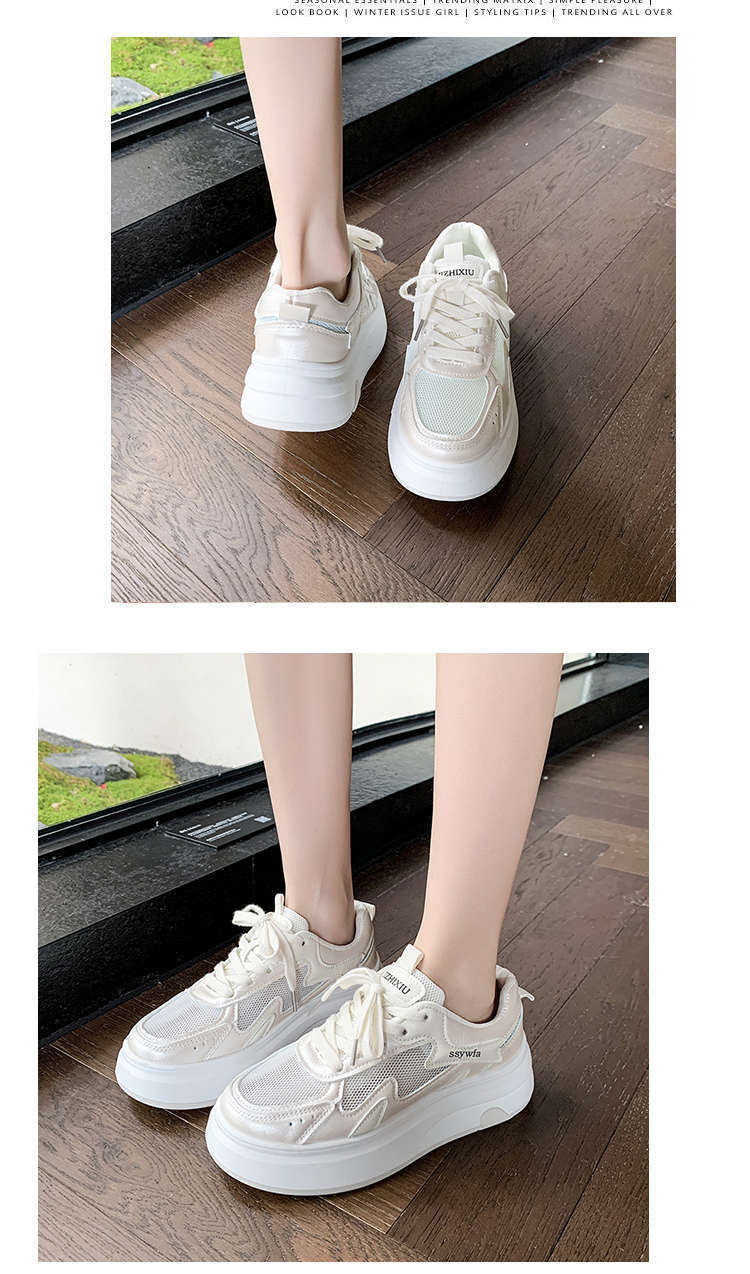 Zapatos Blancos de Suela Gruesa para Mujer 2025 Primavera y Otoño Nuevos Zapatos de Malla Transpirable de Verano Zapatillas Casuales Ligeras con Altura