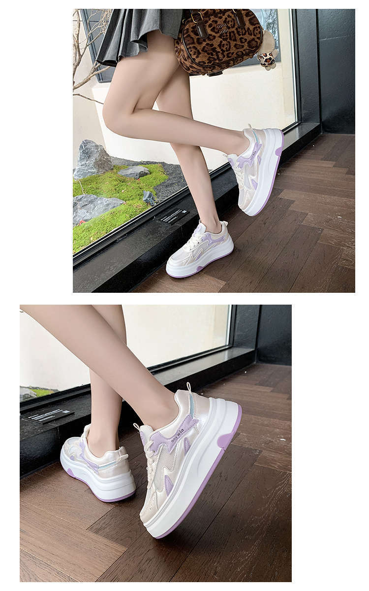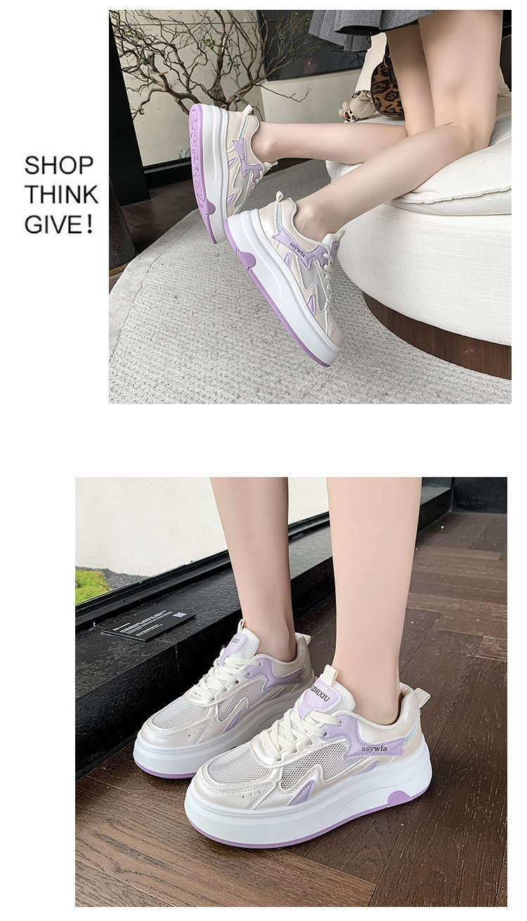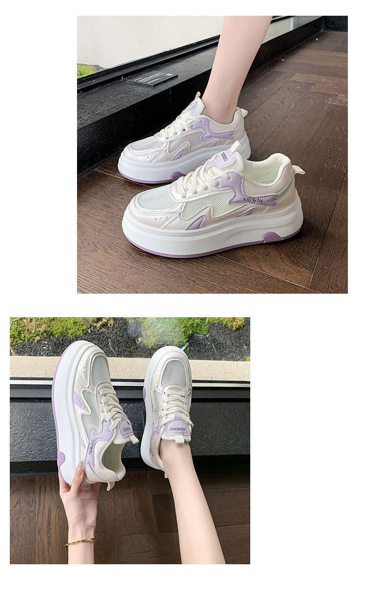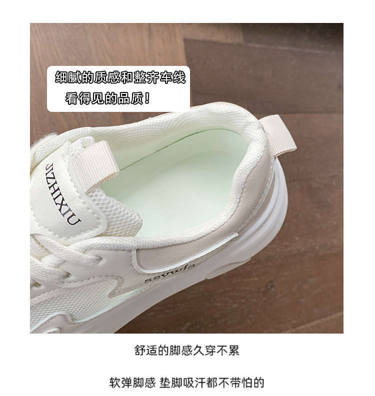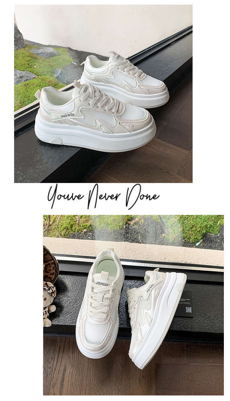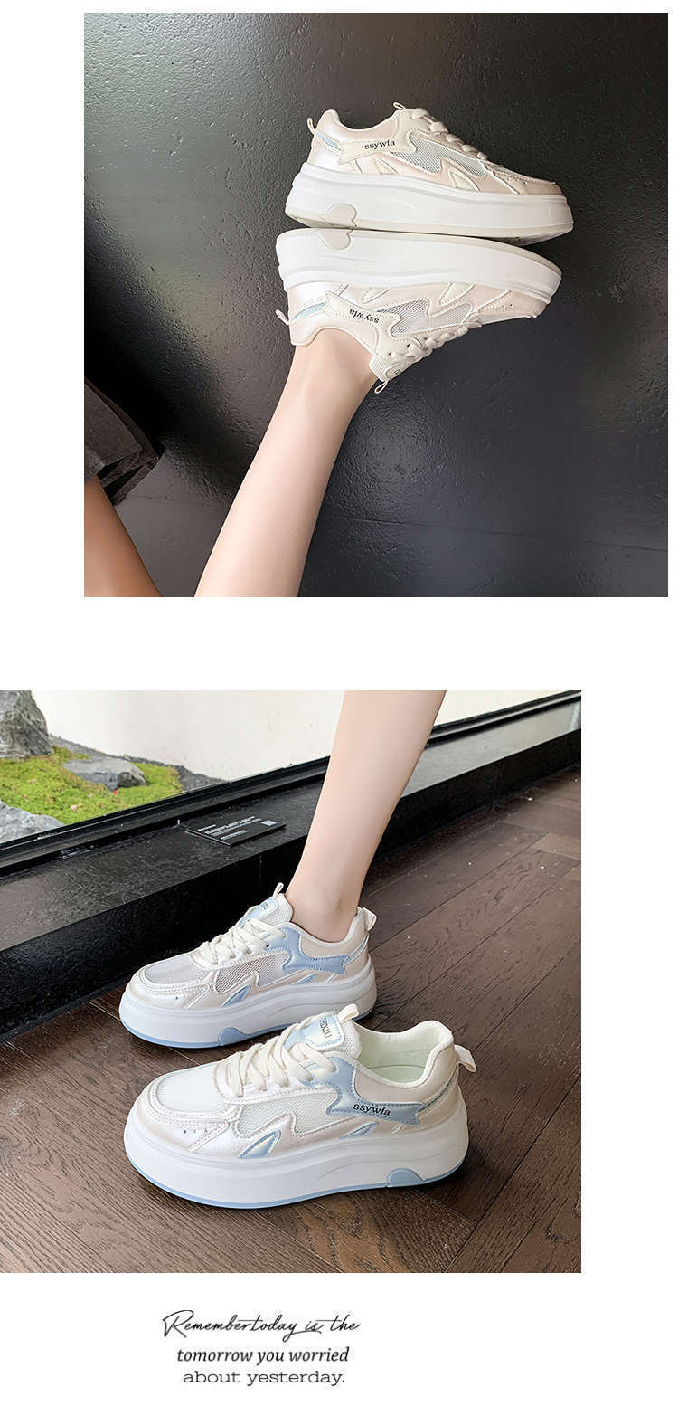 Zapatos Blancos de Suela Gruesa para Mujer 2025 Primavera y Otoño Nuevos Zapatos de Malla Transpirable de Verano Zapatillas Casuales Ligeras con Altura