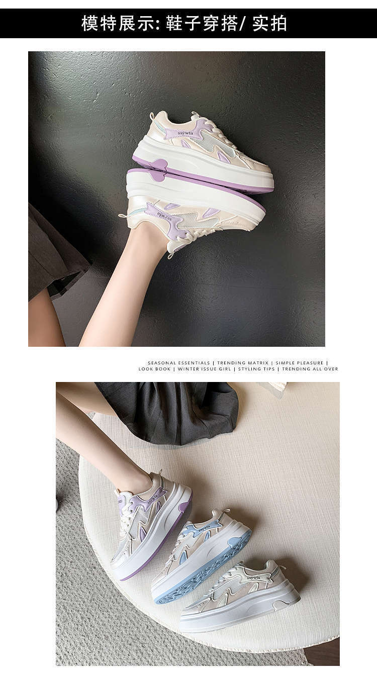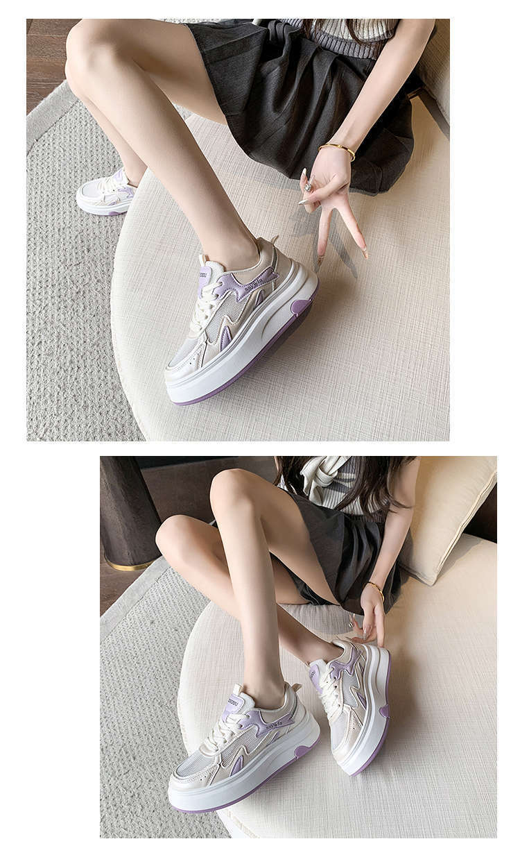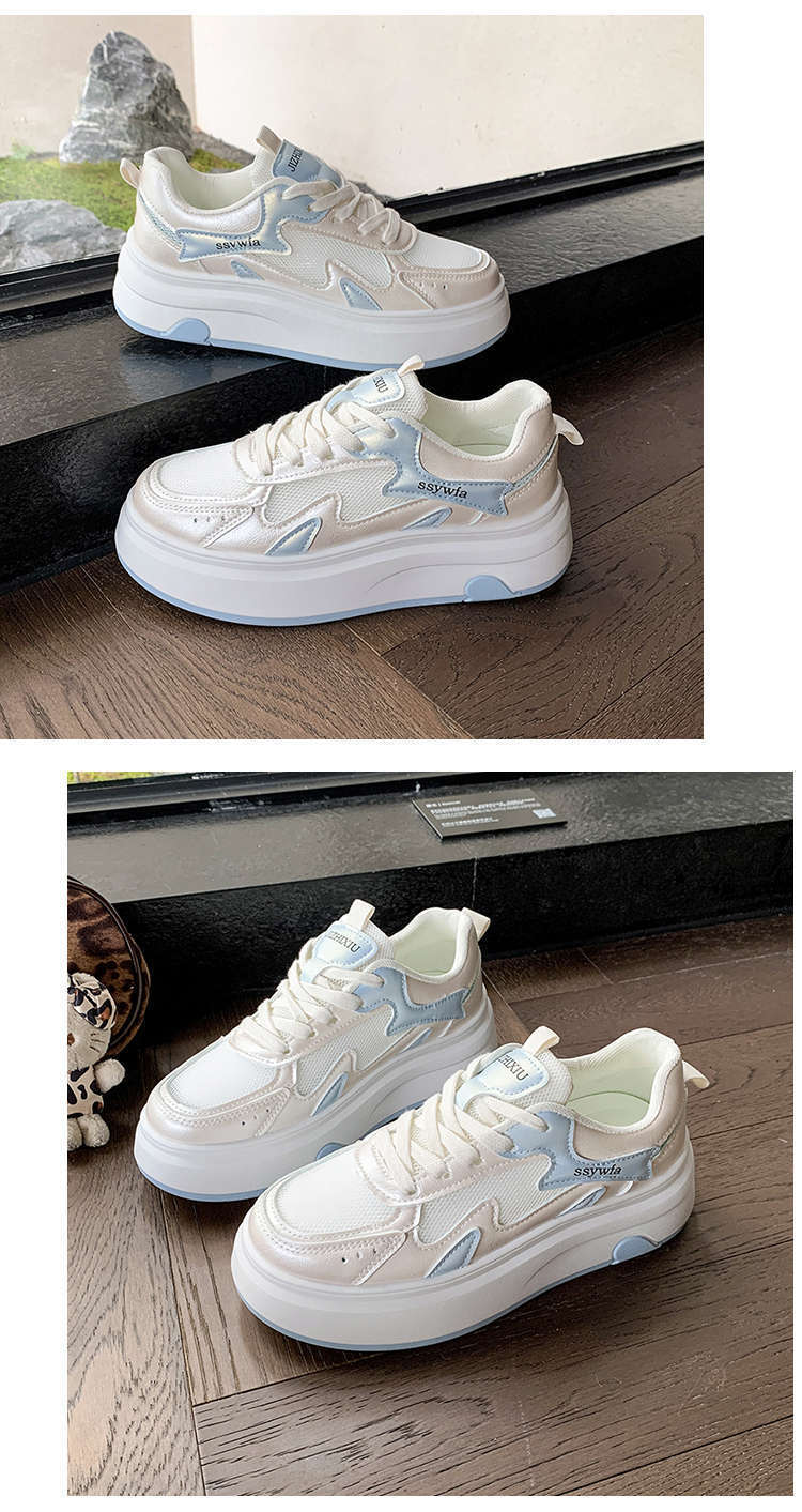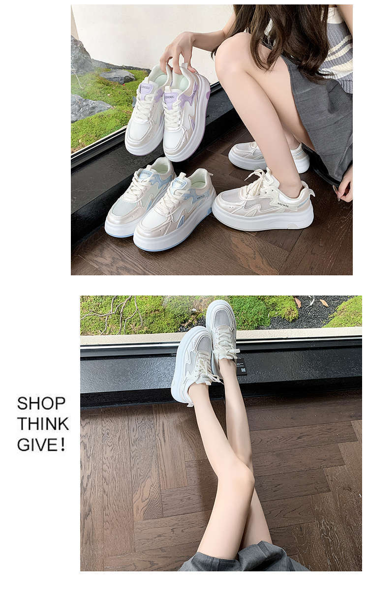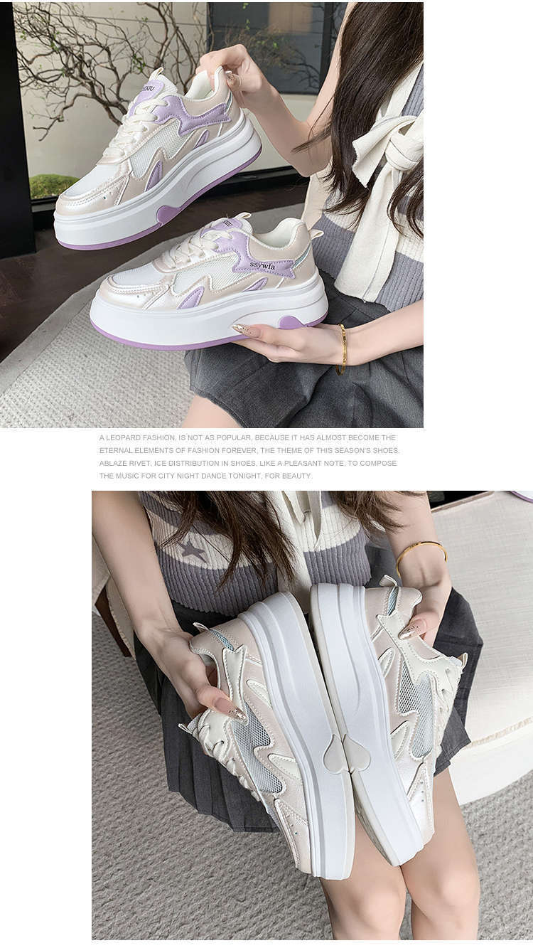 Zapatos Blancos de Suela Gruesa para Mujer 2025 Primavera y Otoño Nuevos Zapatos de Malla Transpirable de Verano Zapatillas Casuales Ligeras con Altura
