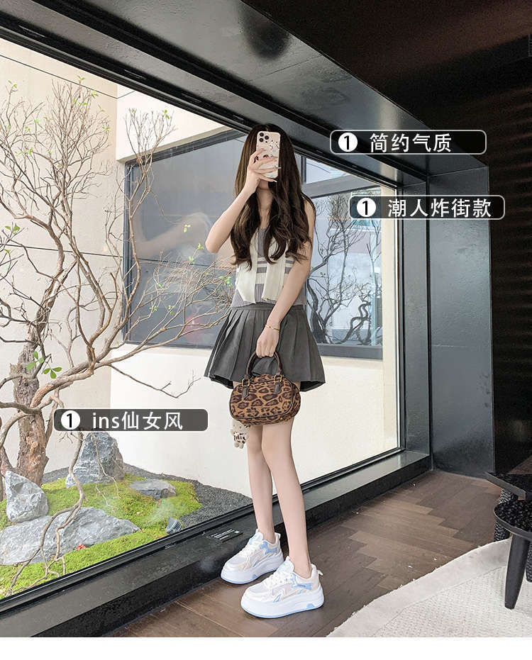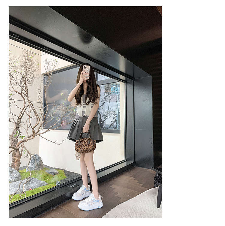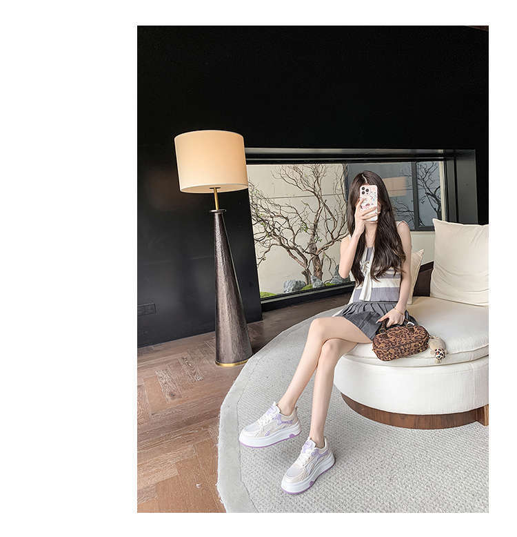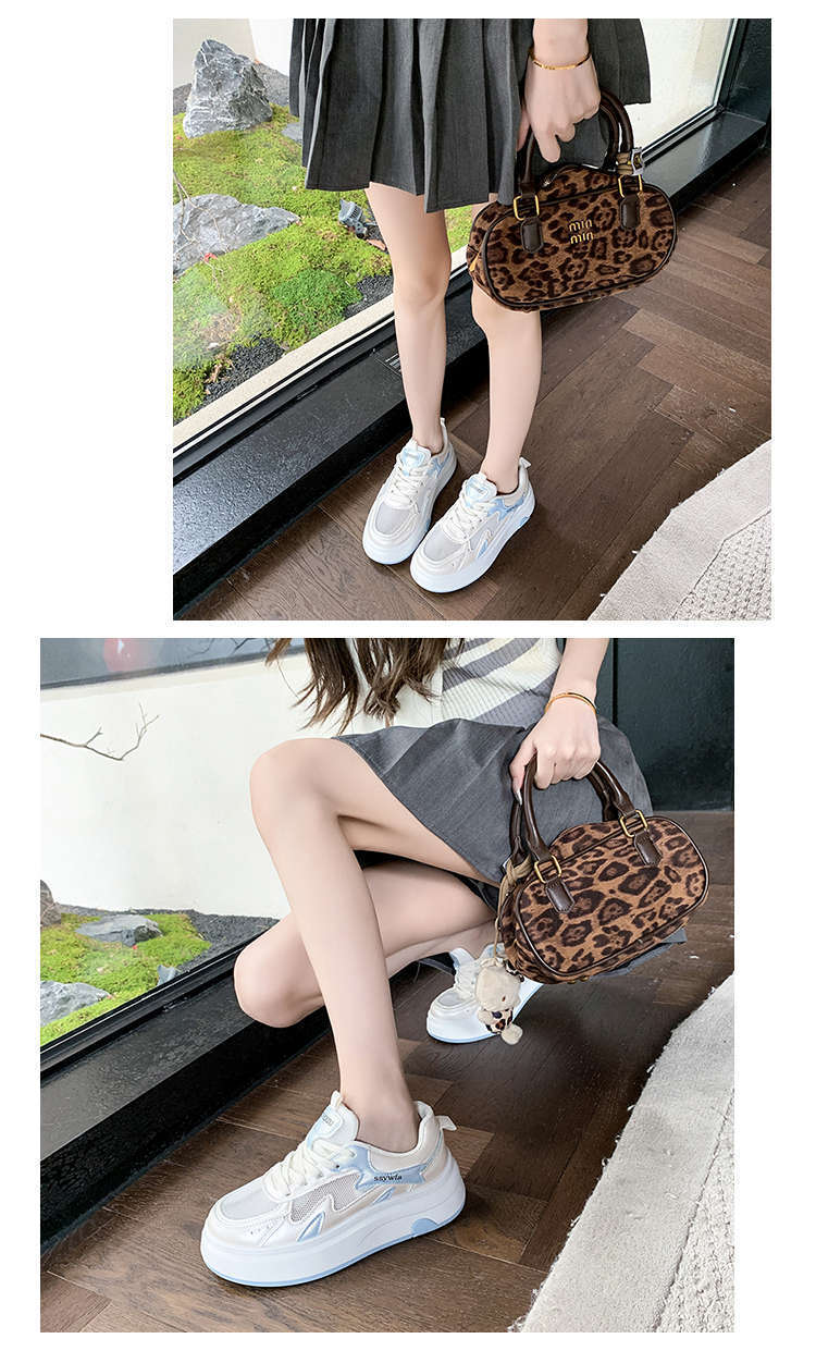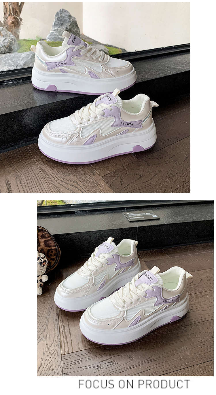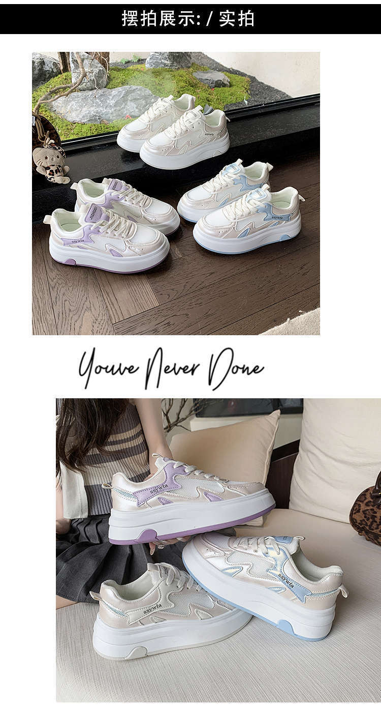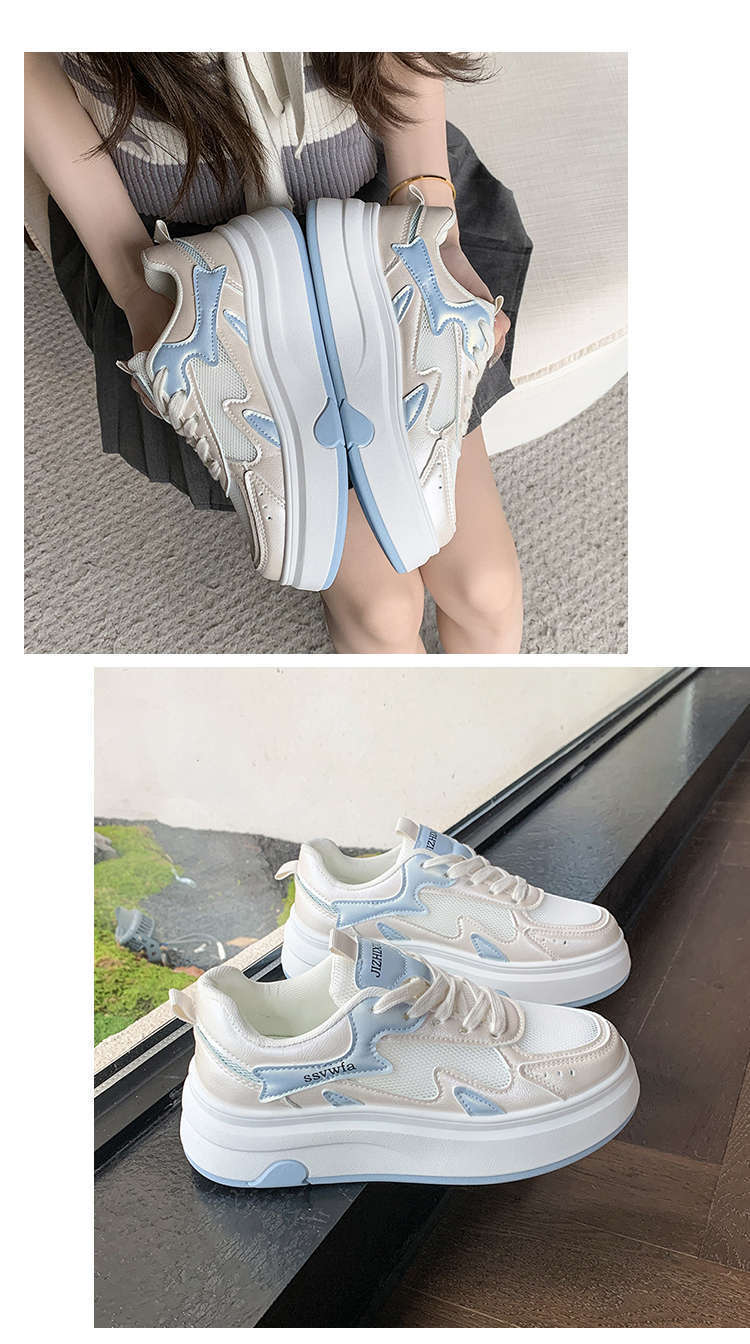 Zapatos Blancos de Suela Gruesa para Mujer 2025 Primavera y Otoño Nuevos Zapatos de Malla Transpirable de Verano Zapatillas Casuales Ligeras con Altura