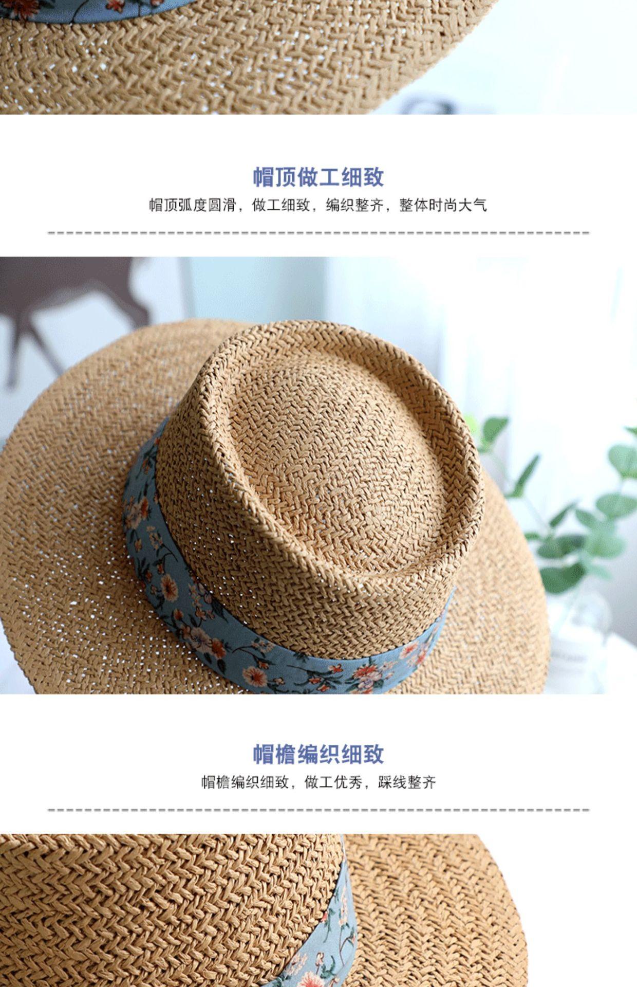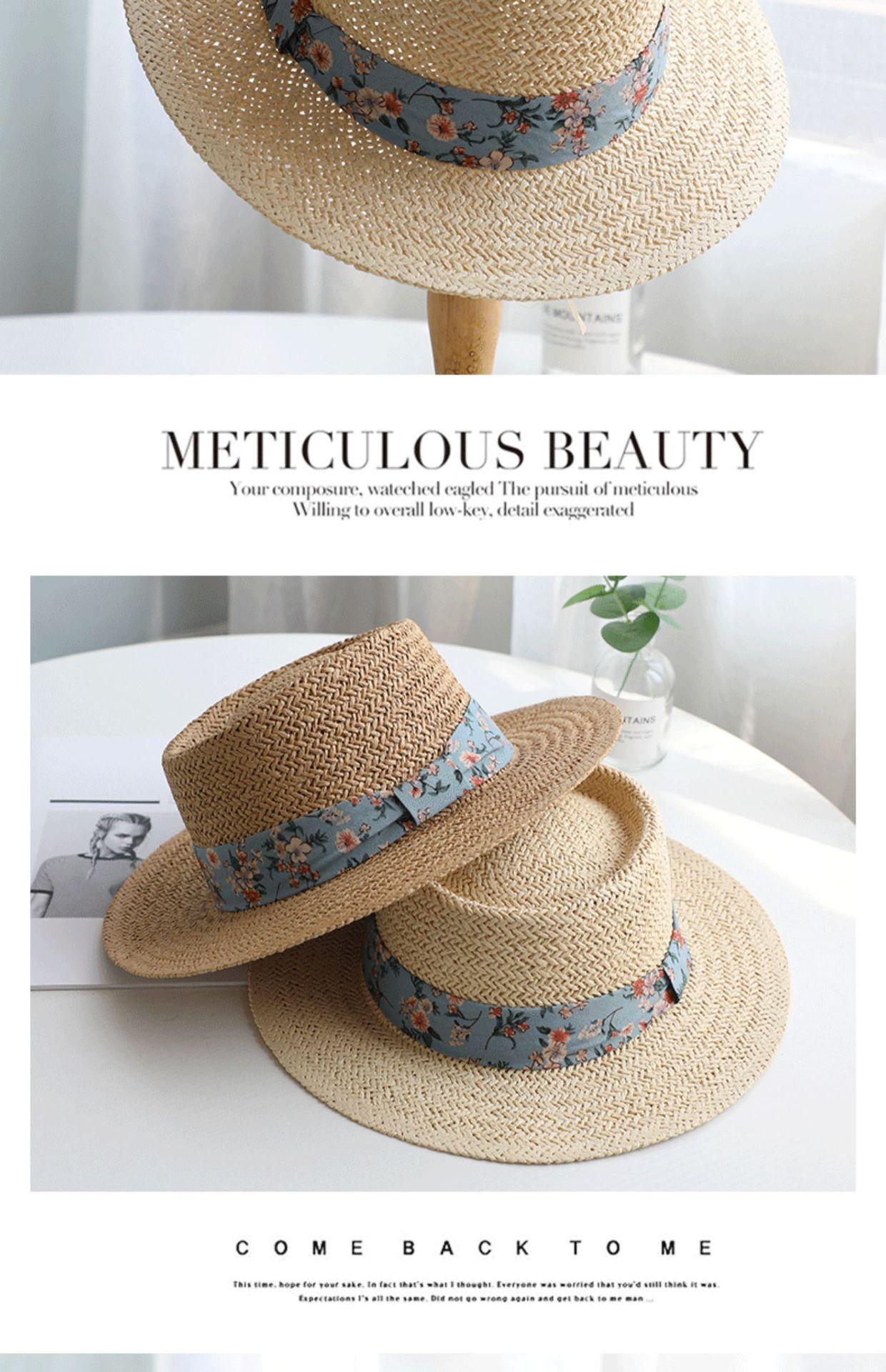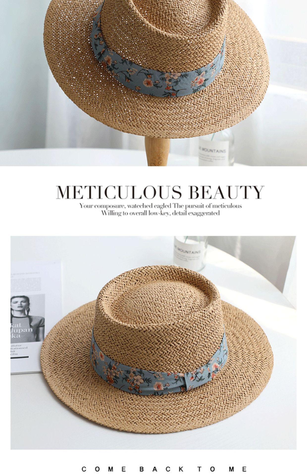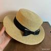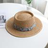 Sombrero de Paja Estilo Coreano para Mujer Verano Británico Retro Copa Plana Sombrero de Copa Pequeño Fresco Sombrilla Protector Solar Playa Sombrero de Sol para Viaje