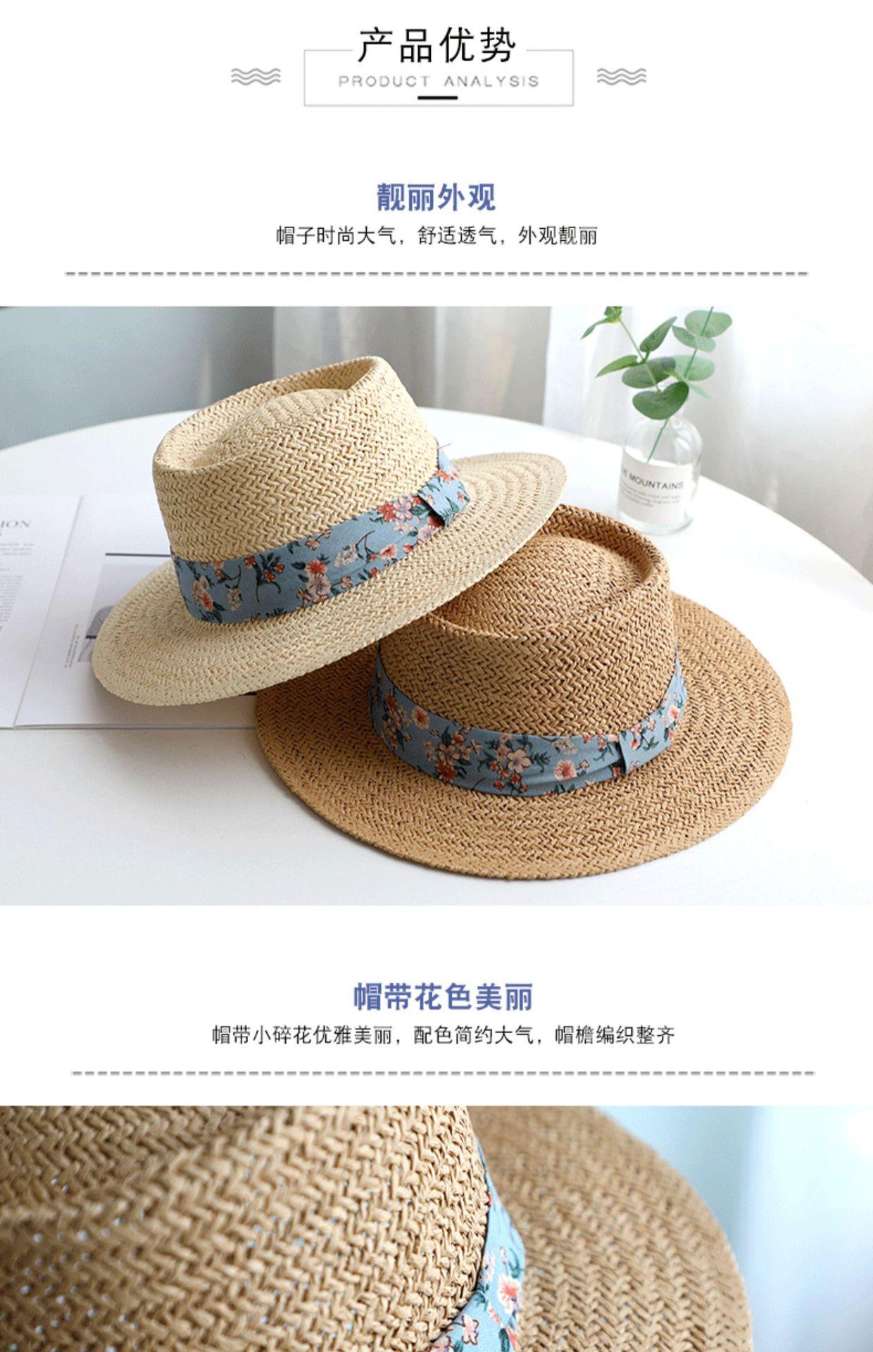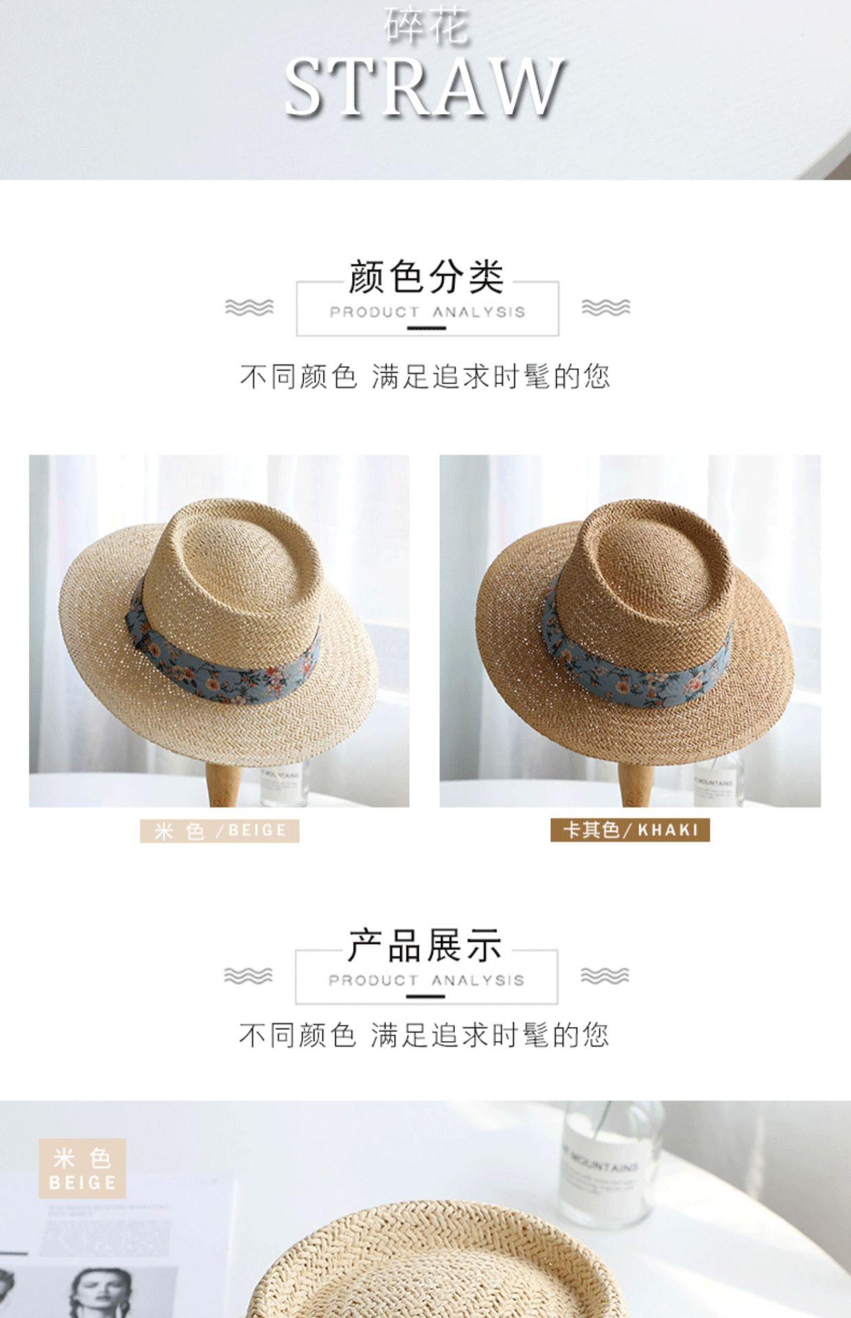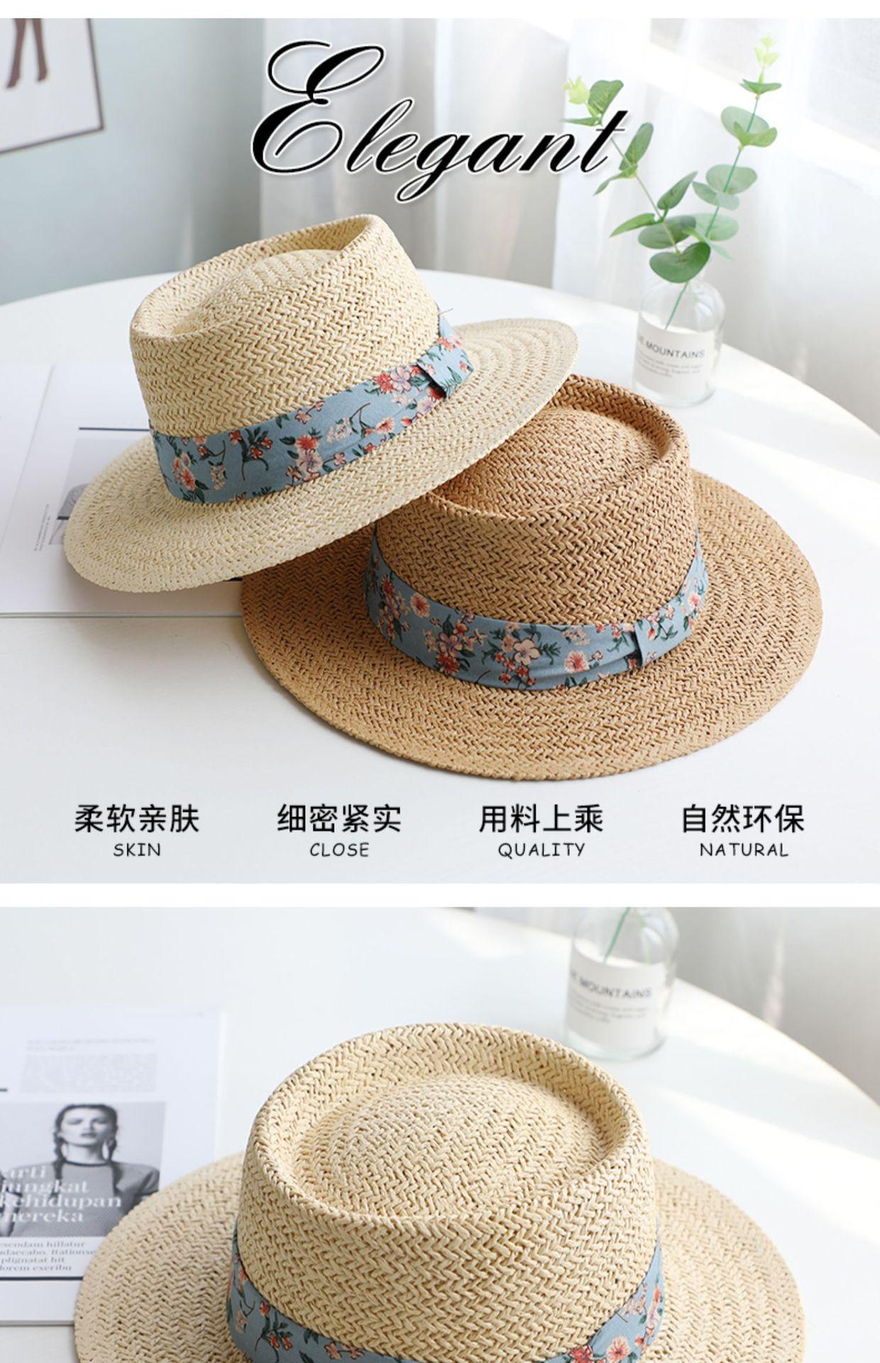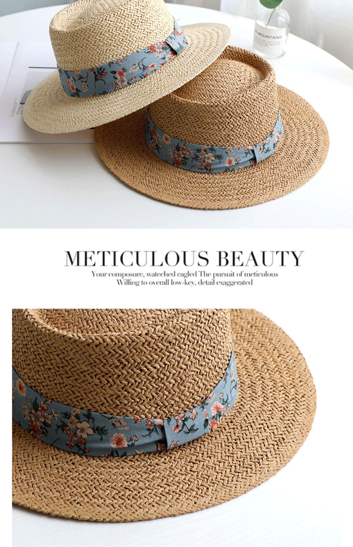 Sombrero de Paja Estilo Coreano para Mujer Verano Británico Retro Copa Plana Sombrero de Copa Pequeño Fresco Sombrilla Protector Solar Playa Sombrero de Sol para Viaje