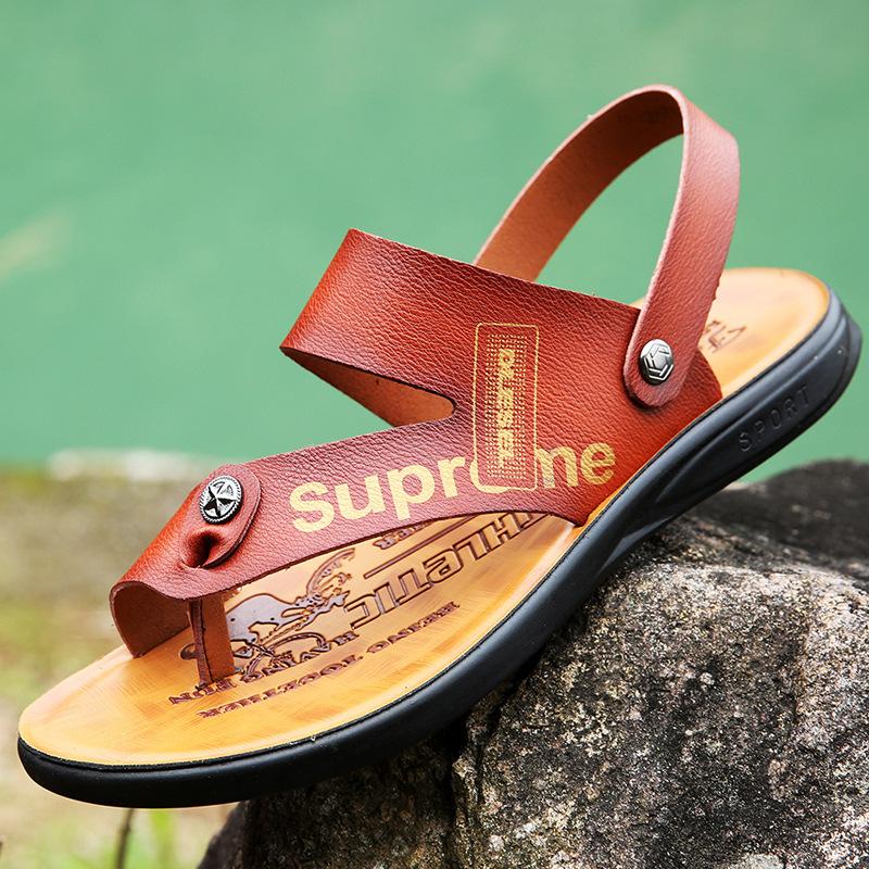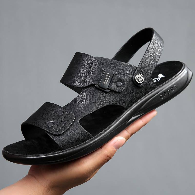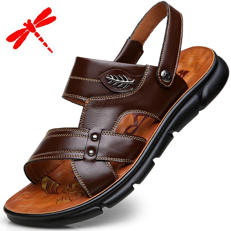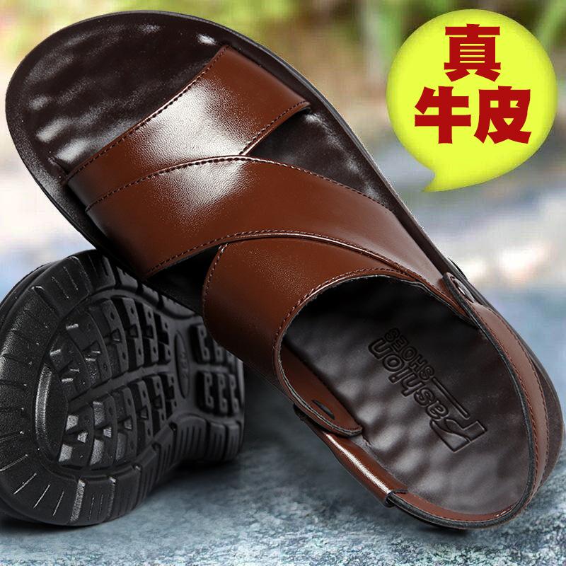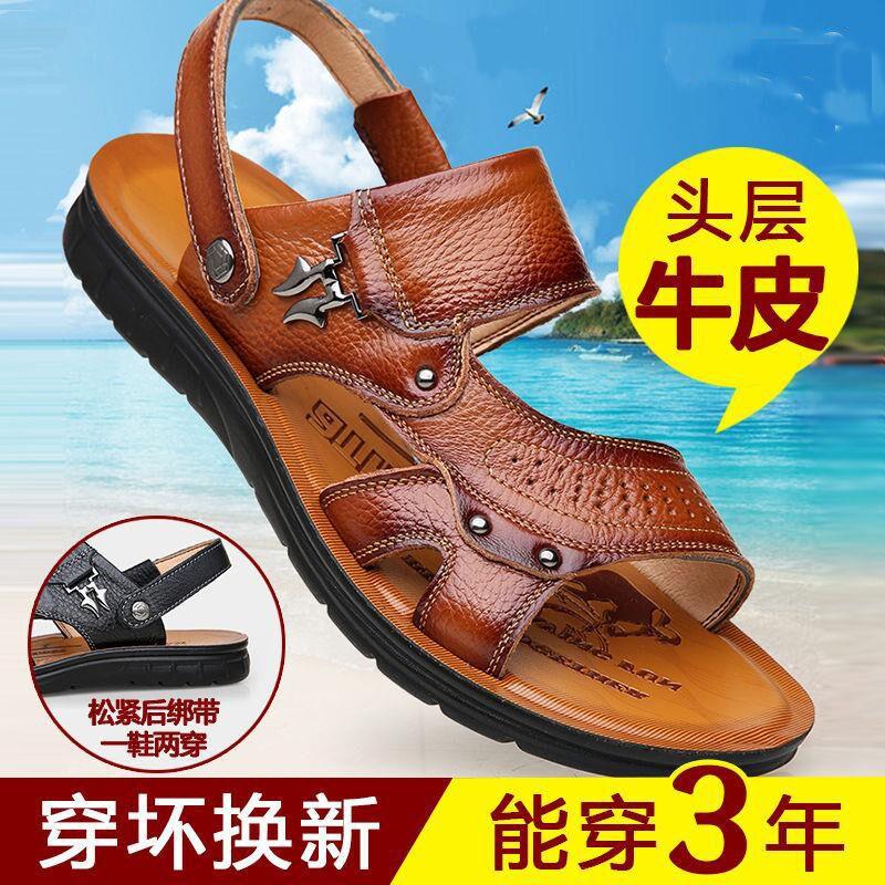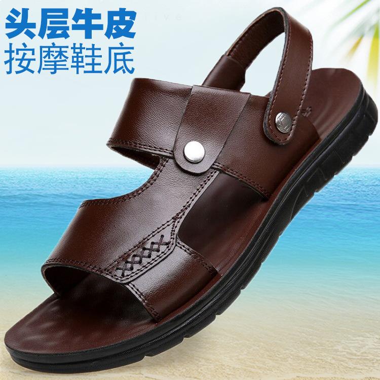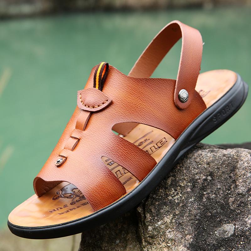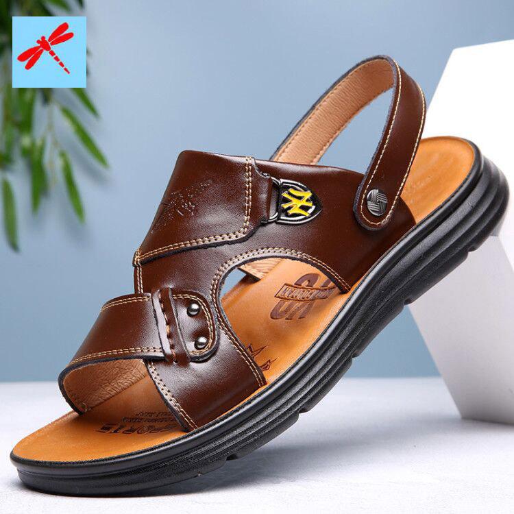 2020 nuevas sandalias tendencia para hombre verano suela suave antideslizante zapatos de playa cuero genuino zapatillas de estar por casa para mediana edad de una pieza dropshipping