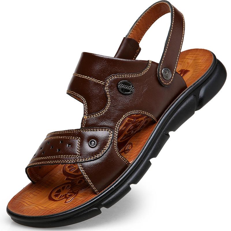 Zapatos de Playa de Verano Nuevos Sandalias Casuales Antideslizantes de Cuero Genuino para Hombre Cuero Vacuno para Exterior Edad Media Zapatillas de Suela Gruesa al Por Mayor