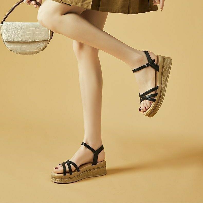 Sandalias de Suela Gruesa Verano 2024 Zapatos de Mujer Nuevas Plataformas de Playa Zapatos de Plataforma Versátiles Populares Sandalias de Mujer para Adultos