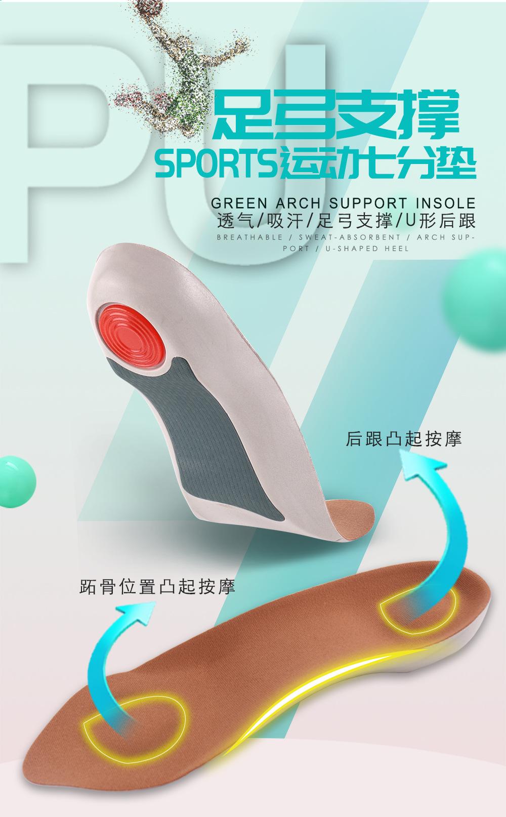 Almohadilla correctiva de gel de PU de tamaño medio, almohadilla de siete puntos, soporte de arco para pie plano, plantilla correctiva, plantilla deportiva cálida que absorbe el sudor