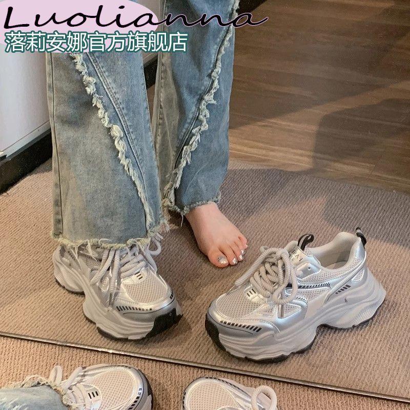 Zapatos Torre para Mujer plateados Primavera 2024 Nuevos Zapatos de Suela Gruesa Resistentes al Desgaste Zapatos Casuales Combinan con Todo Ligeros Tenis de Estudiante