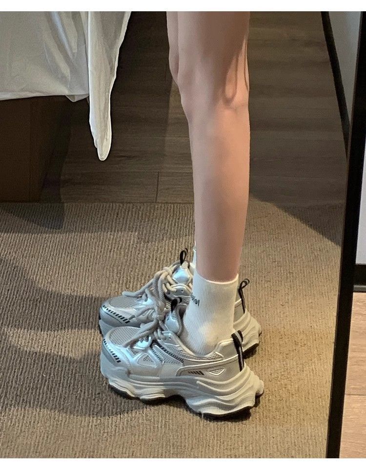 Compra Zapatos Torre para Mujer plateados Primavera 2024 Nuevos Zapatos de Suela Gruesa Resistentes al Desgaste Zapatos Casuales Combinan con Todo Ligeros Tenis de Estudiante al por mayor en Joom.pro