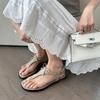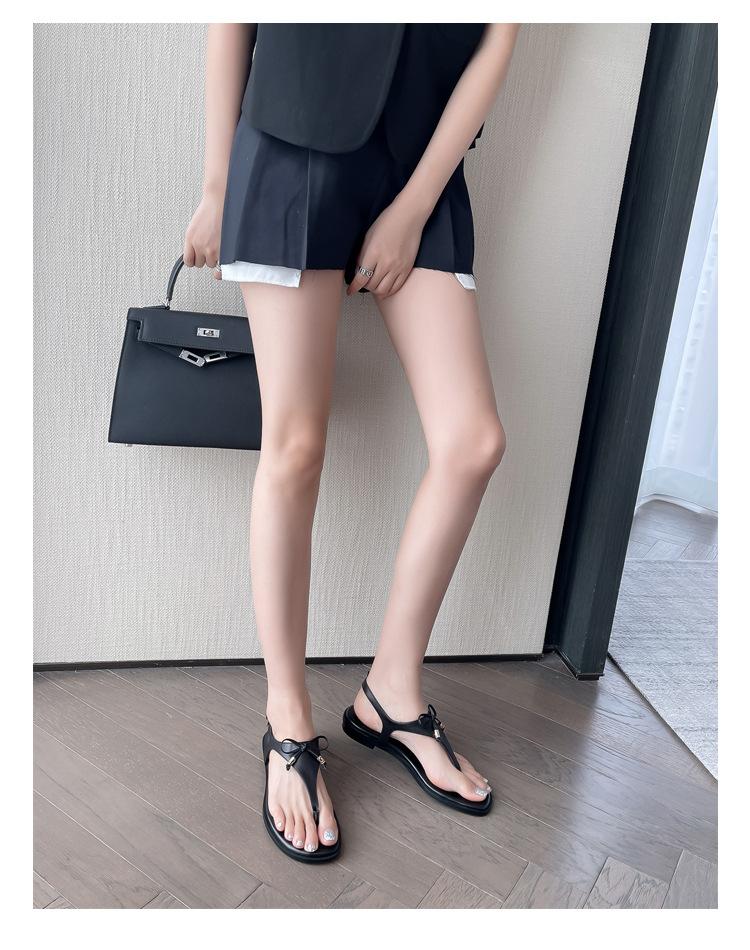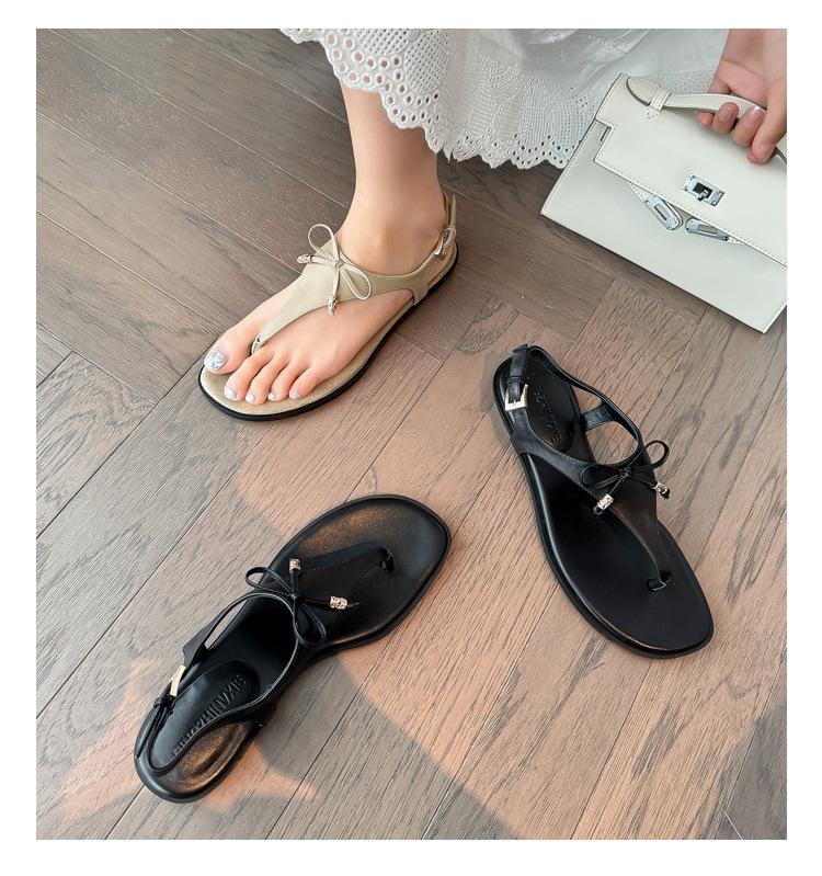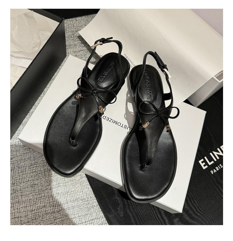 Estilo Vacacional ~ Sandalias Planas Retro Zapatos de Hada Verano 2025 Negro Combinable Playa Romanas