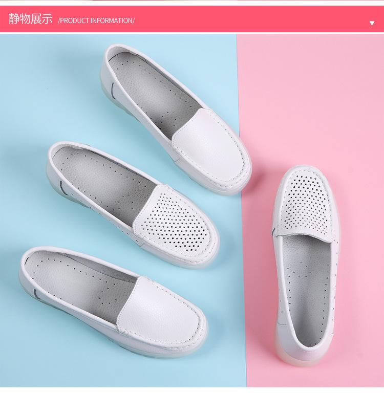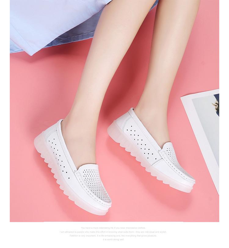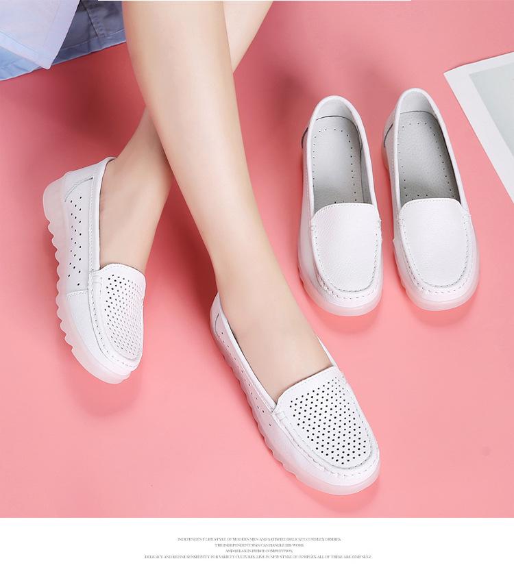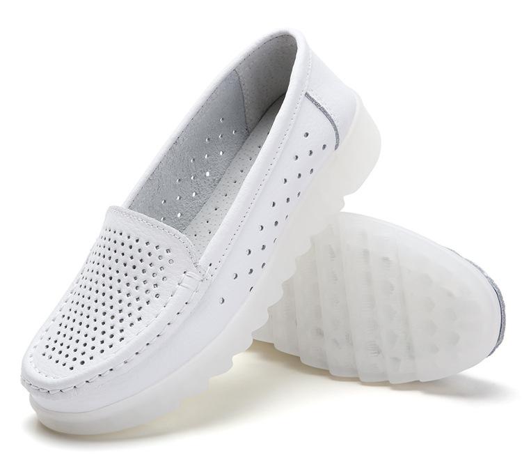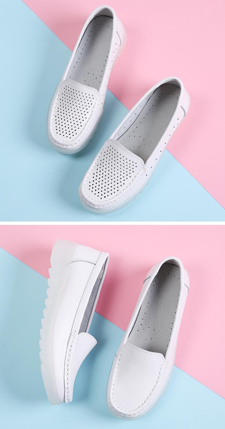 Zapatos nuevos de enfermera para mujer talla grande cuero genuino huecos blancos zapatos de trabajo de hospital zapatos blancos pequeños para mujer cuña suela suave zapatos de madre
