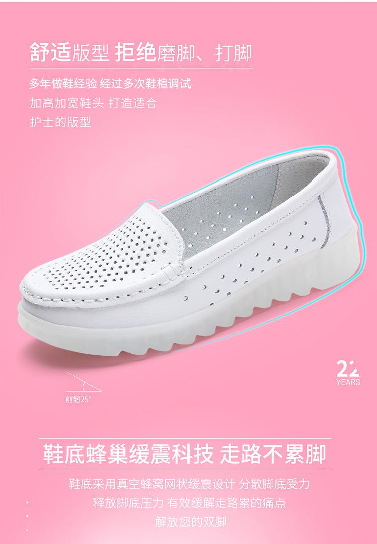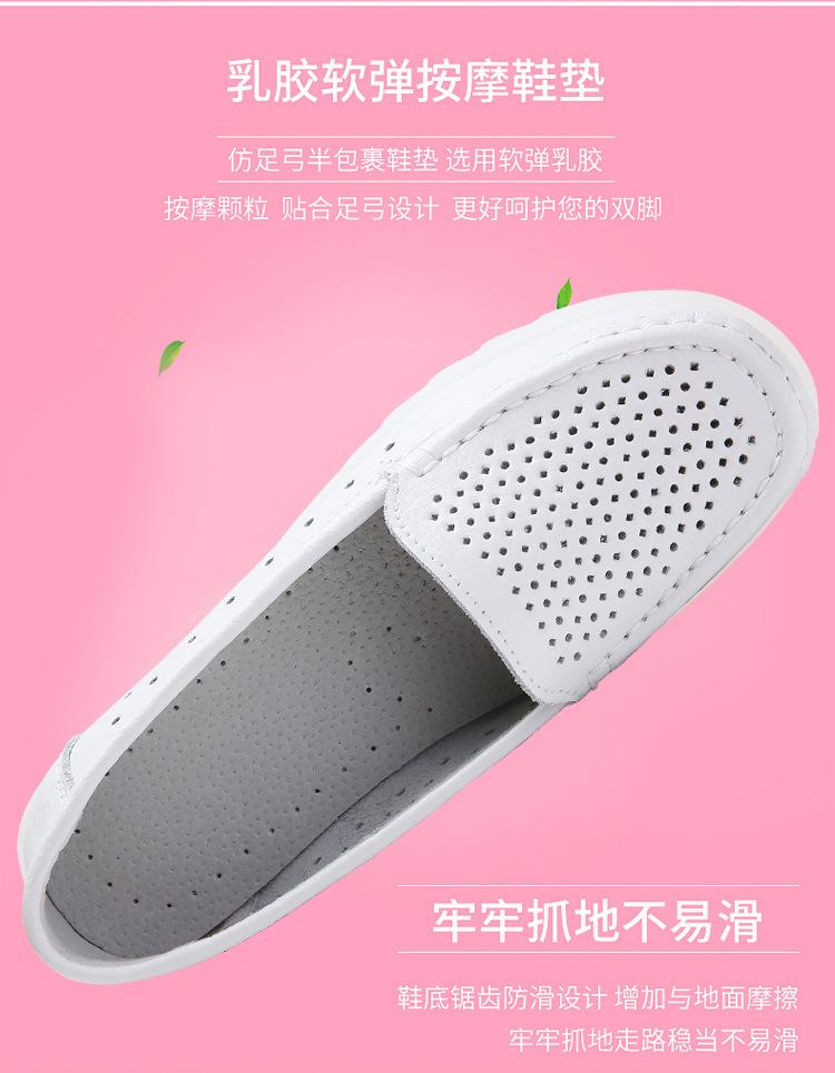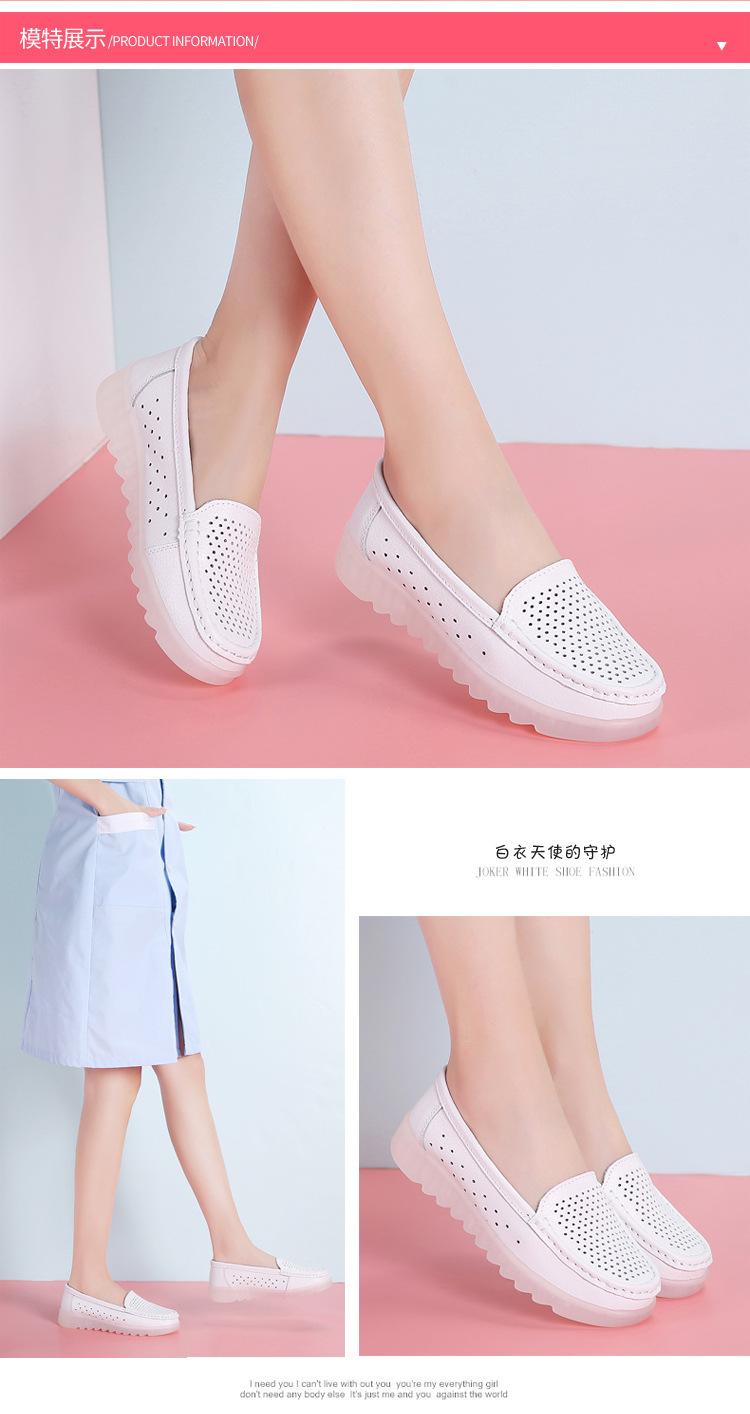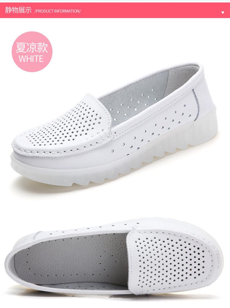 Zapatos nuevos de enfermera para mujer talla grande cuero genuino huecos blancos zapatos de trabajo de hospital zapatos blancos pequeños para mujer cuña suela suave zapatos de madre