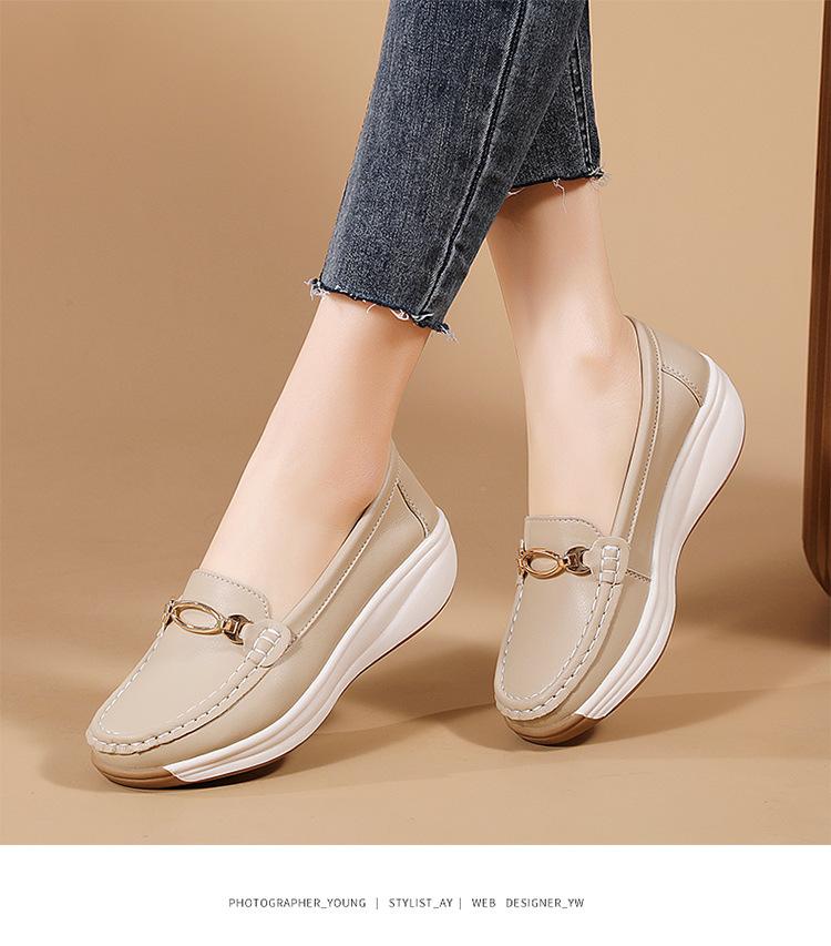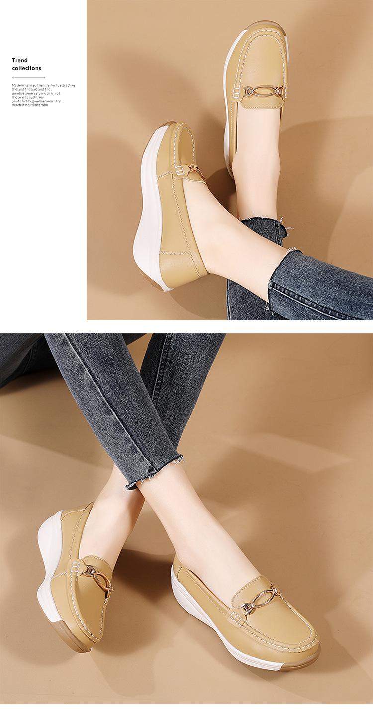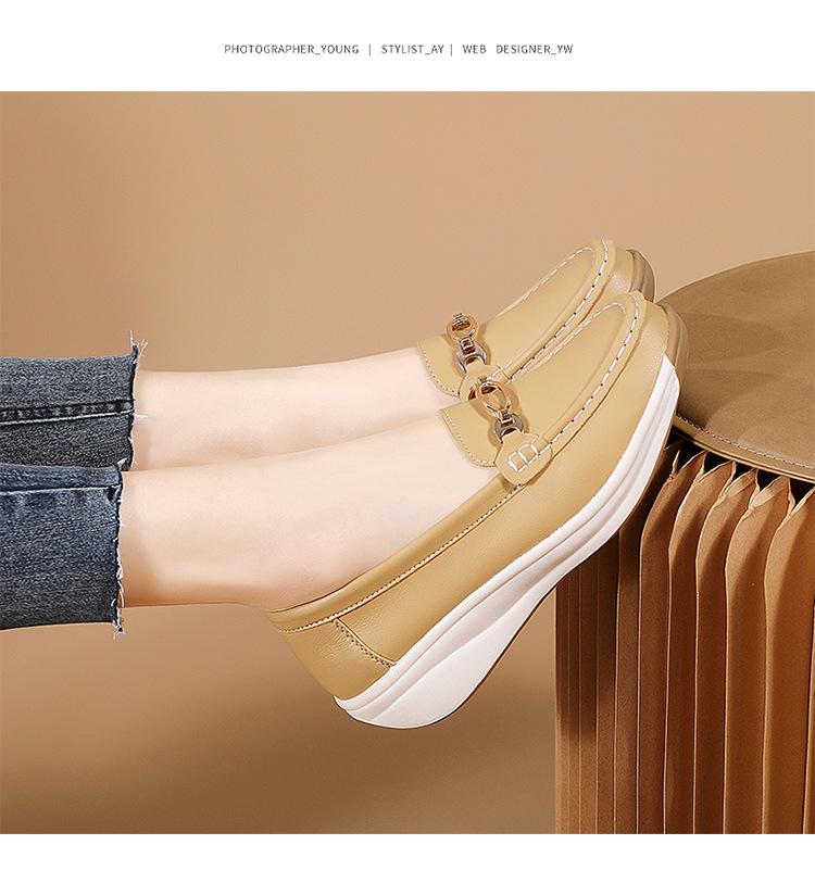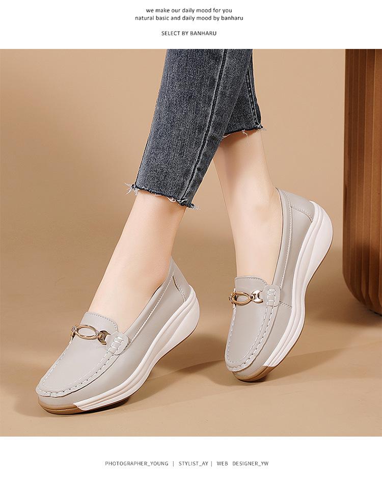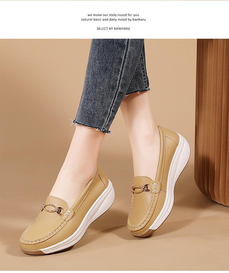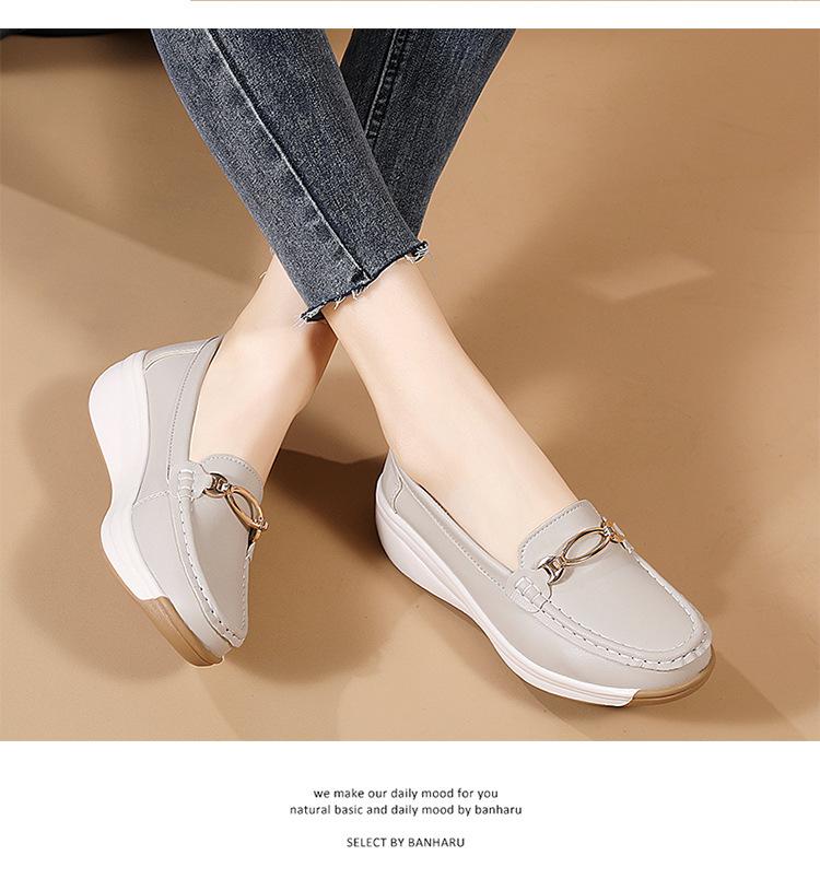 Zapatos de Madre de Suela Gruesa de Cuero Genuino 2025 Nuevos Flats para Mujer Ligeros Antideslizantes Zapatos de Plataforma Zapatos Casuales tipo Beanie para Mujer
