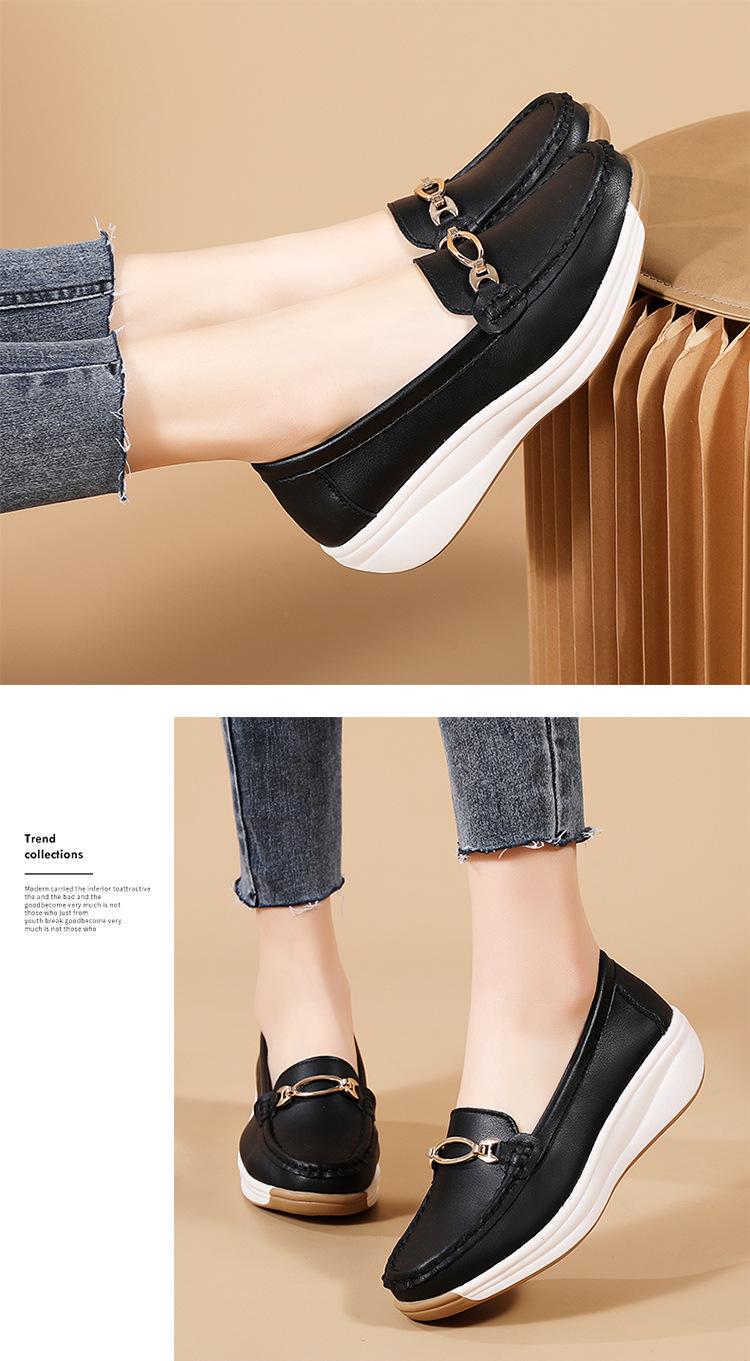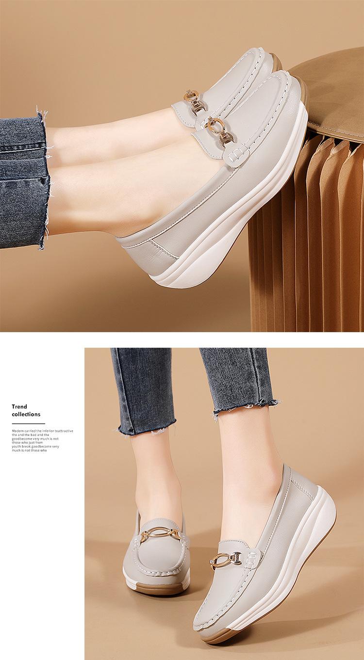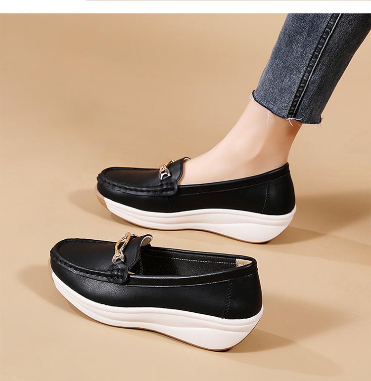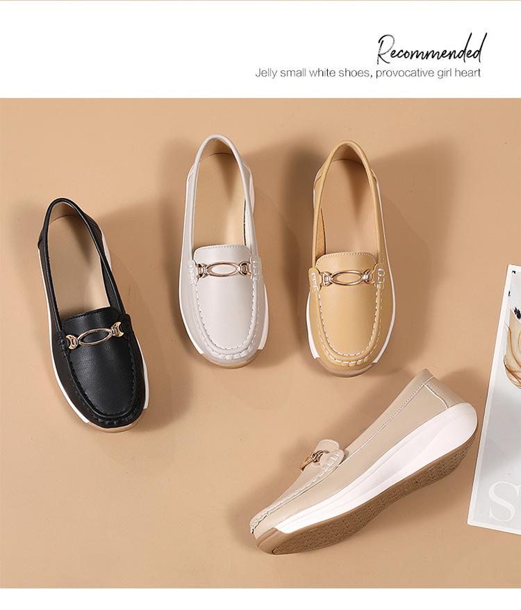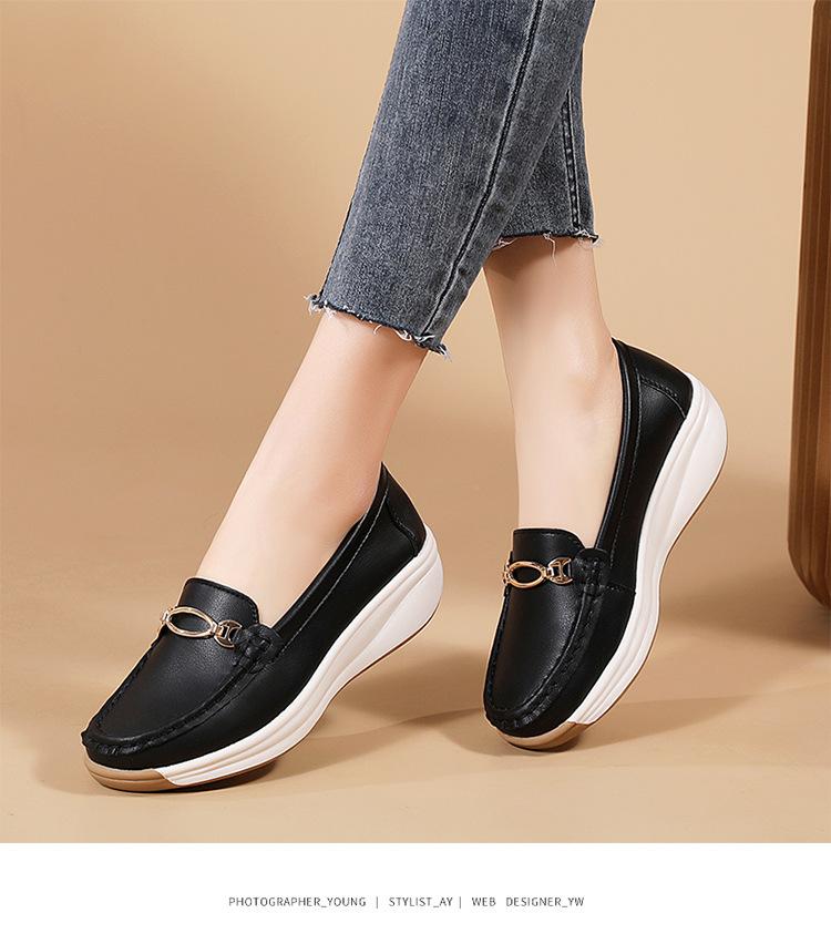 Zapatos de Madre de Suela Gruesa de Cuero Genuino 2025 Nuevos Flats para Mujer Ligeros Antideslizantes Zapatos de Plataforma Zapatos Casuales tipo Beanie para Mujer