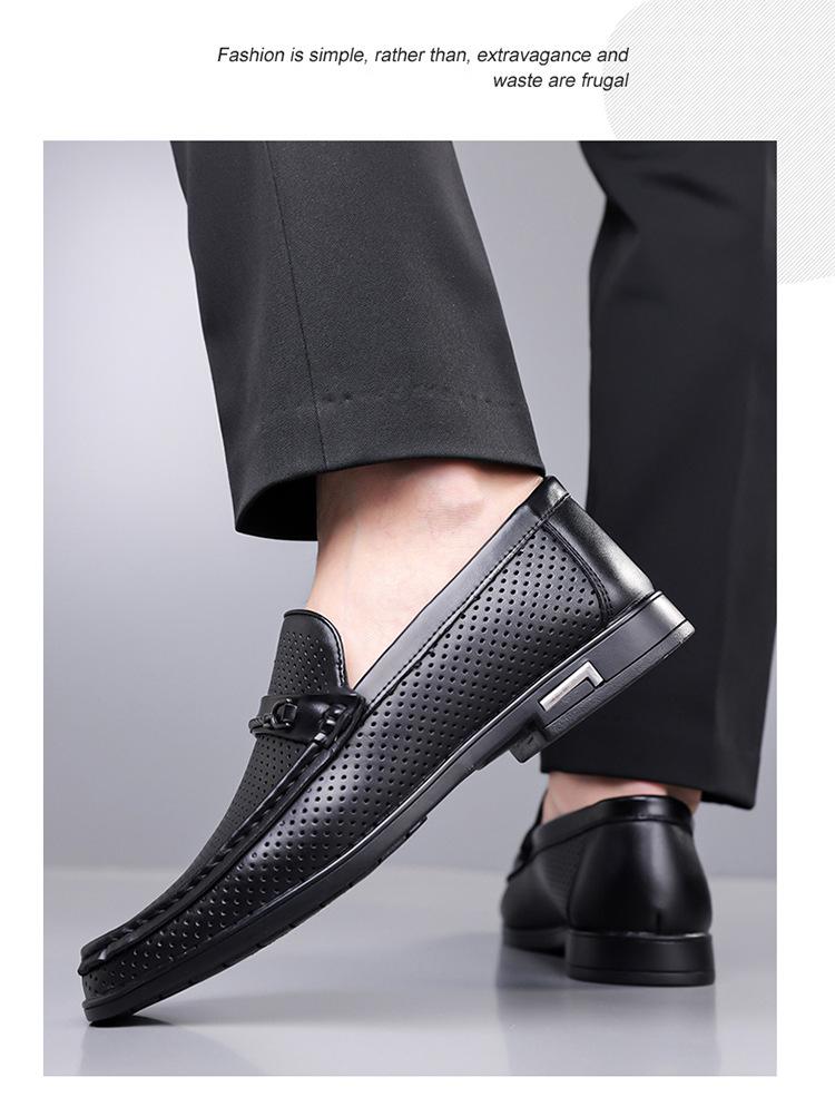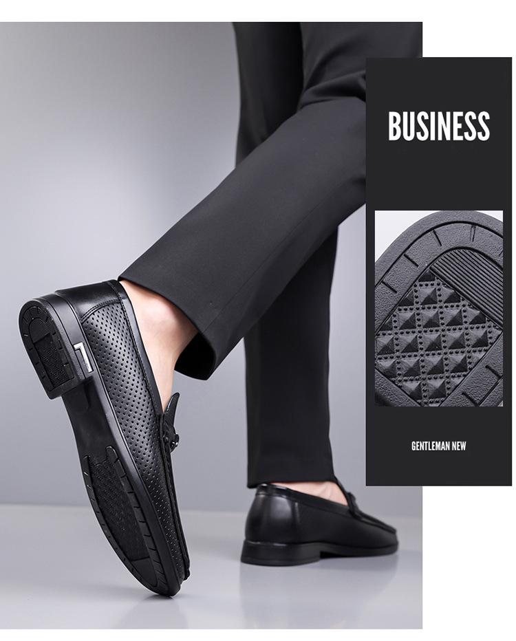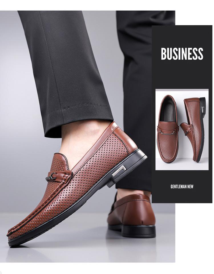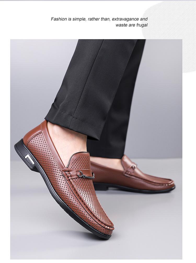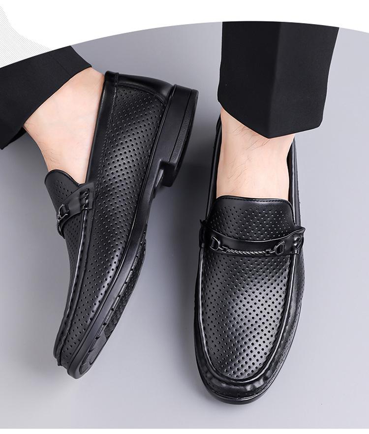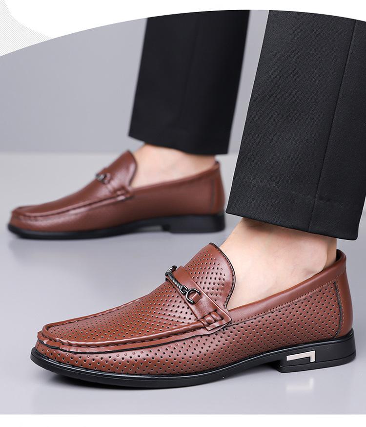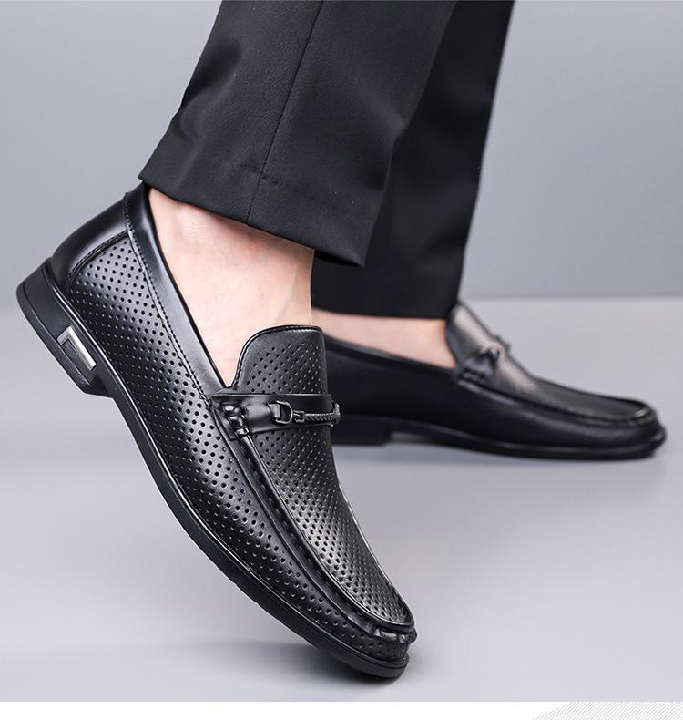 Zapatos de Cuero para Hombre 2025 Verano Nuevo Estilo Perezoso Slip-On Casual Versátil Zapatos Tipo Gorro Transpirables Suela Suave Conducción Zapatos de Moda