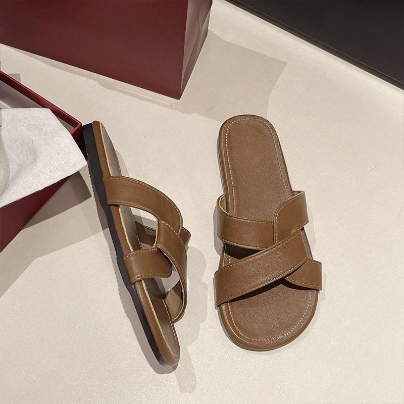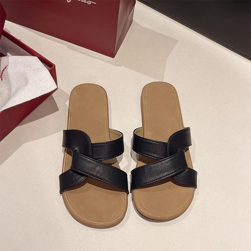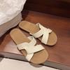 Pantuflas Planas Cruzadas para Mujer Verano para Exterior 2025 Nuevo Estilo de Hada con Falda Sandalias de Playa Cruzadas