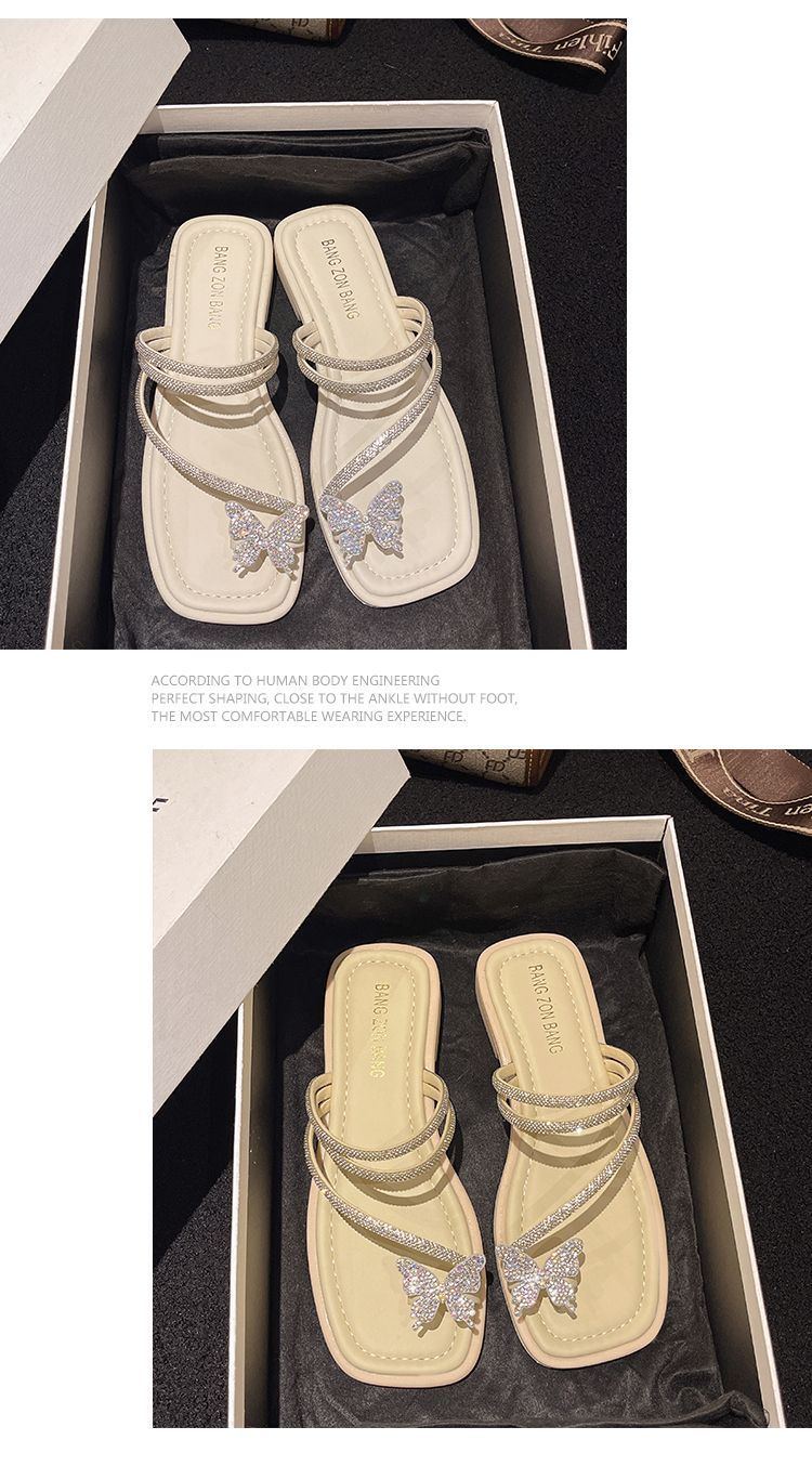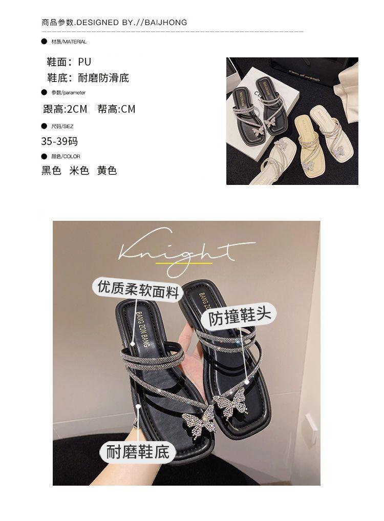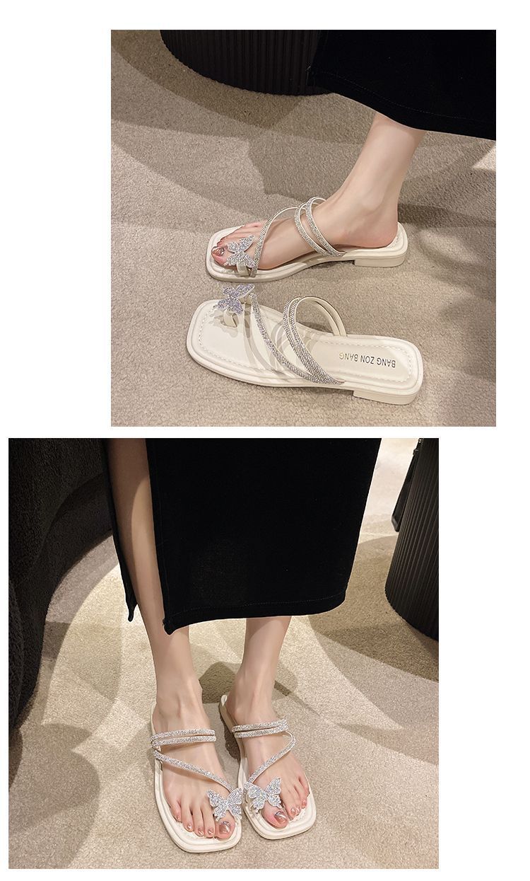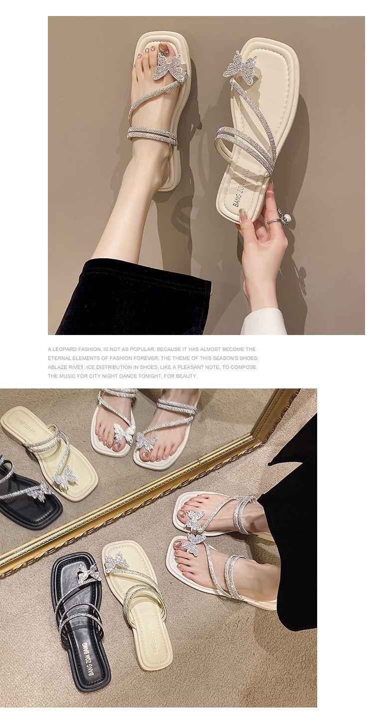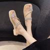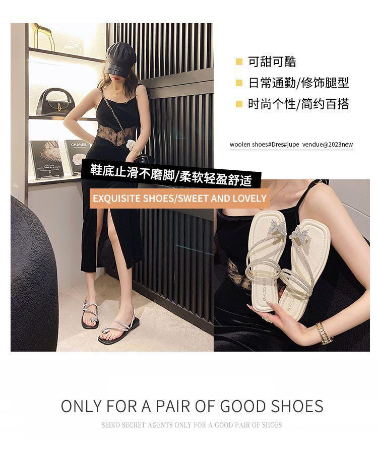 Sandalias planas con lazo de pedrería para mujer Verano 2023 Nuevo estilo planas de media suela ins Sandalias estilo hada