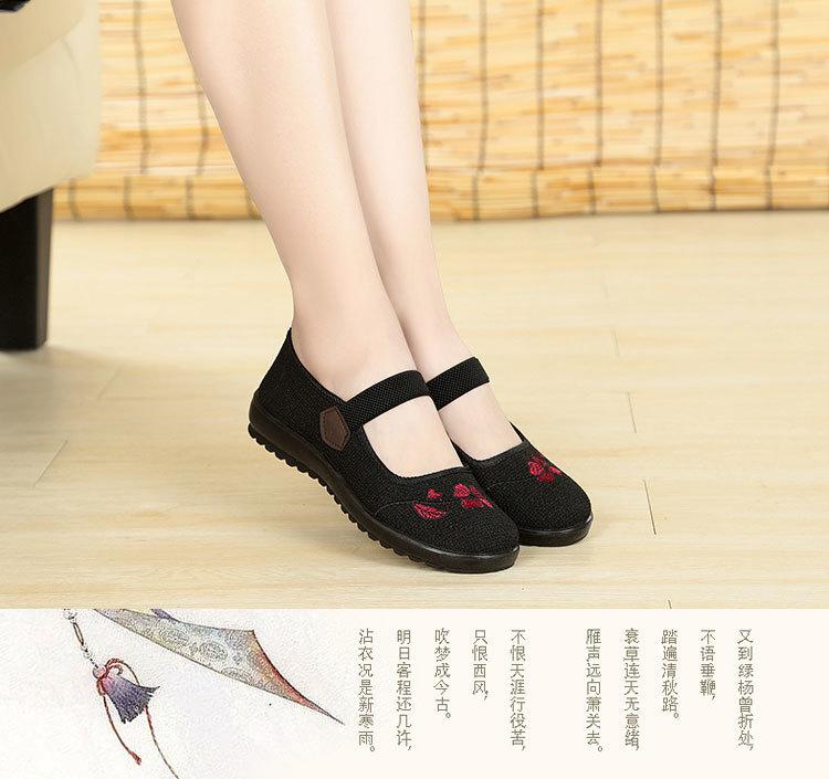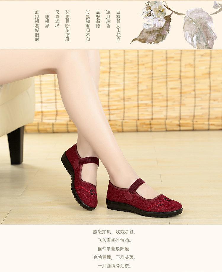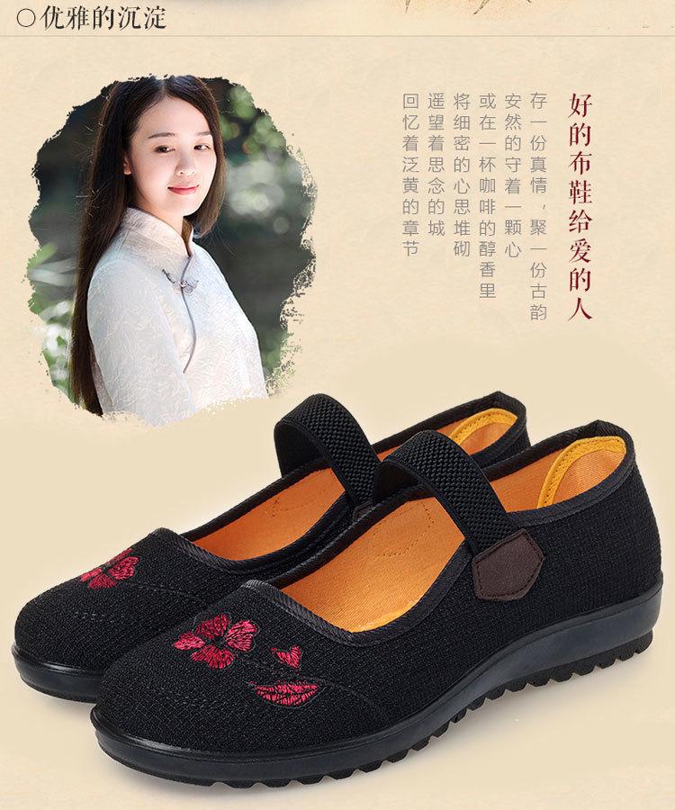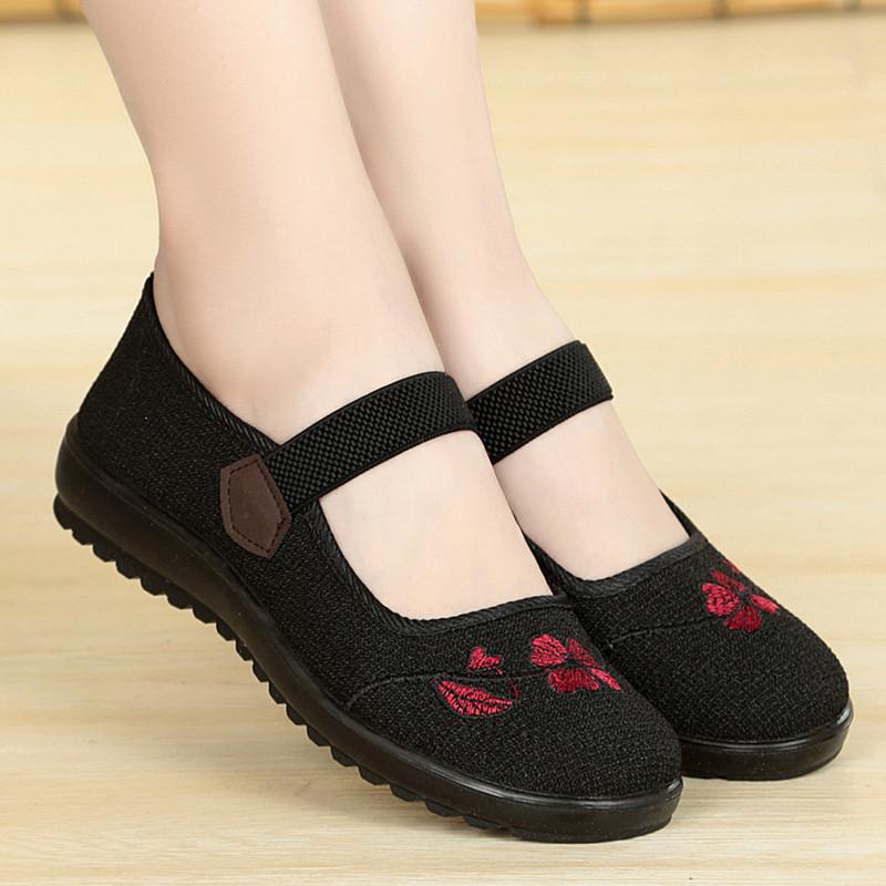 Zapatos de Tela Estilo Nuevo del Viejo Beijing para Mujer, Zapatos Planos Antideslizantes para Mamá de Primavera y Otoño, Zapatos de Tela Cómodos de Suela Blanda para Mediana Edad y Adultos Mayores